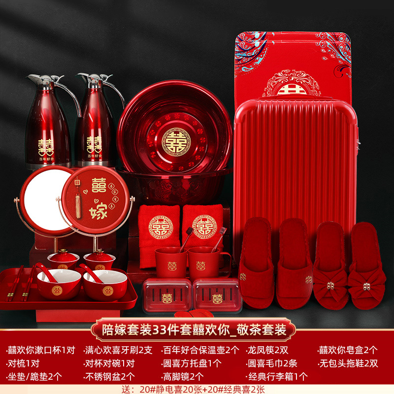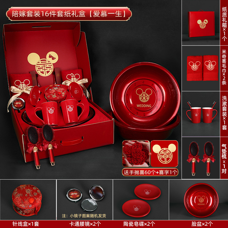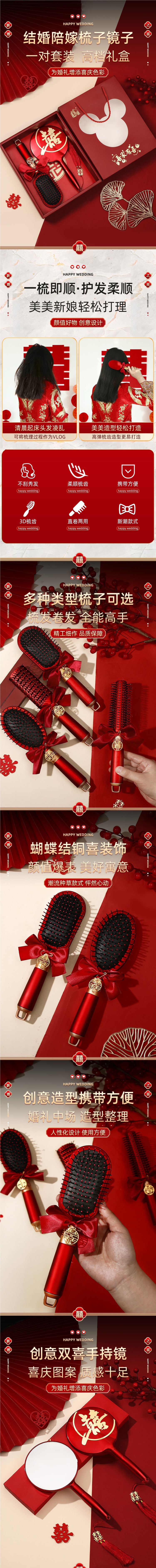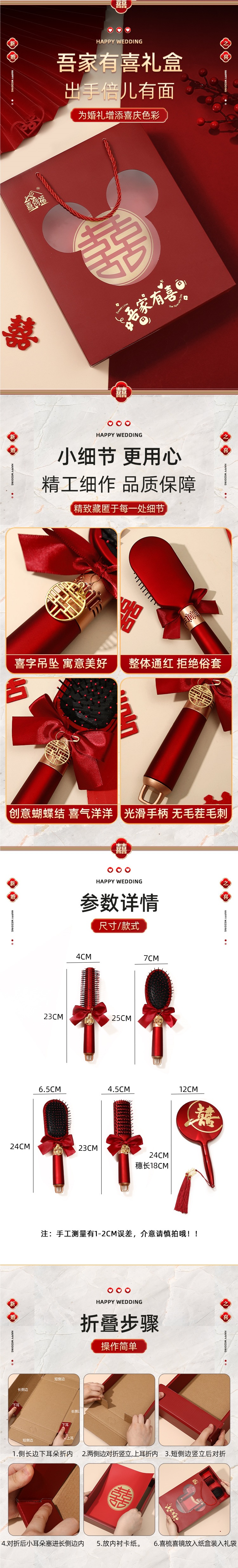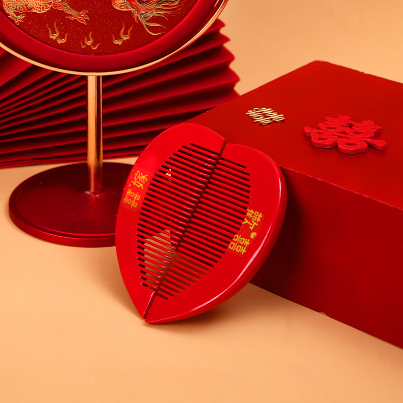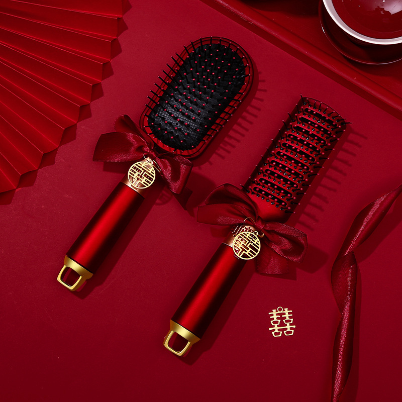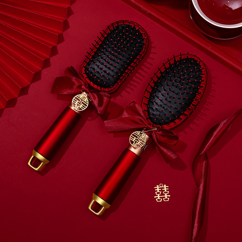 빨간 공기 쿠션 빗 Xi 나무 빗 세트 지참금 항목 여성의 전체 용품 세트와 함께 거울 한 쌍의 빗 결혼식스토어 가기