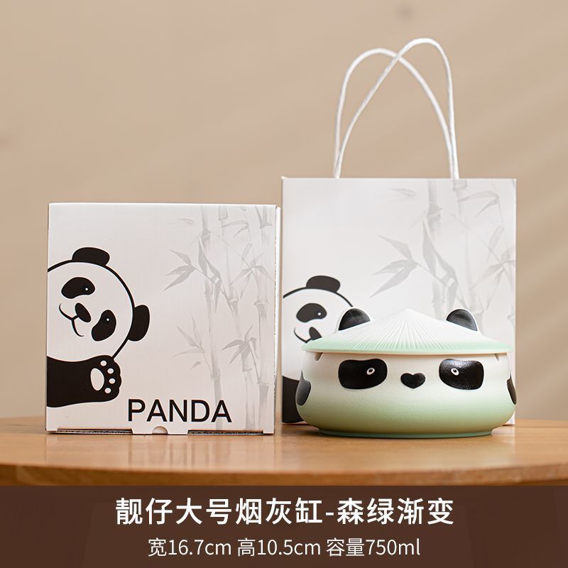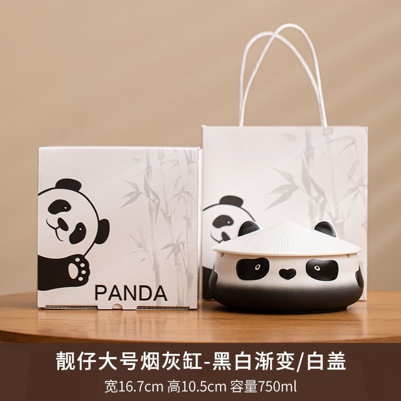 팬더 재떨이 안티 플라이 애쉬 크리에이티브 홈 귀여운 사무실 세라믹 만화 거실 재떨이 뚜껑 선물 상자
