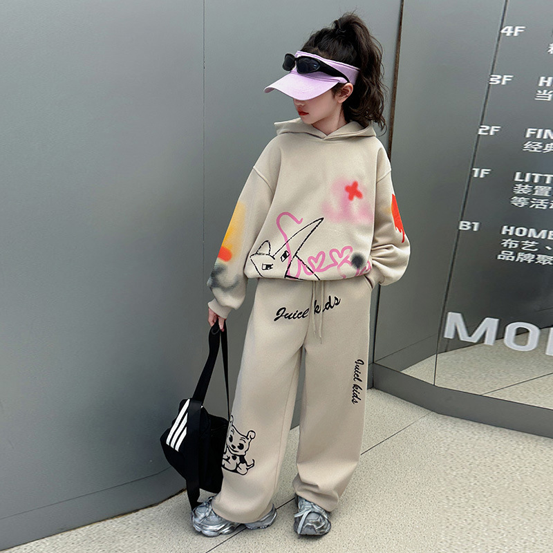 소녀의 봄 2025 새로운 어린이 세련된 세트 유행 운동복 큰 어린이 봄과 가을 캐주얼 투피스 세트