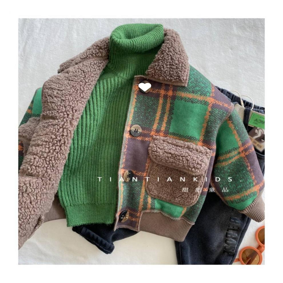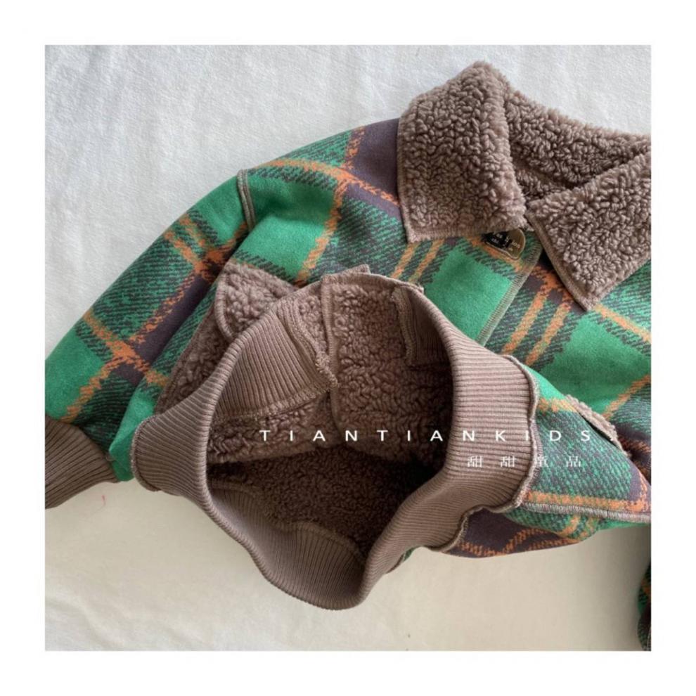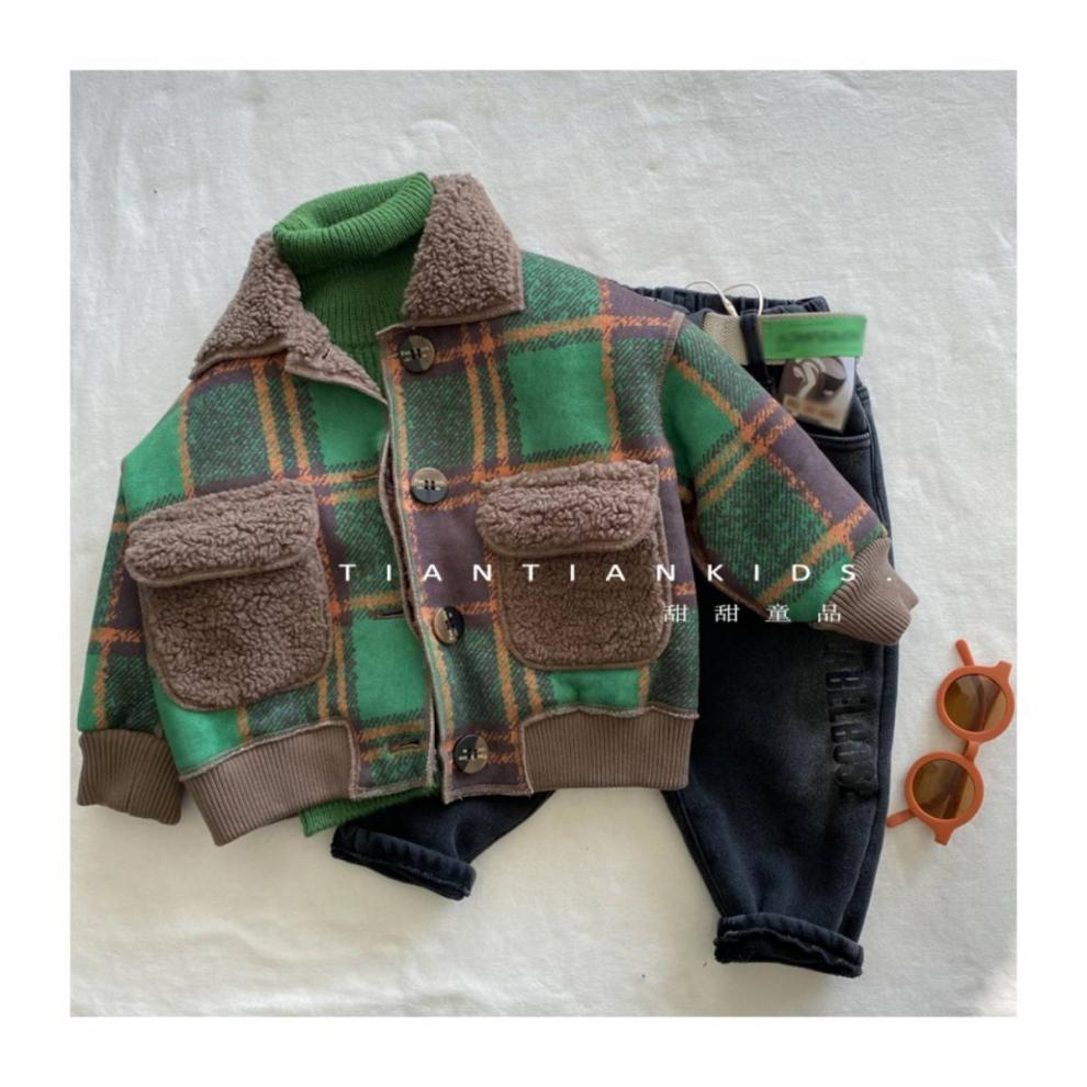남학생 '코리안 옷깃 그린 페어 모피 재킷 어린이 가을과 겨울 2024 새 여성 싱글 브레스트 기모 재킷스토어 가기