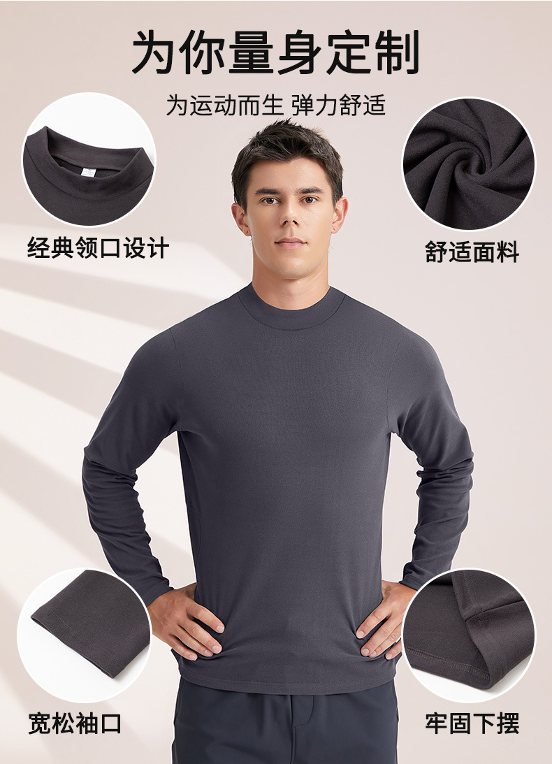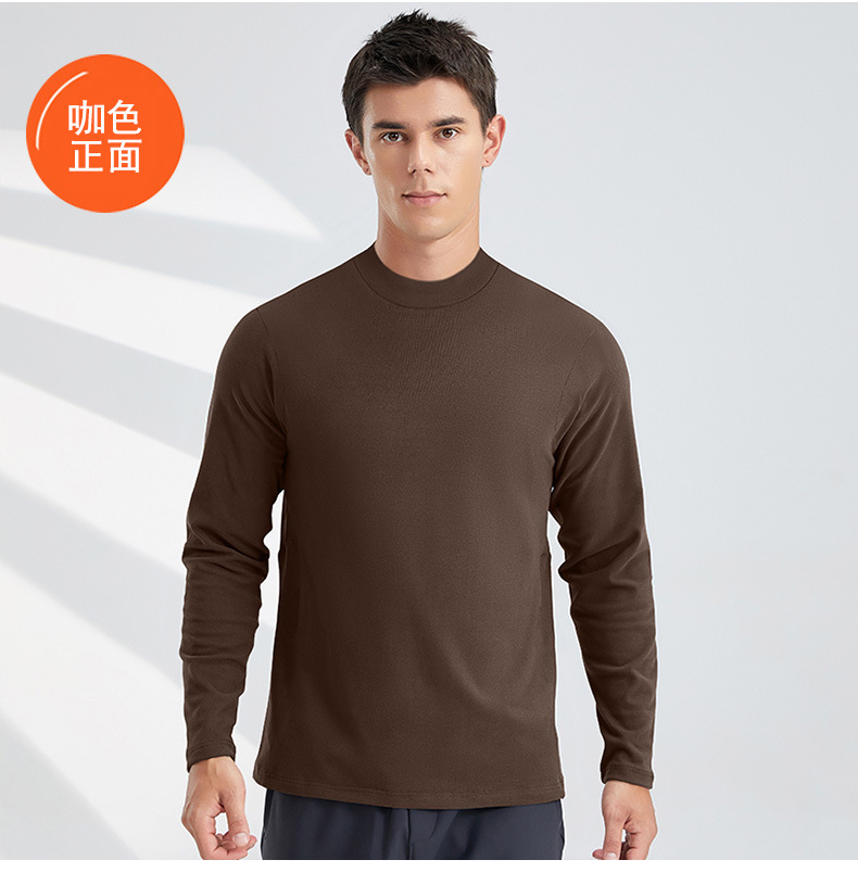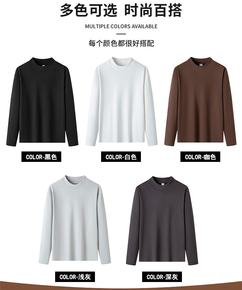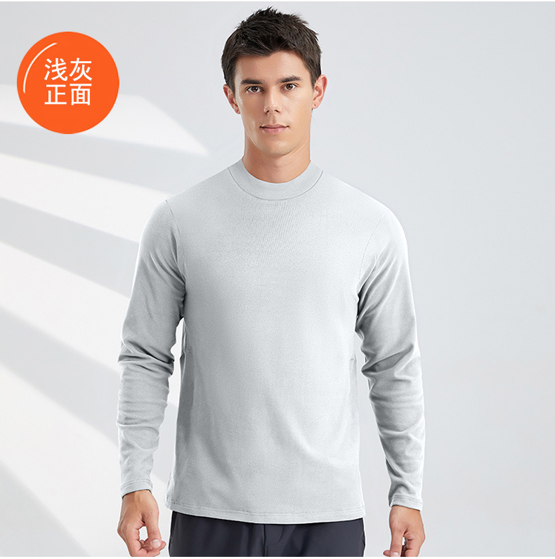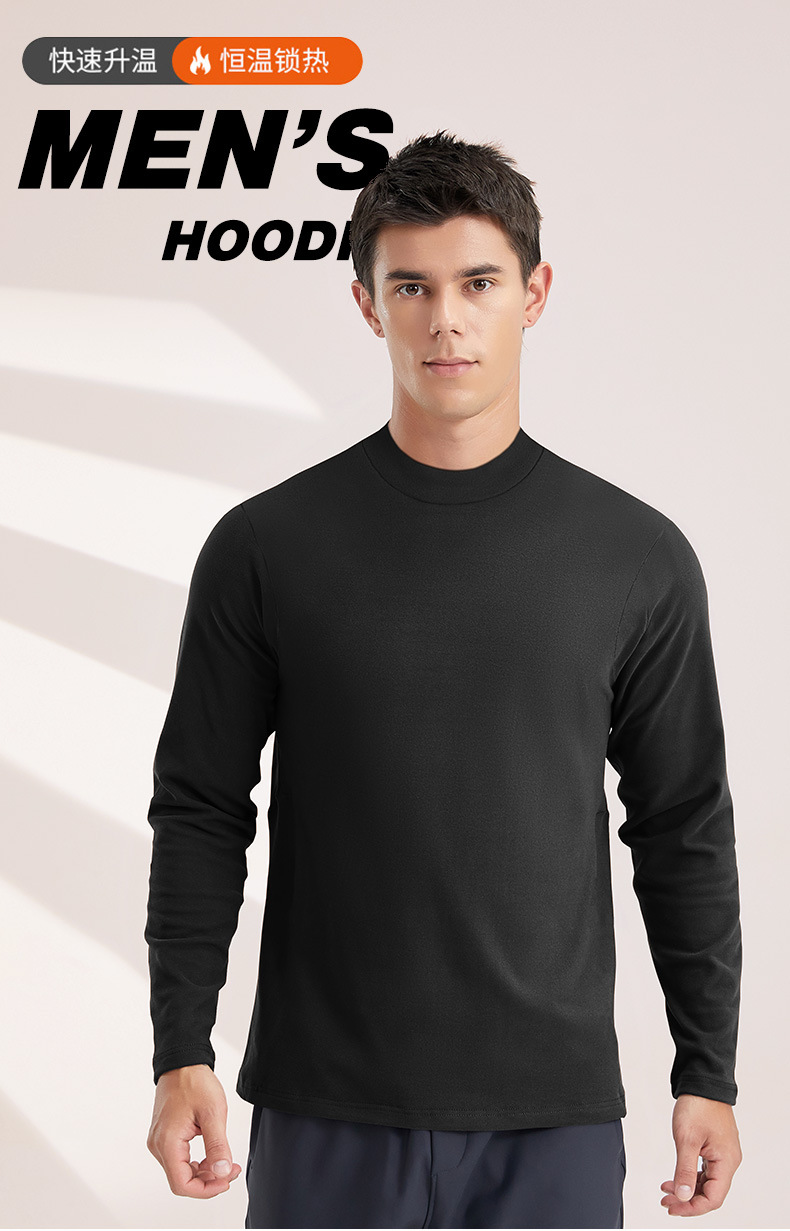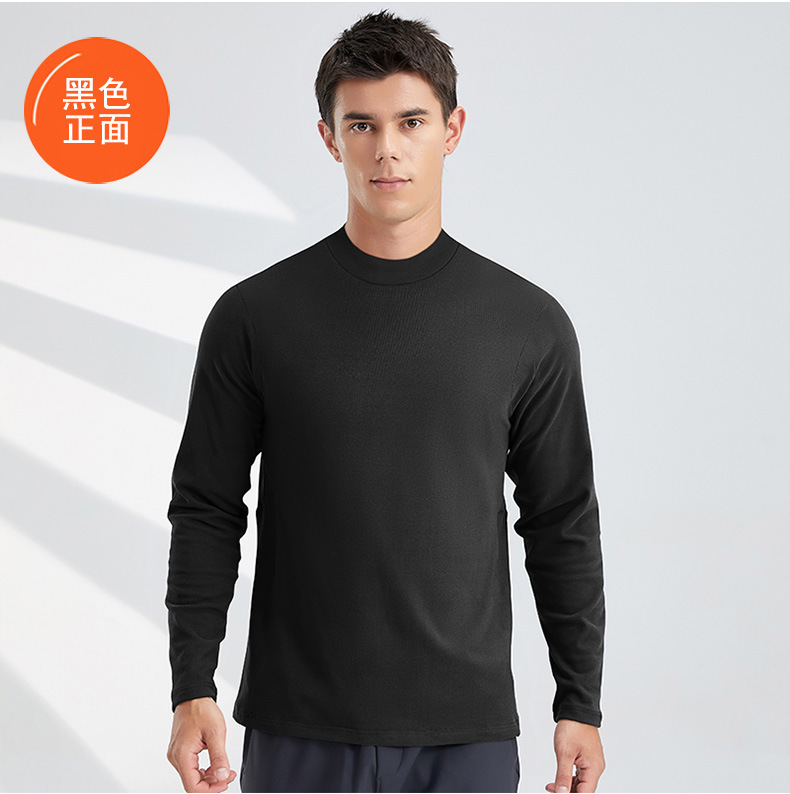 2025 벨벳 바닥 셔츠 미드 하이 칼라 양면 벨벳 솔질 따뜻한 탑 긴 소매 티셔츠 가을 속옷 남성용스토어 가기