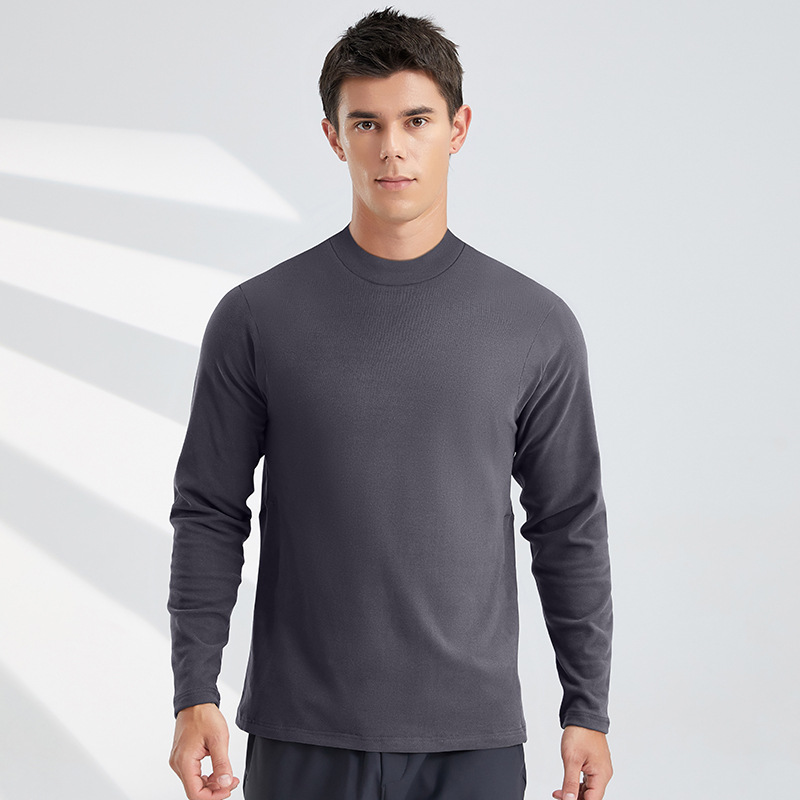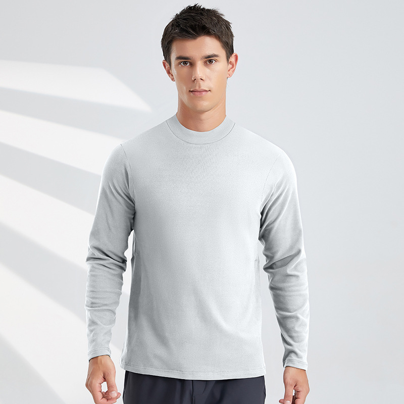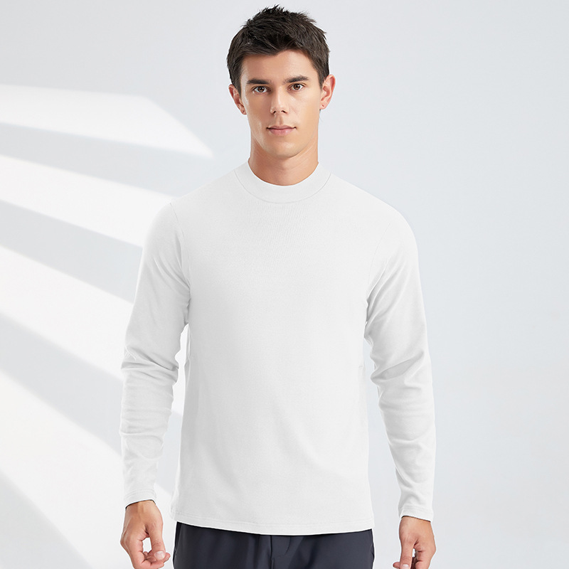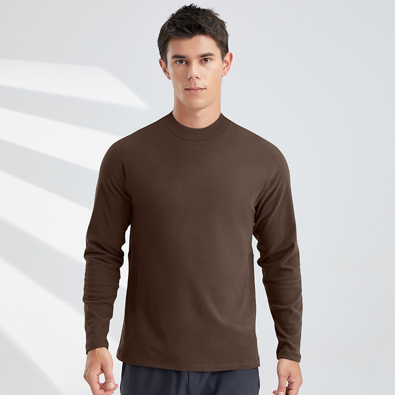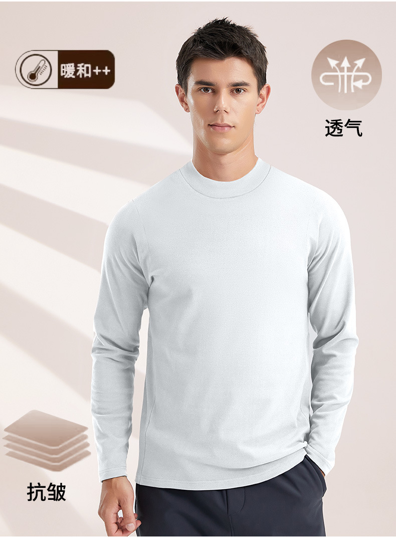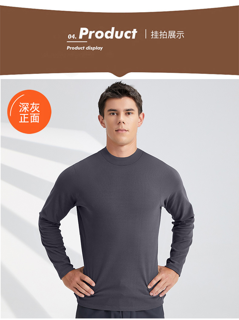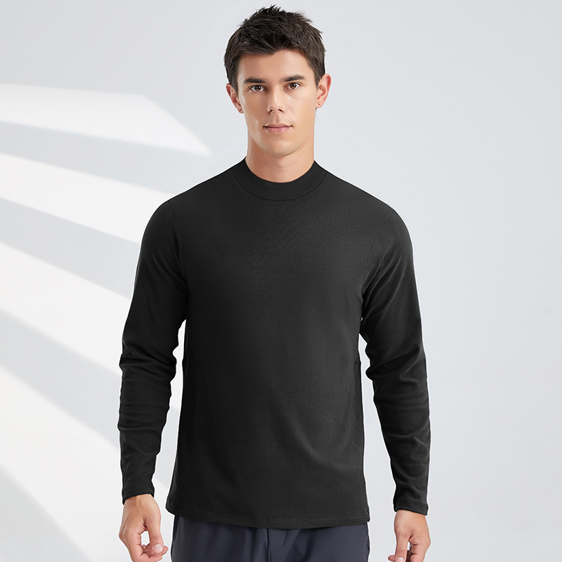 2025 벨벳 바닥 셔츠 미드 하이 칼라 양면 벨벳 솔질 따뜻한 탑 긴 소매 티셔츠 가을 속옷 남성용스토어 가기