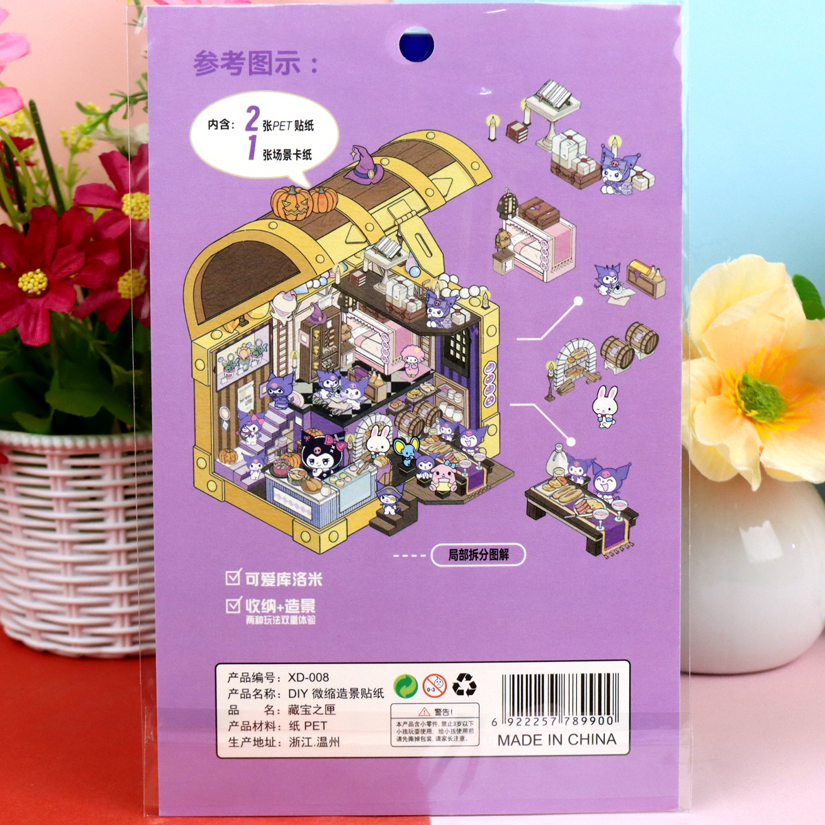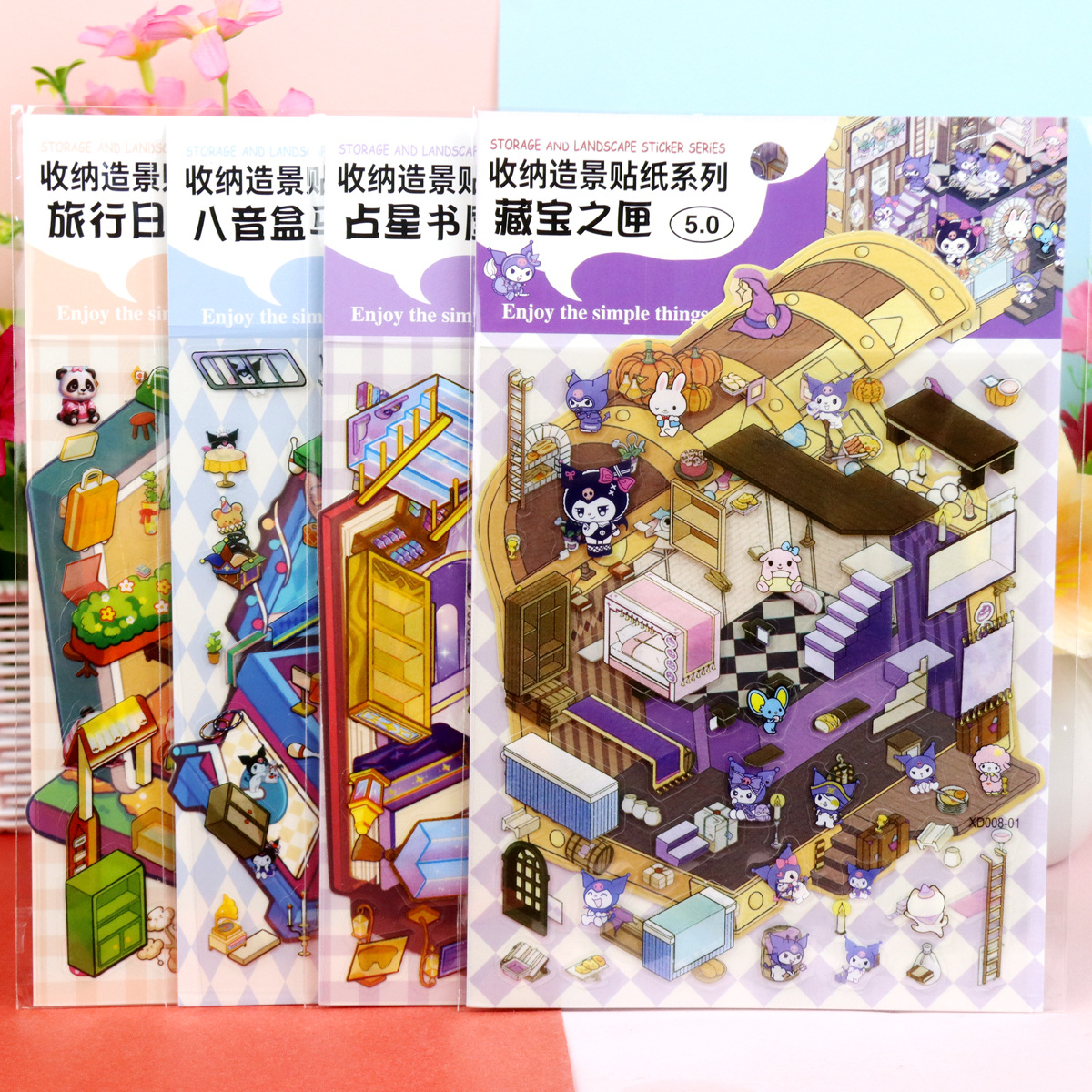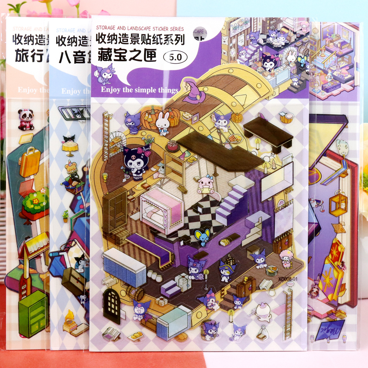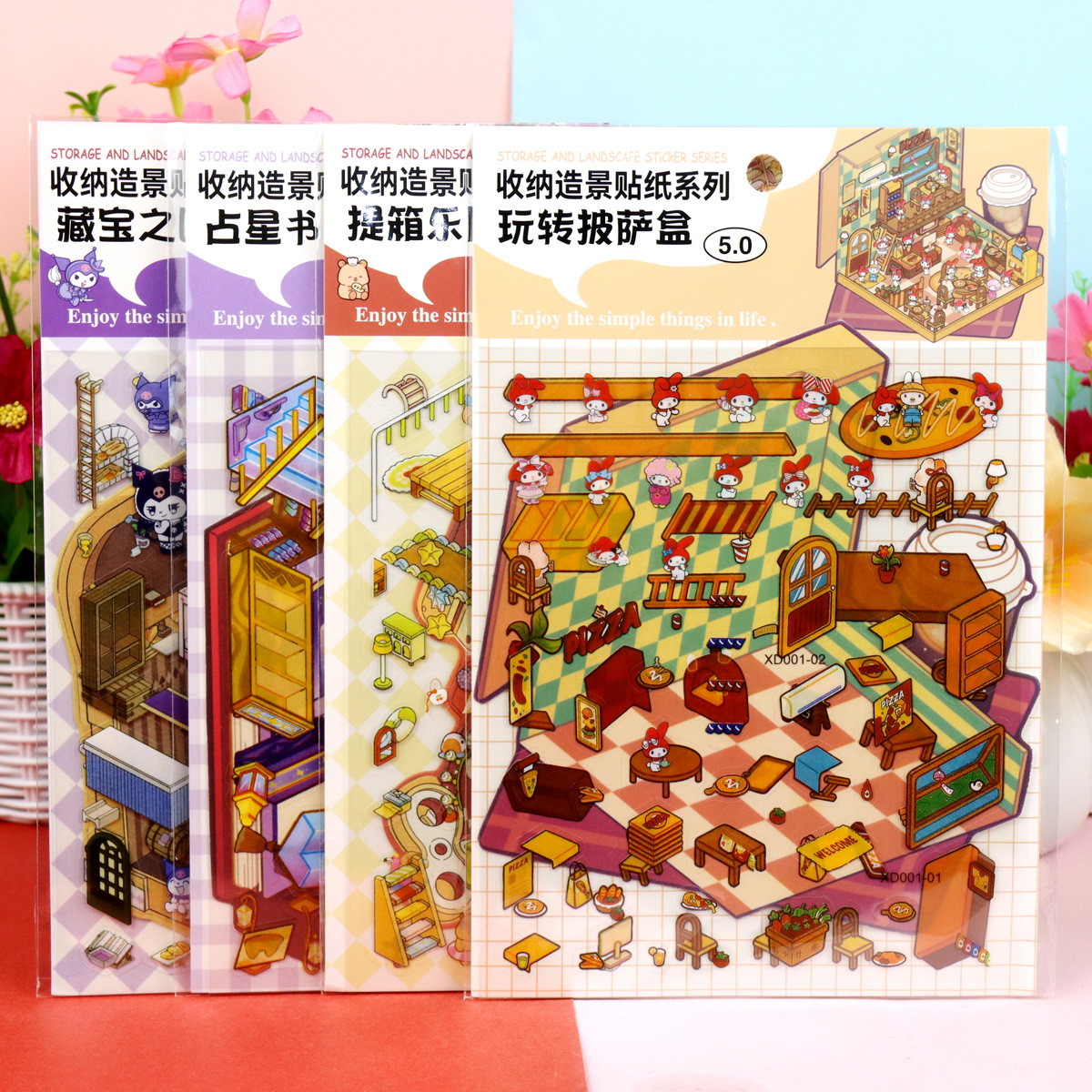 산리오 팬더 어린이 만화 감압 풍경 스티커 창조적 인 마이크로 스케일 장면 콜라주 DIY 스테레오 계정 스티커스토어 가기