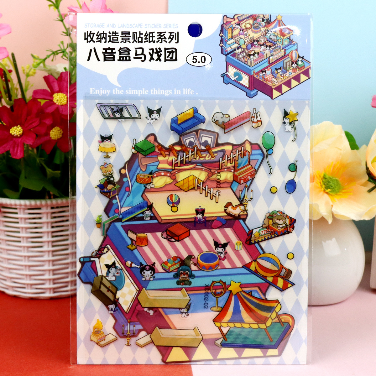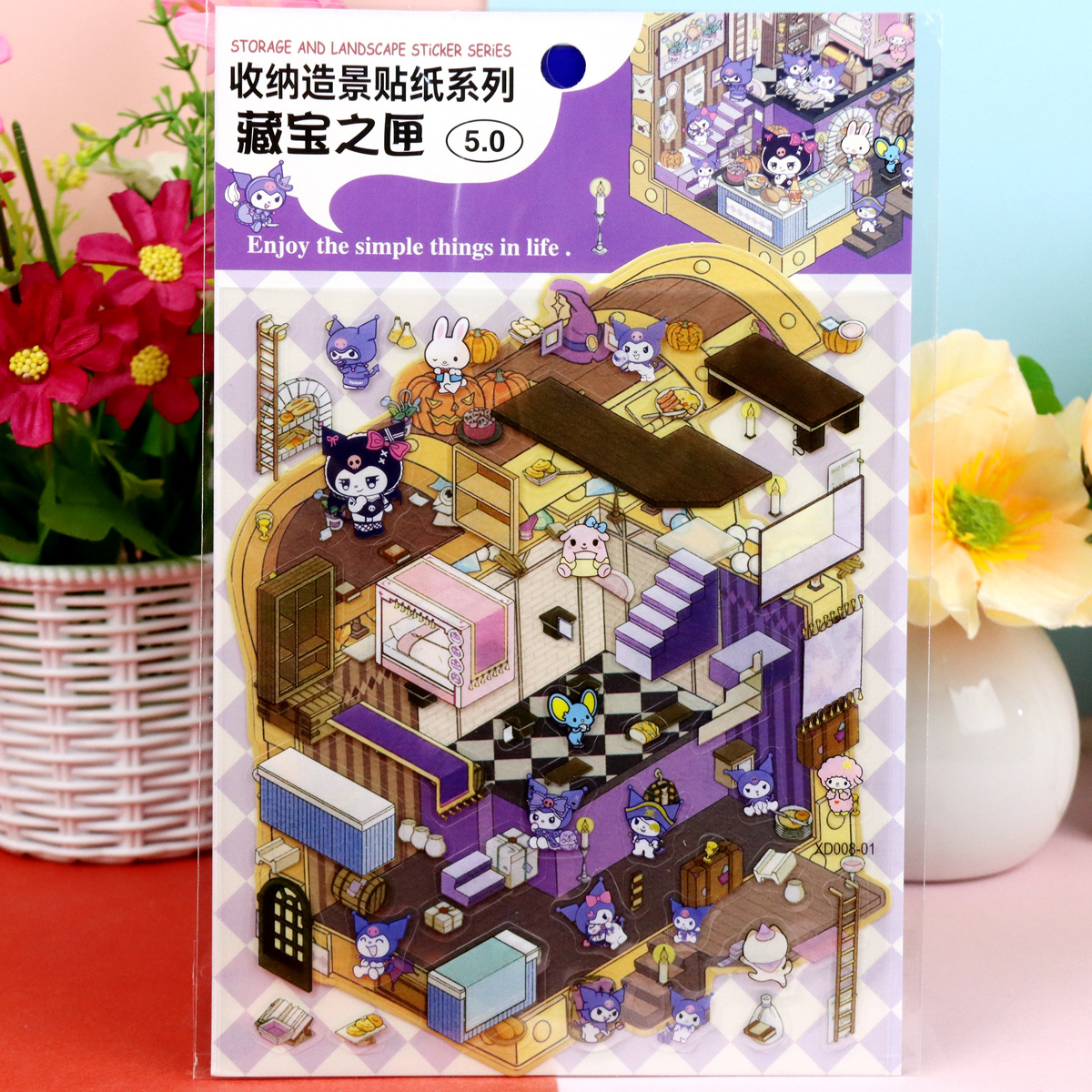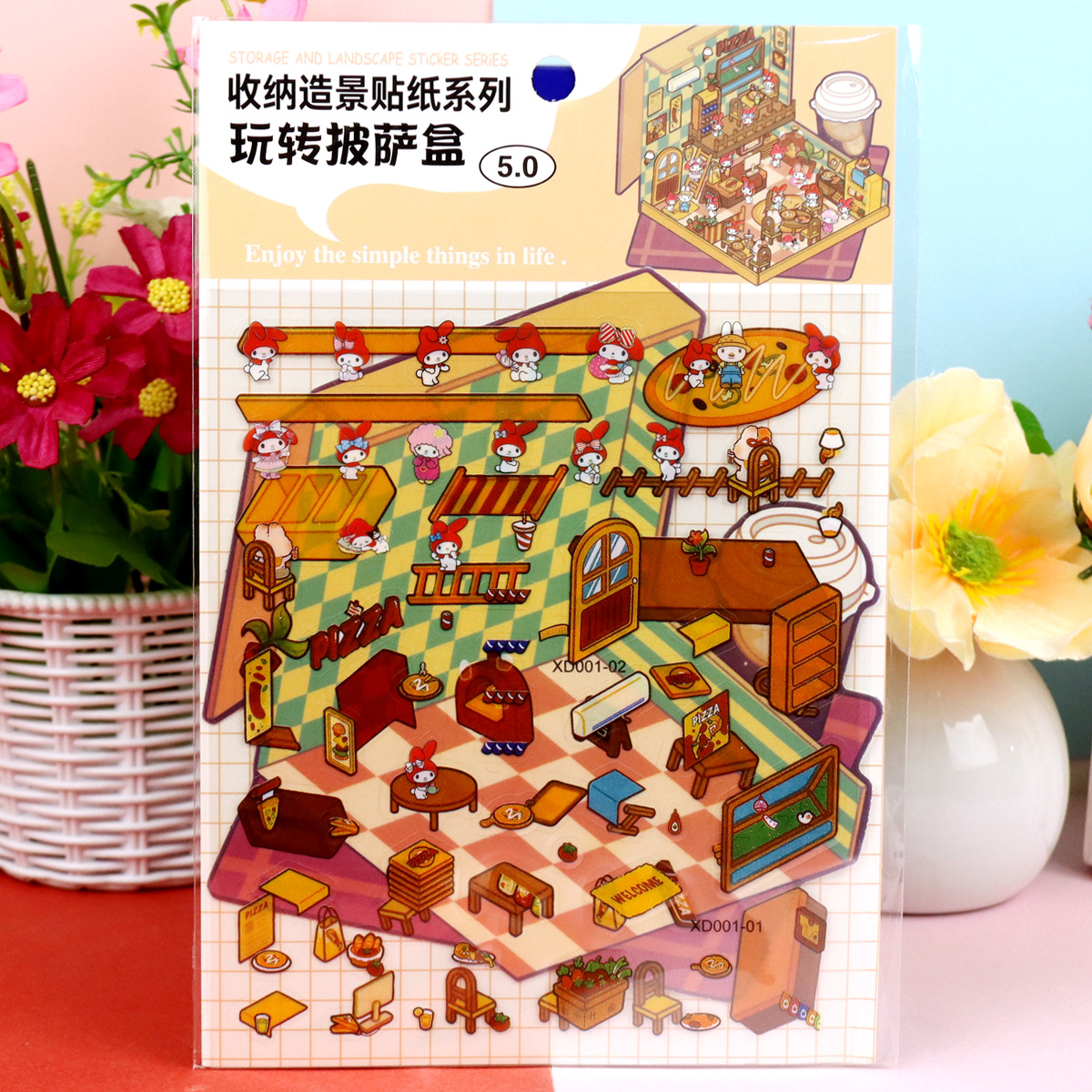 산리오 팬더 어린이 만화 감압 풍경 스티커 창조적 인 마이크로 스케일 장면 콜라주 DIY 스테레오 계정 스티커스토어 가기