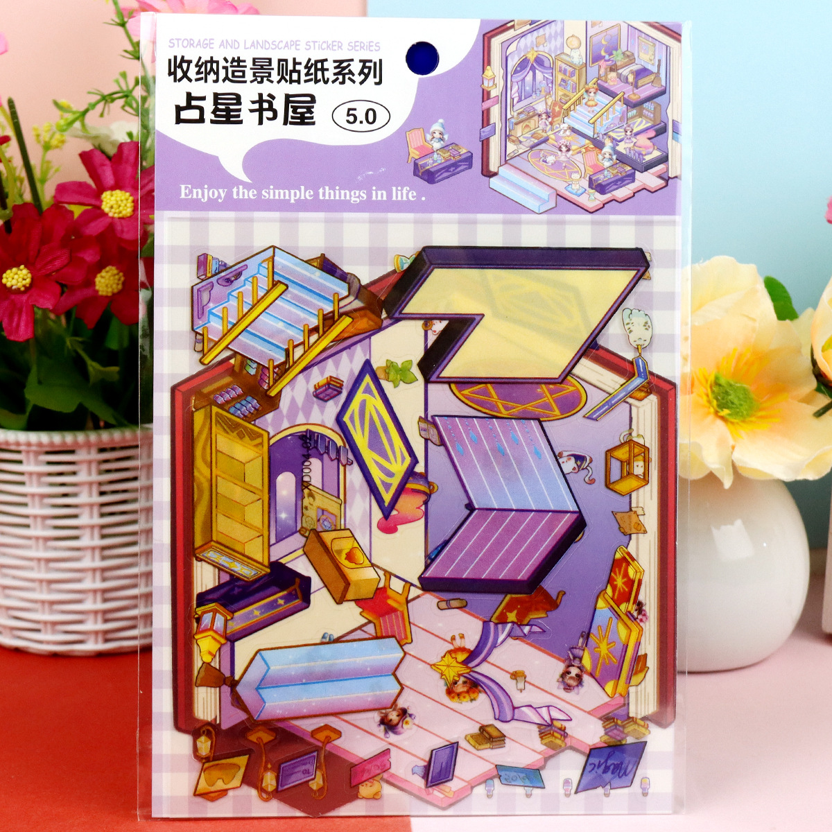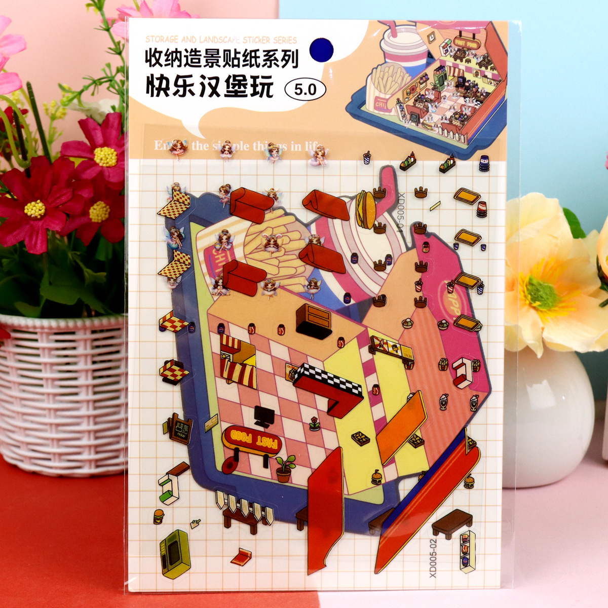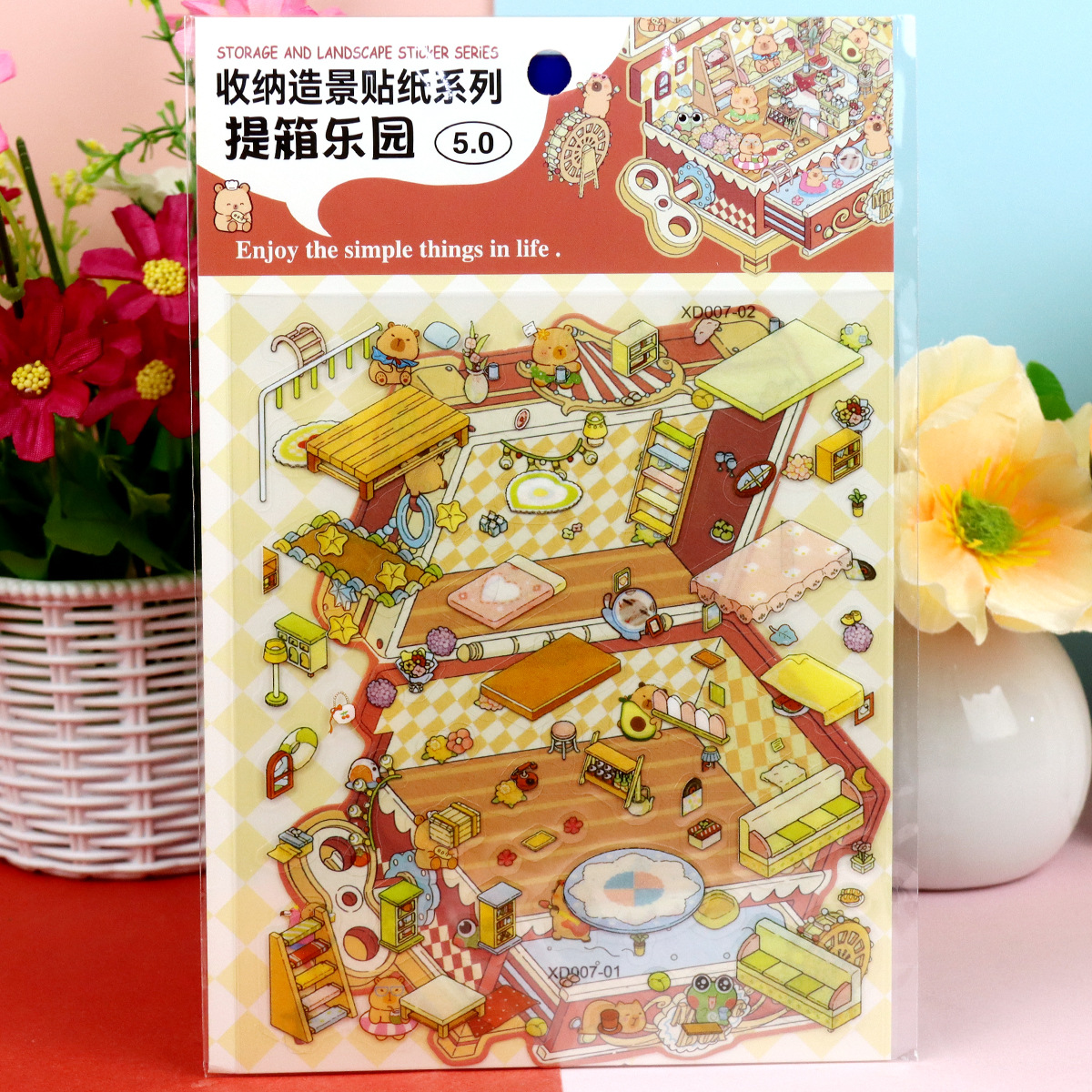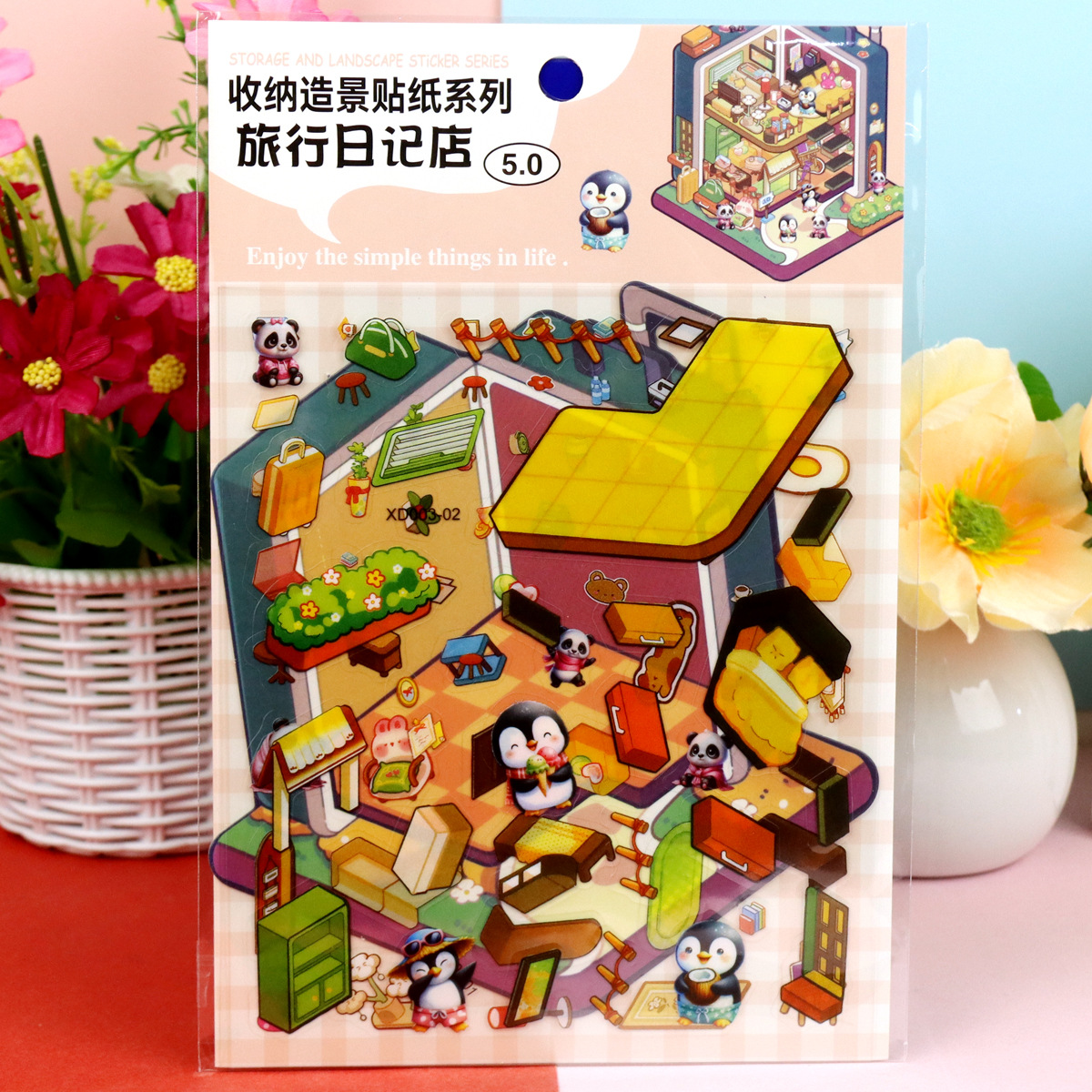 산리오 팬더 어린이 만화 감압 풍경 스티커 창조적 인 마이크로 스케일 장면 콜라주 DIY 스테레오 계정 스티커스토어 가기