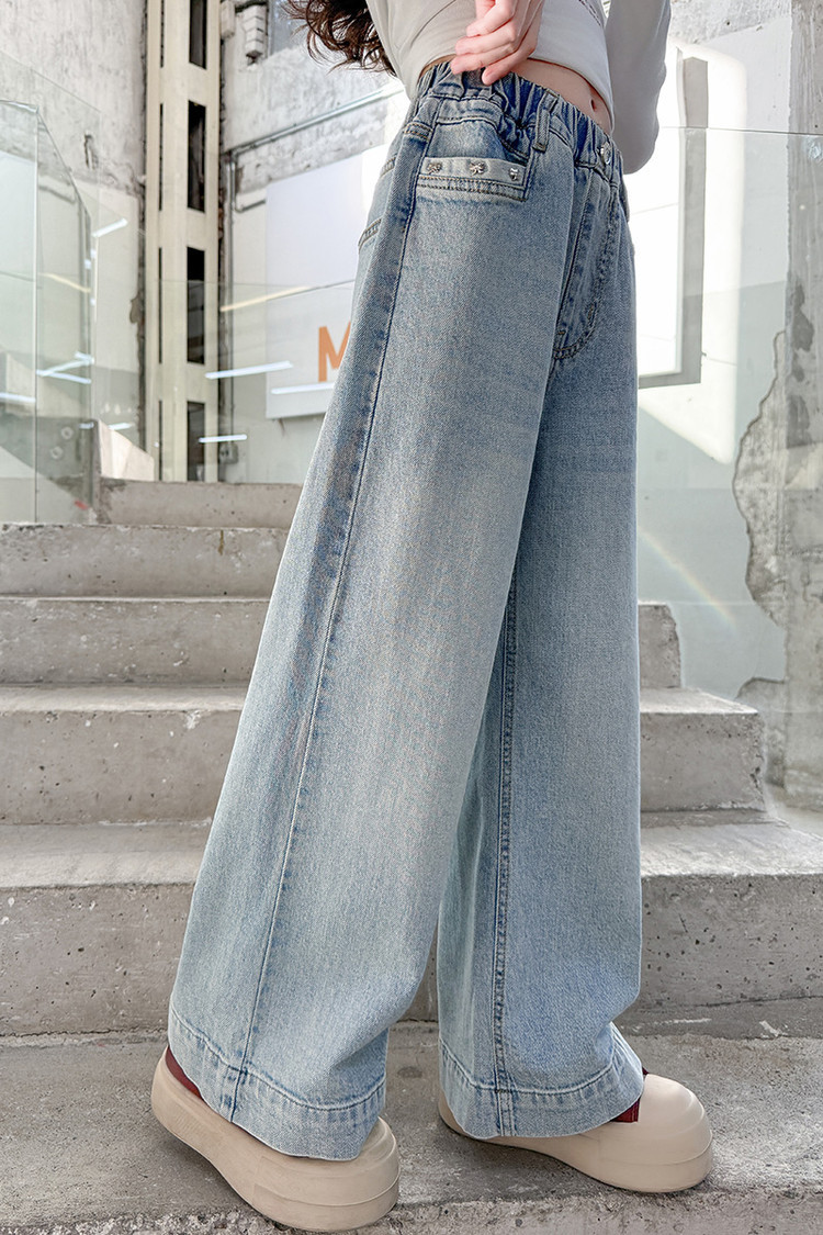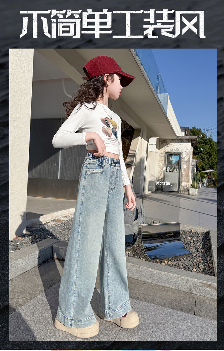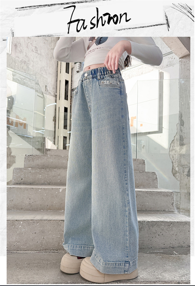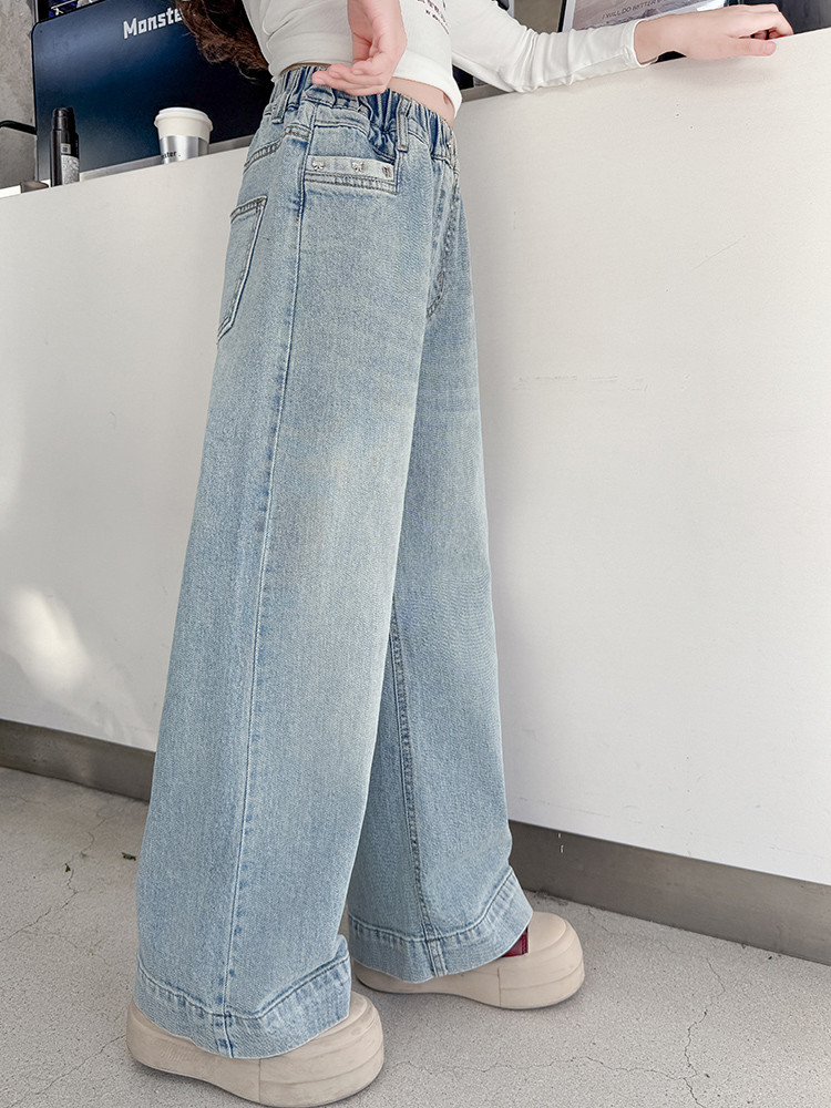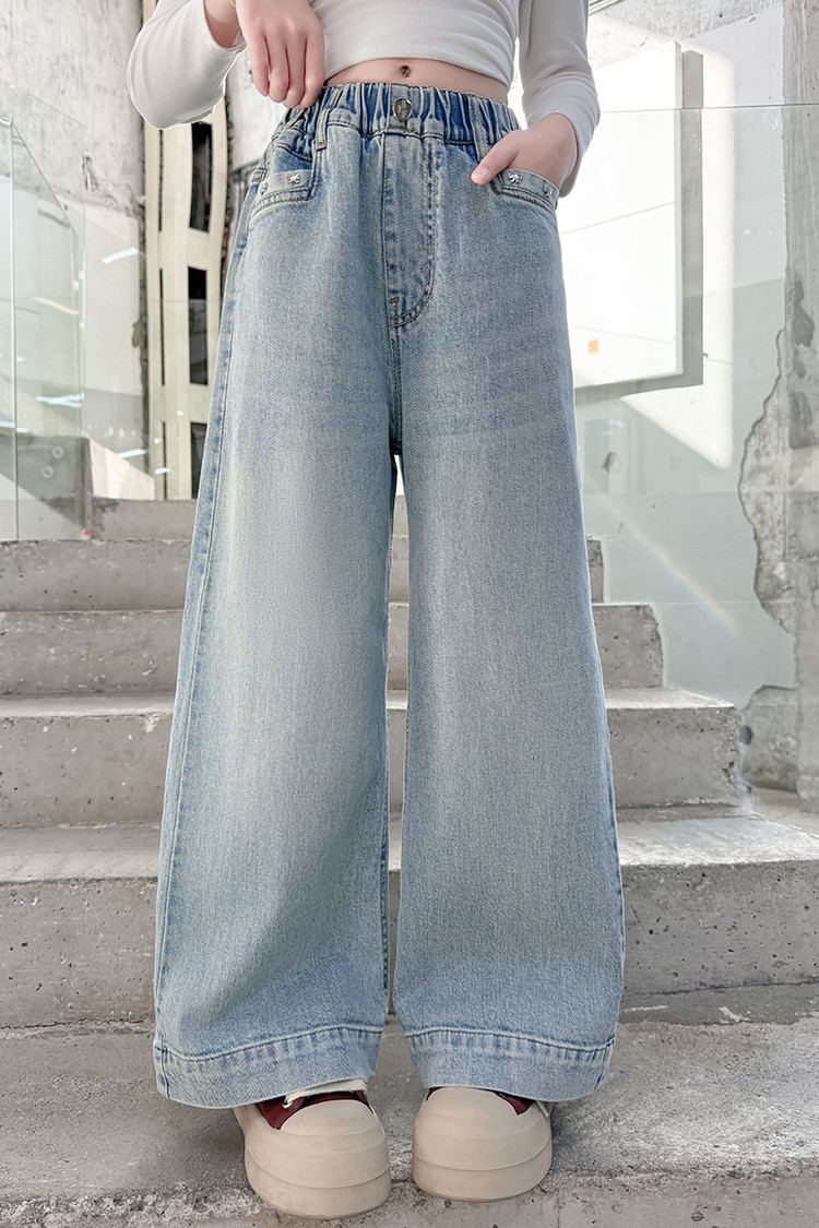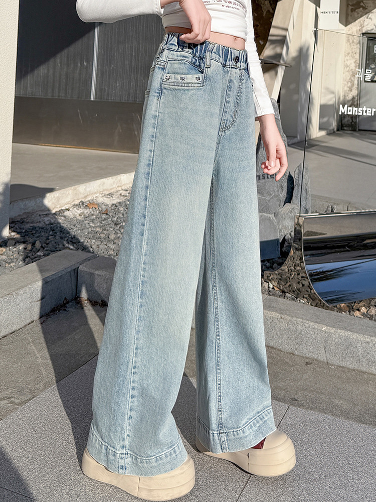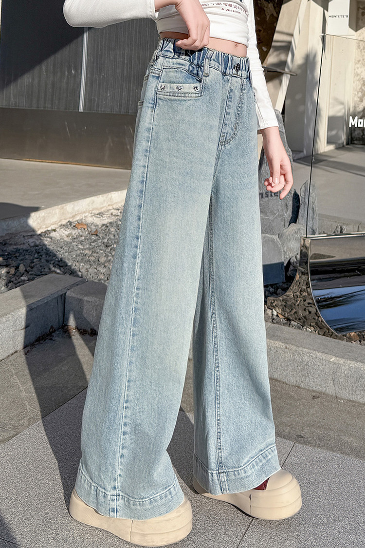 대외 무역 어린이 바지 도매 소녀 청바지 봄과 가을 조수 시원한 스트레이트 바지 소녀 웨스턴 스타일 올 매치 와이드 레그 바지스토어 가기