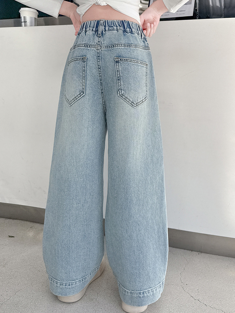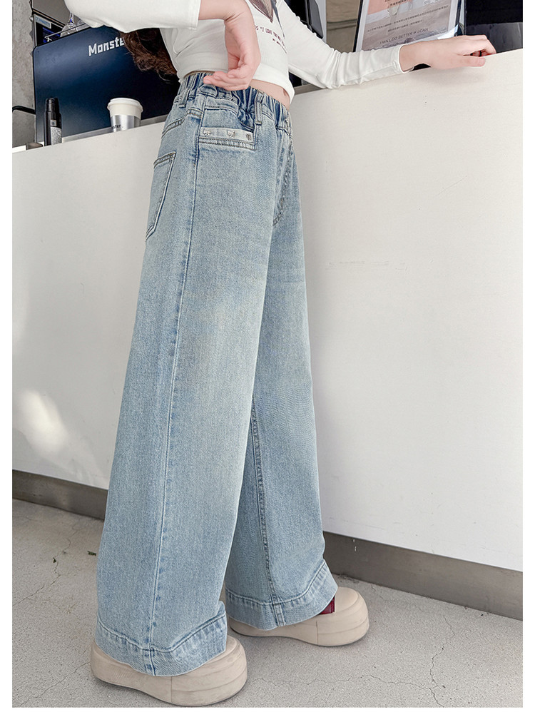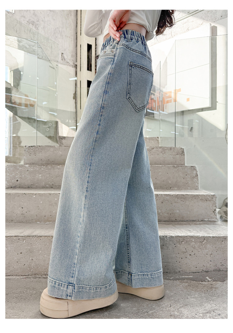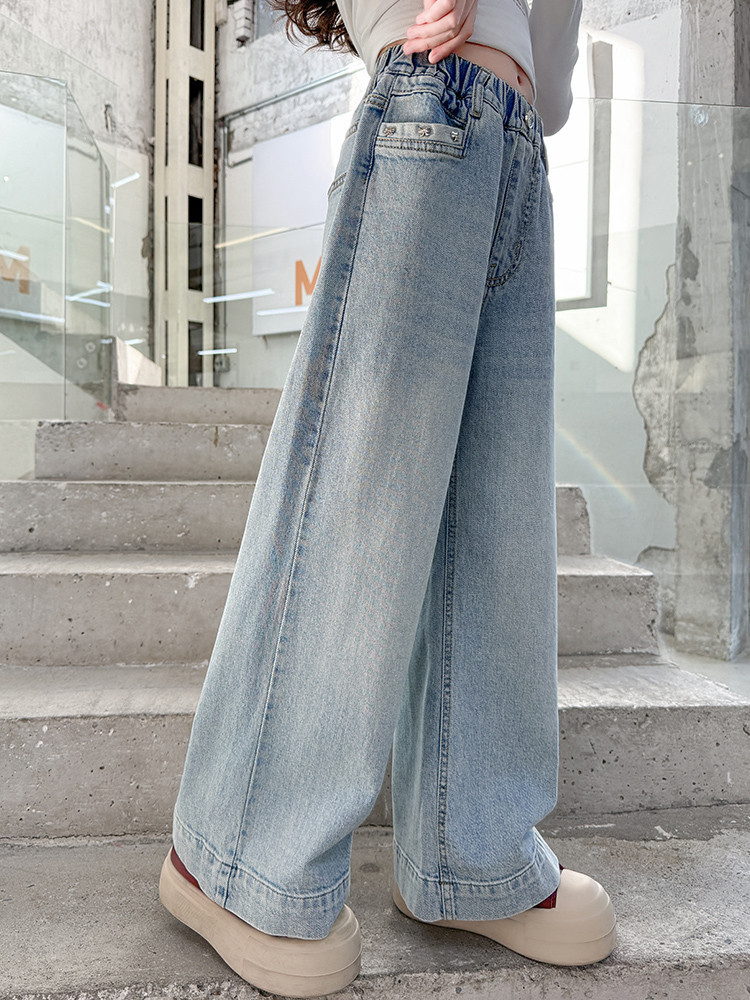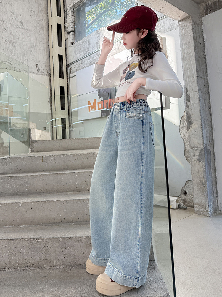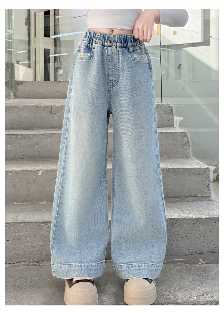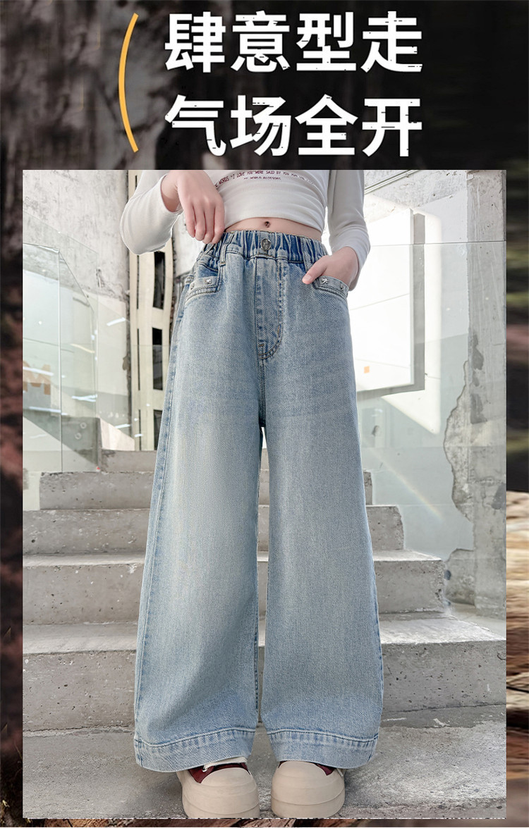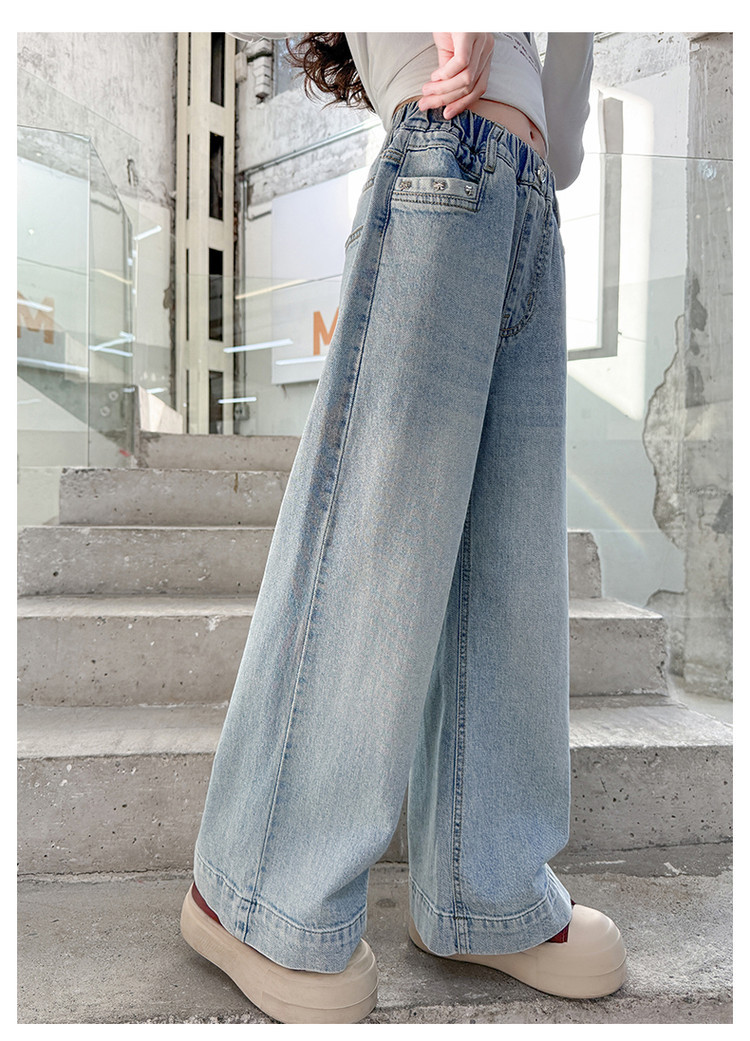 대외 무역 어린이 바지 도매 소녀 청바지 봄과 가을 조수 시원한 스트레이트 바지 소녀 웨스턴 스타일 올 매치 와이드 레그 바지스토어 가기
