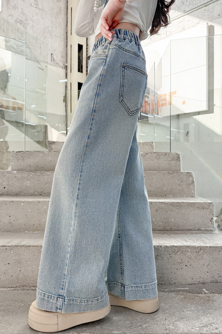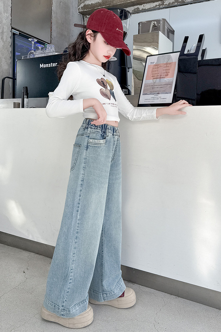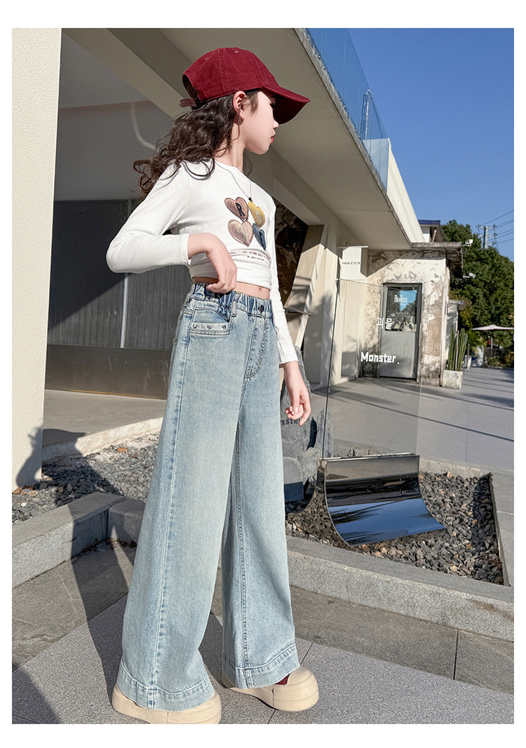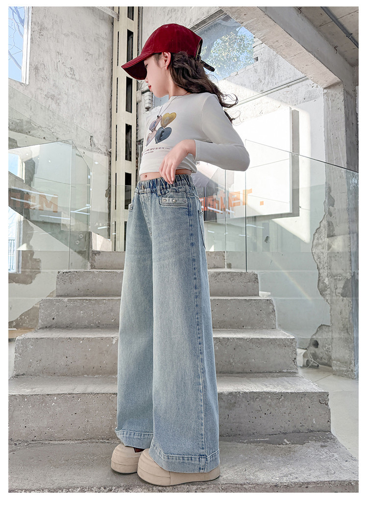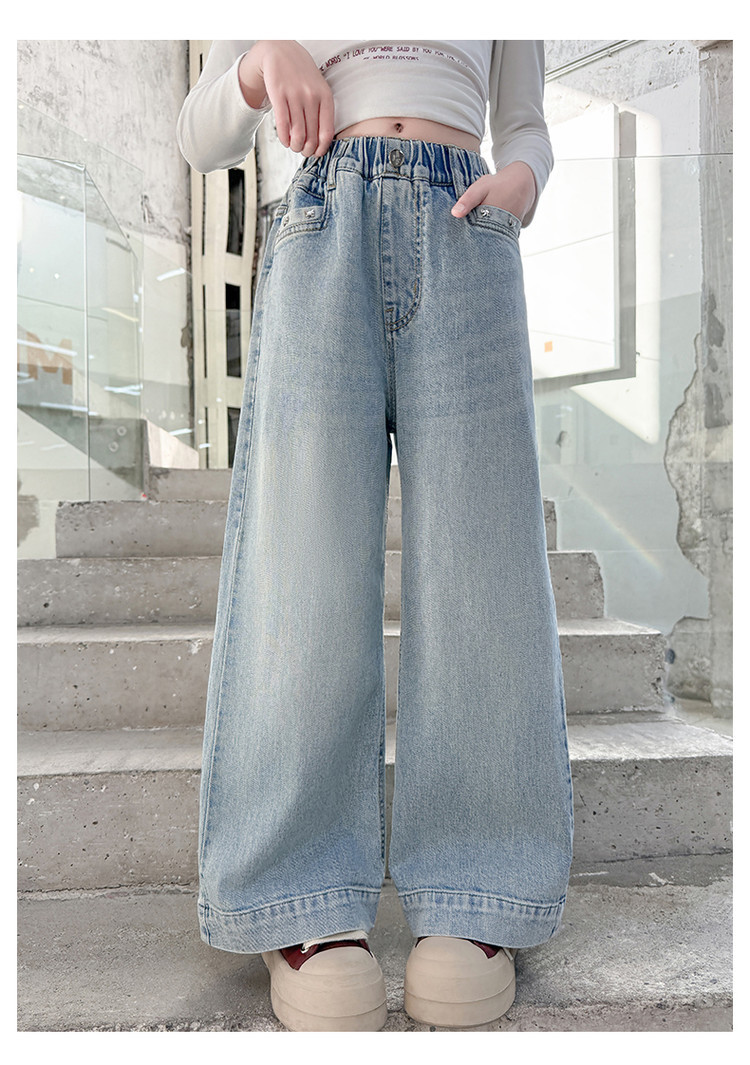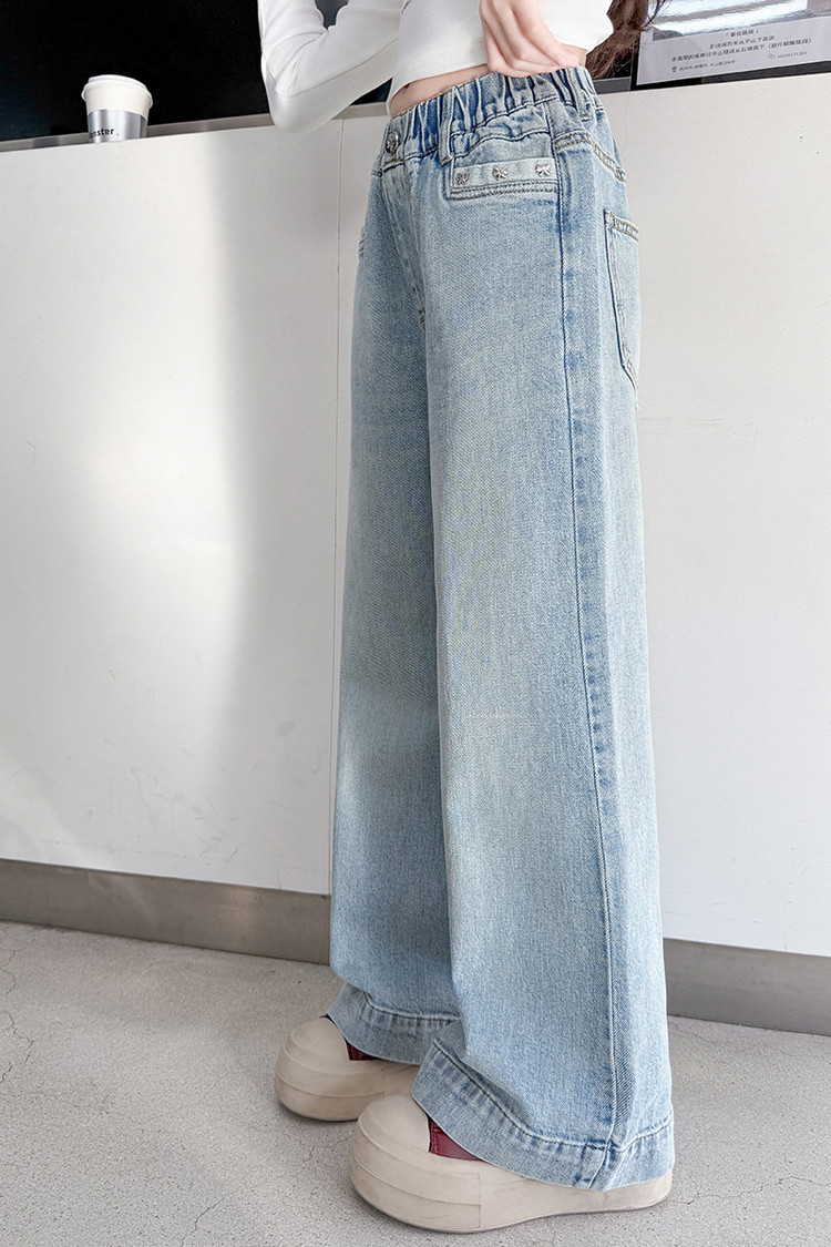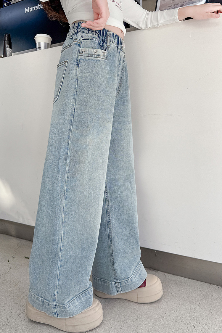 대외 무역 어린이 바지 도매 소녀 청바지 봄과 가을 조수 시원한 스트레이트 바지 소녀 웨스턴 스타일 올 매치 와이드 레그 바지스토어 가기