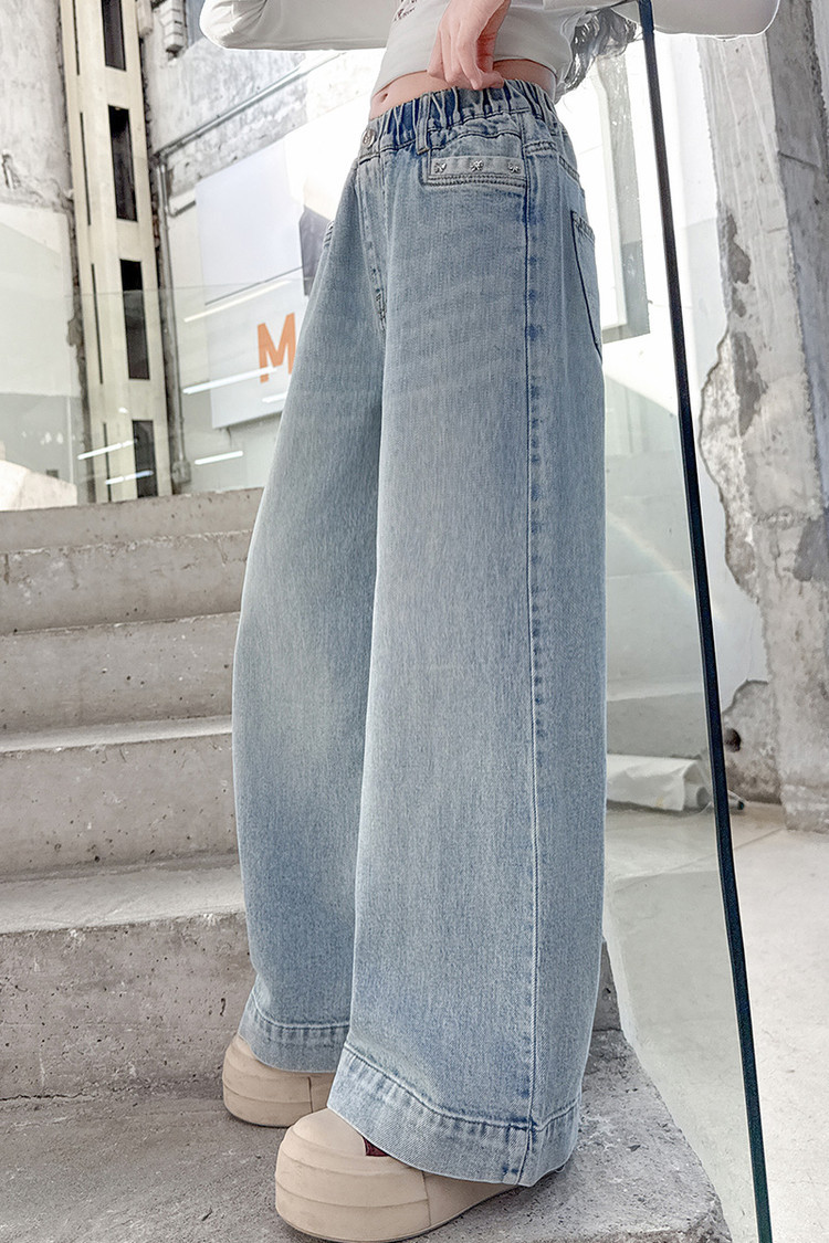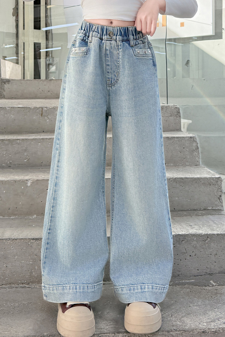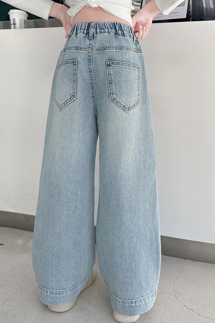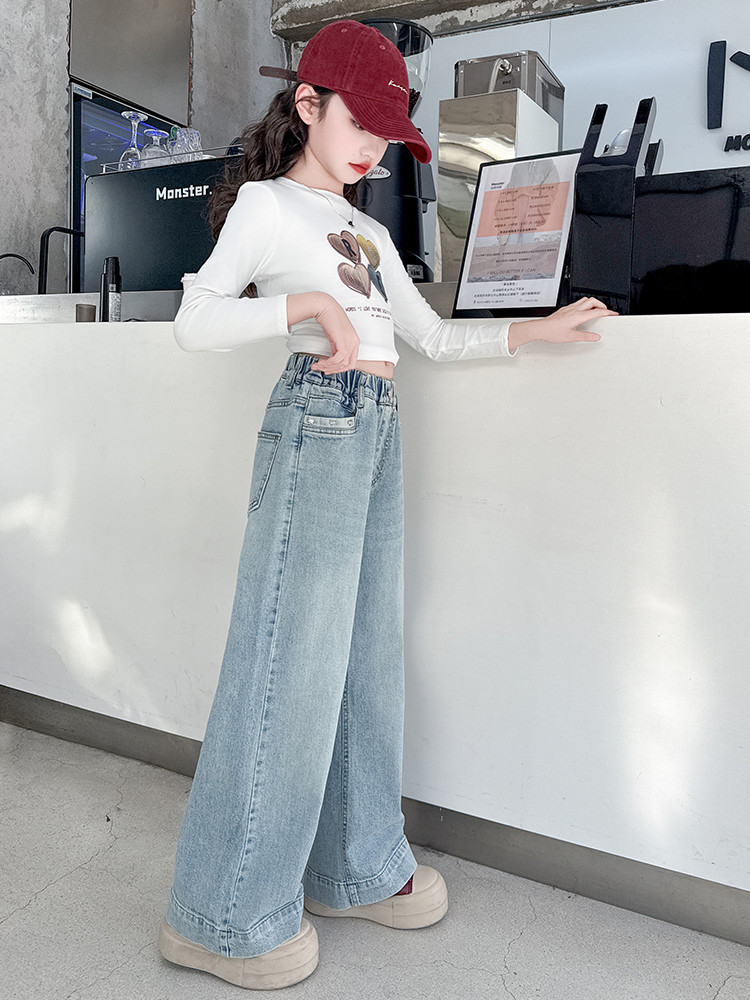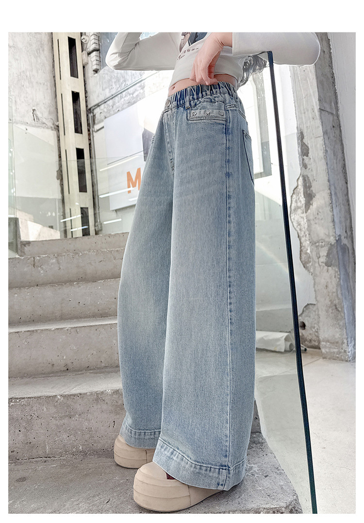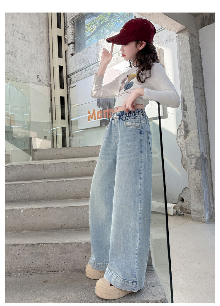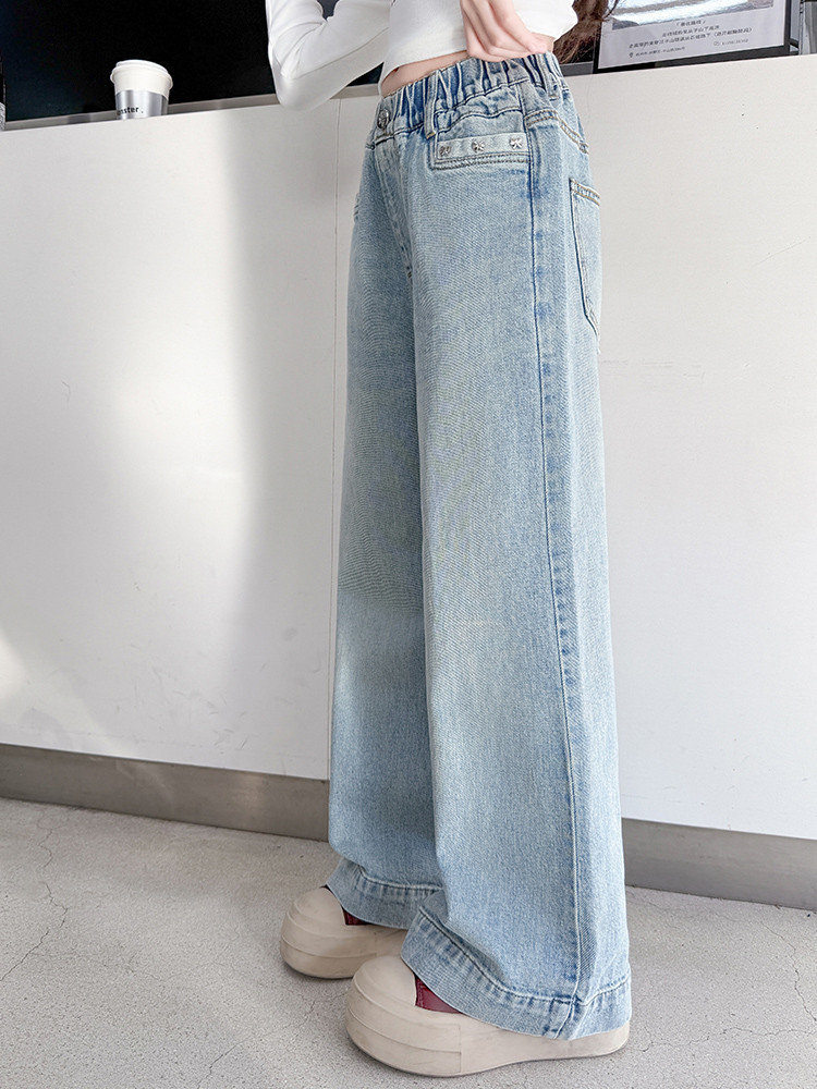 대외 무역 어린이 바지 도매 소녀 청바지 봄과 가을 조수 시원한 스트레이트 바지 소녀 웨스턴 스타일 올 매치 와이드 레그 바지스토어 가기