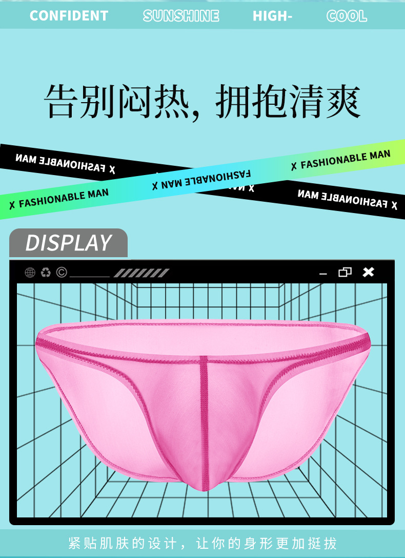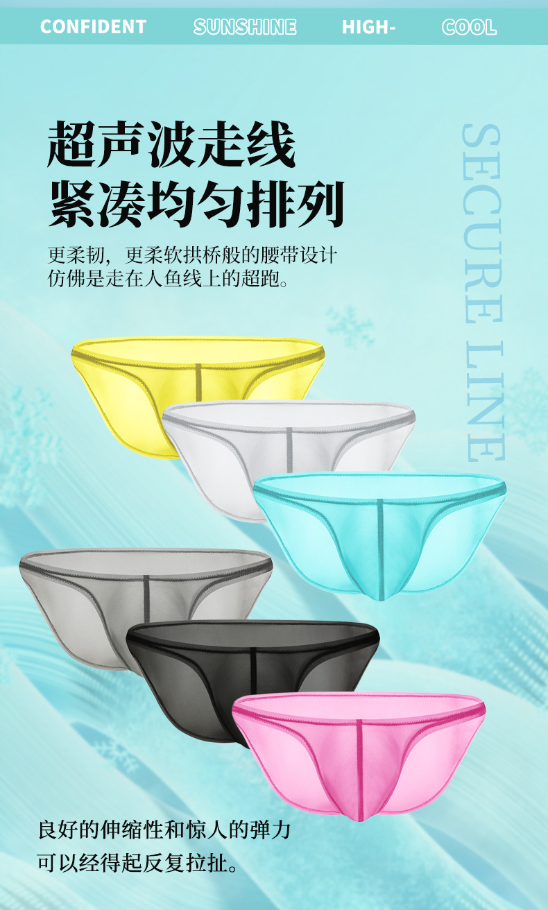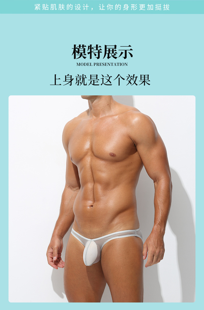 남성 속옷 브리프 초박형 50g 아이스 실크 섹시 완전 투명 유행 맞춤형 헤링본 자동차 낮은 허리 브리프스토어 가기