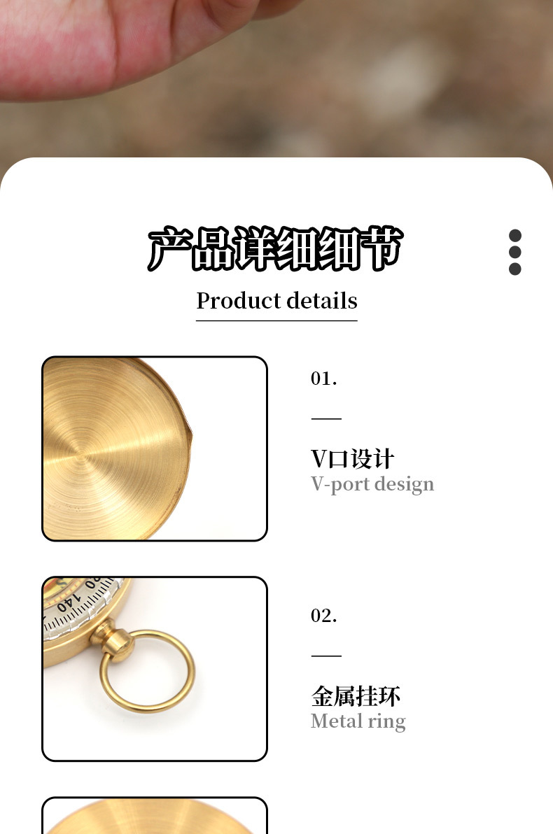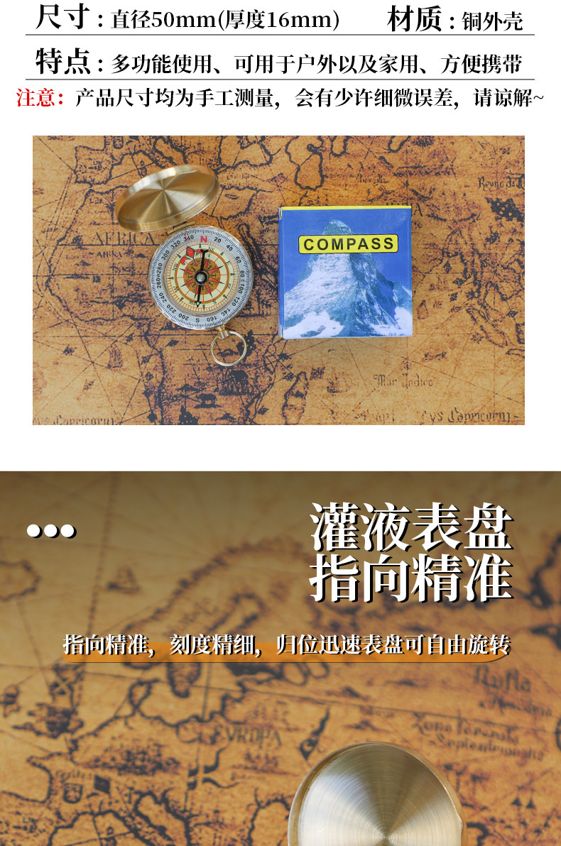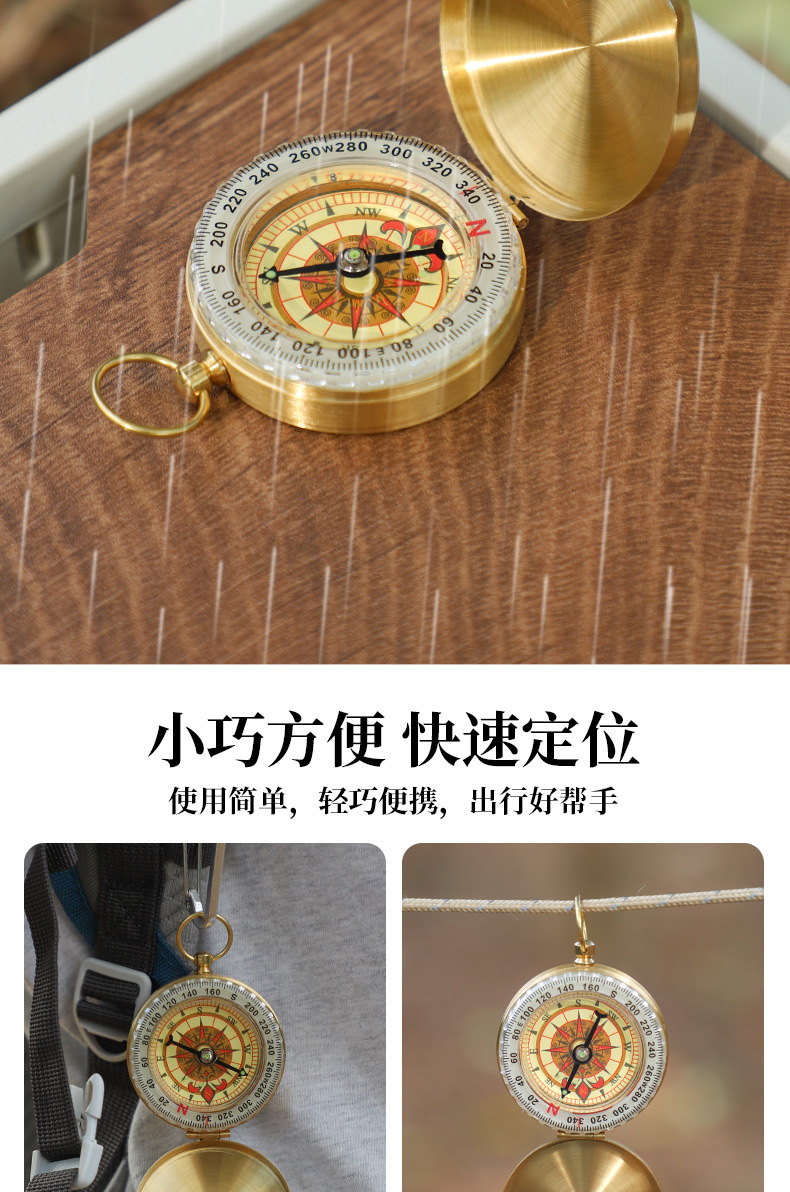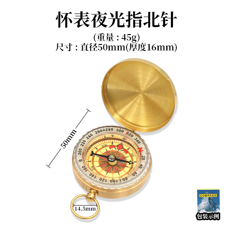 야외 순수 구리 북쪽 G50 포켓 시계 레트로 플립 나침반 야외 등산 다기능 조명 커버