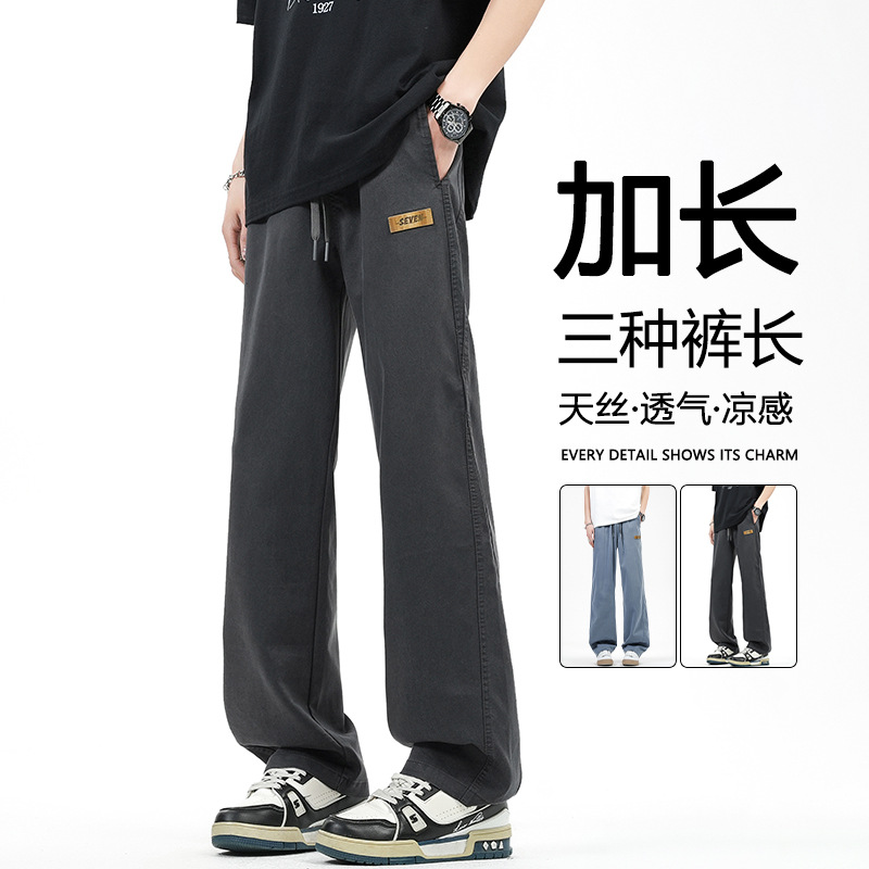 키가 큰 바지 남자의 긴 텐셀 스트레이트 바지 남자 봄과 가을 2025 새로운 여름 얇은 얼음 감각 캐주얼 바지스토어 가기