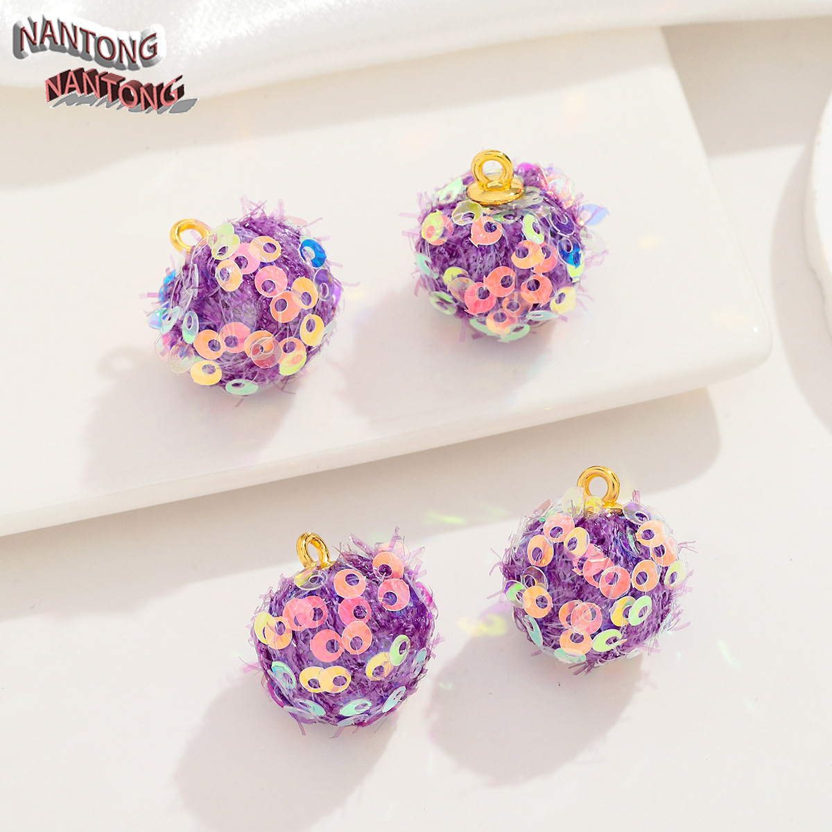 • AB 스팽글이 있는 16mm 퍼 볼 펜던트
