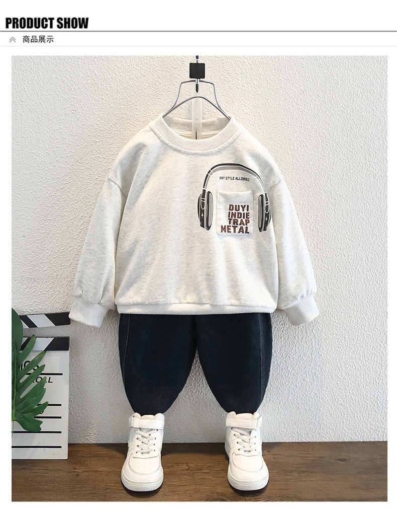 소년 스웨트 셔츠 2025 새로운 어린이 봄과 가을 탑 어린이 봄 소년의 풀오버 세련된 유행
