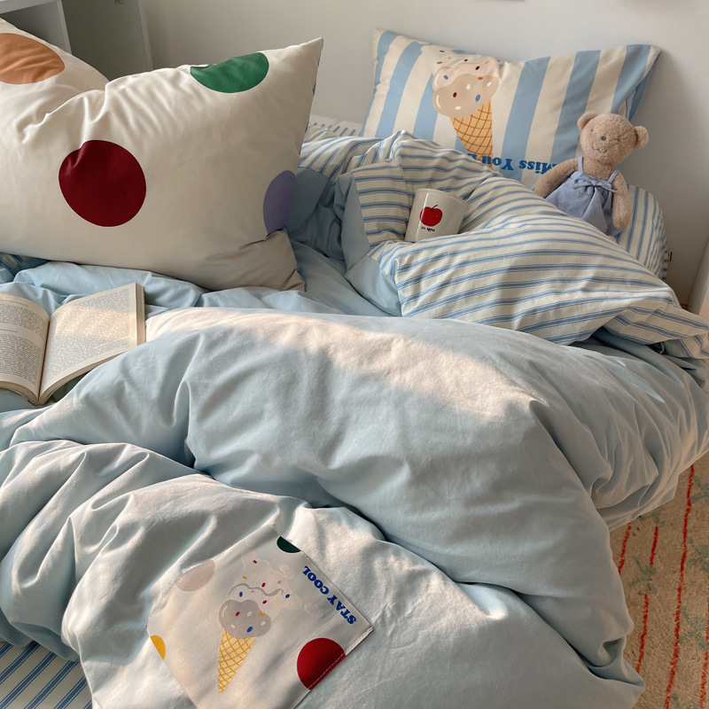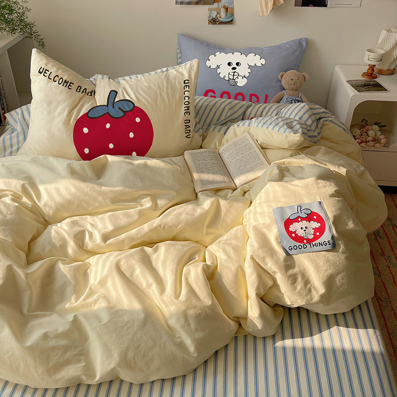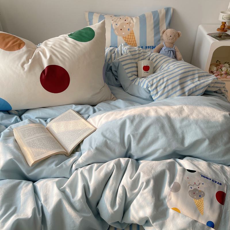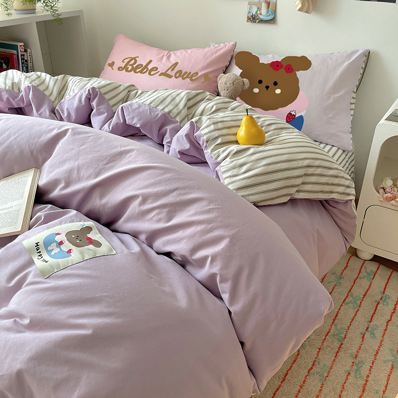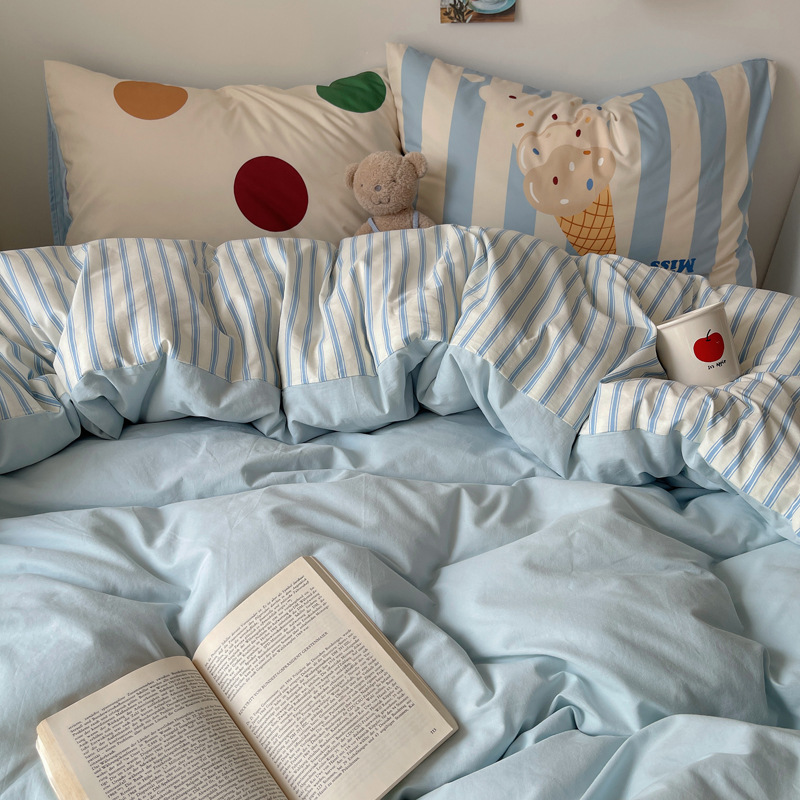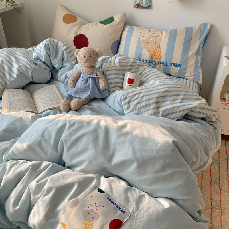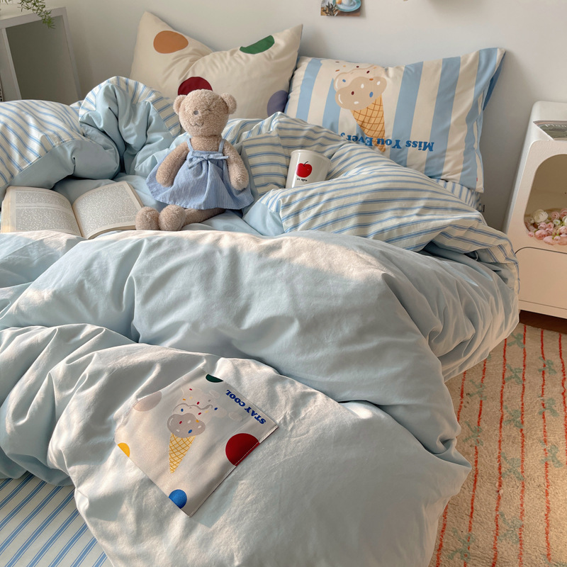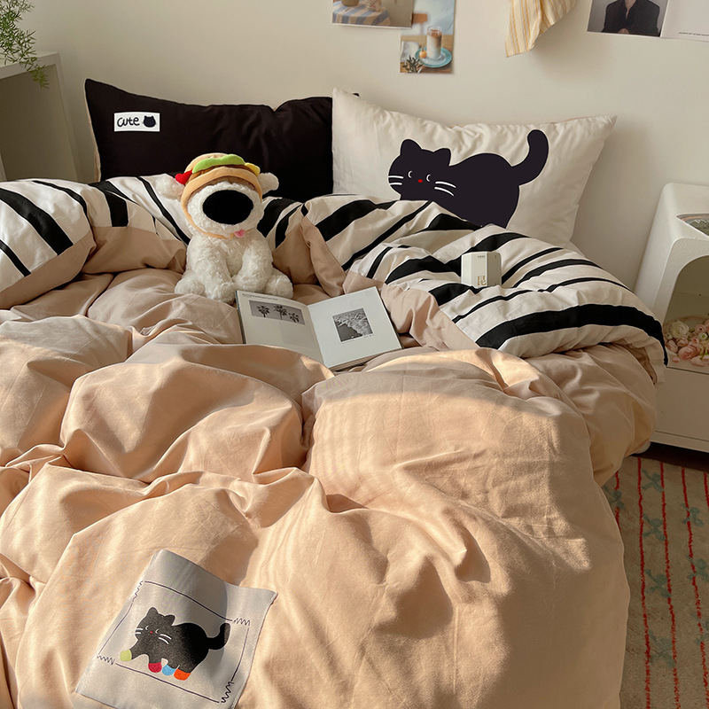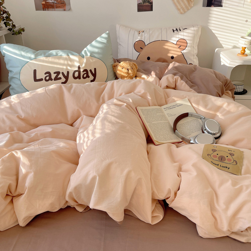 2025 새로운 스타일 세척 코튼 침대 4 피스 침구 싱글 퀼트 커버 학생 기숙사 시트 퀼트 커버 3 피스 세트스토어 가기