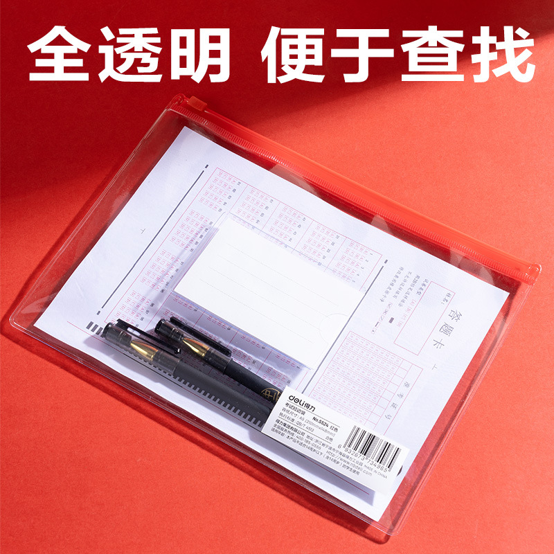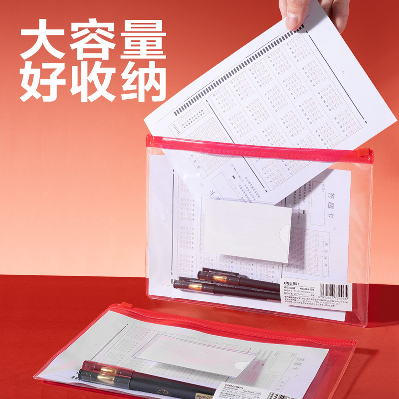 델리 5524 시험 파일 가방 a5 투명 풀 엣지 가방 학생 고등학교 입학 시험 펜 가방 시험실 방수 제공