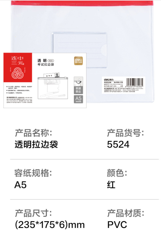 델리 5524 시험 파일 가방 a5 투명 풀 엣지 가방 학생 고등학교 입학 시험 펜 가방 시험실 방수 제공스토어 가기