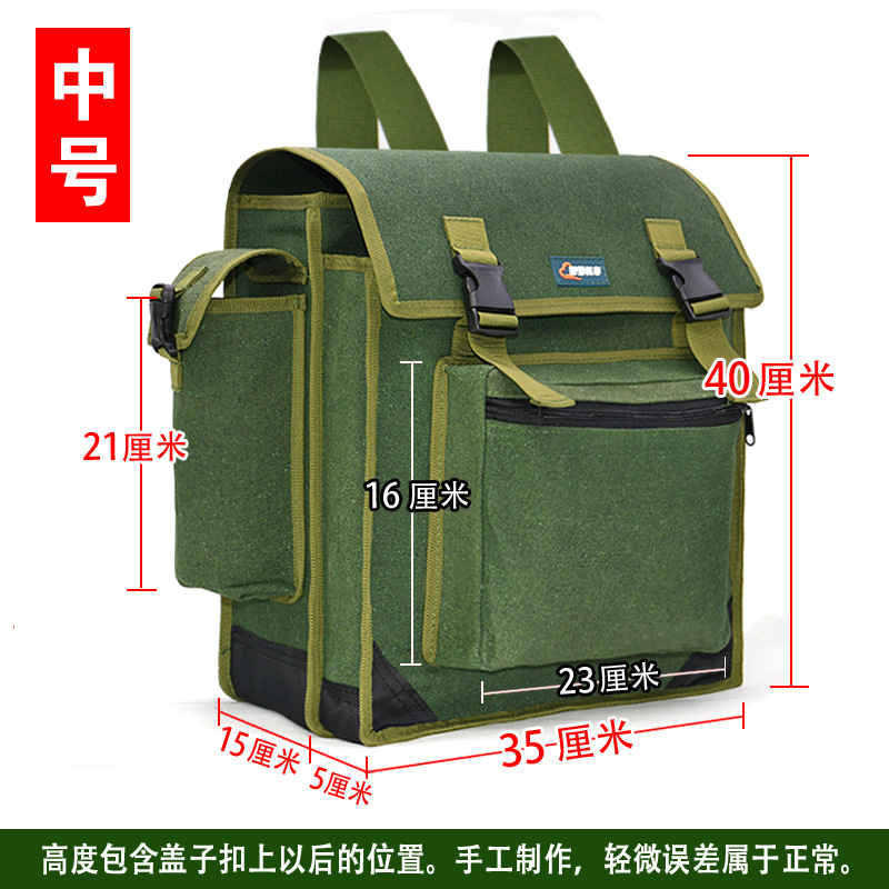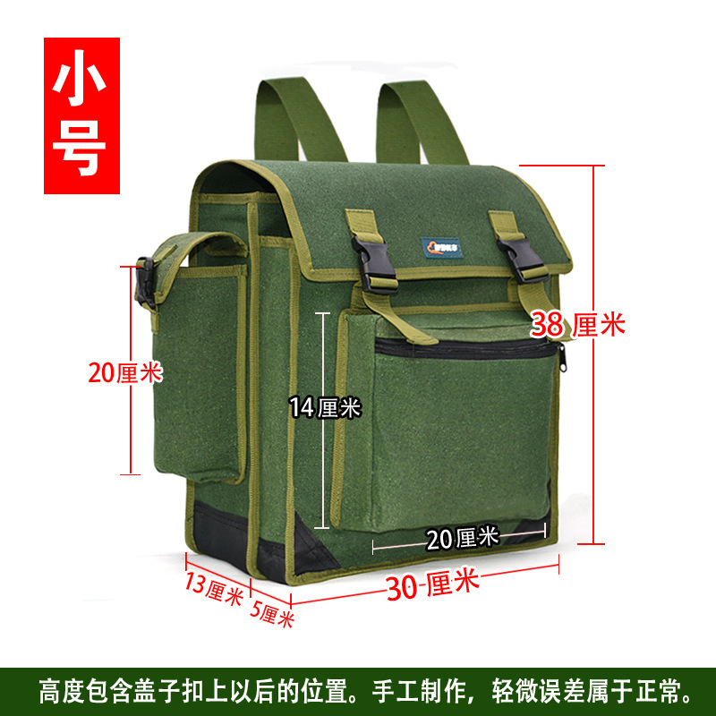 도구 배낭 배낭 두꺼운 캔버스 더블 레이어 목공 포켓 유지 보수 가방 대용량 장식 및 설치 물 전기 가방