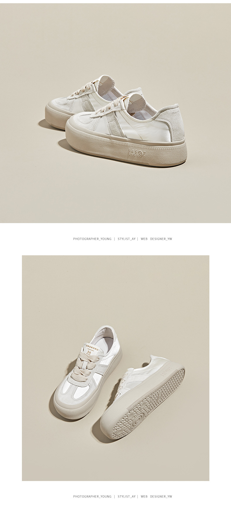 두꺼운 밑창 정품 가죽 새틴 Desun 신발 여성 2025 년 새로운 올 매치 스포츠 캐주얼 신발 레트로 레이스 업 스니커즈 화이트 슈즈스토어 가기