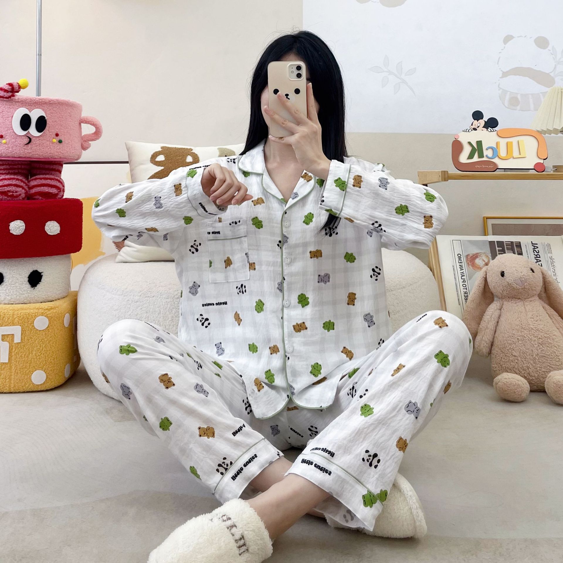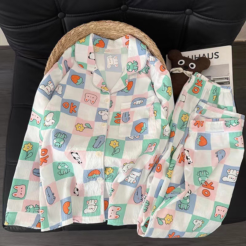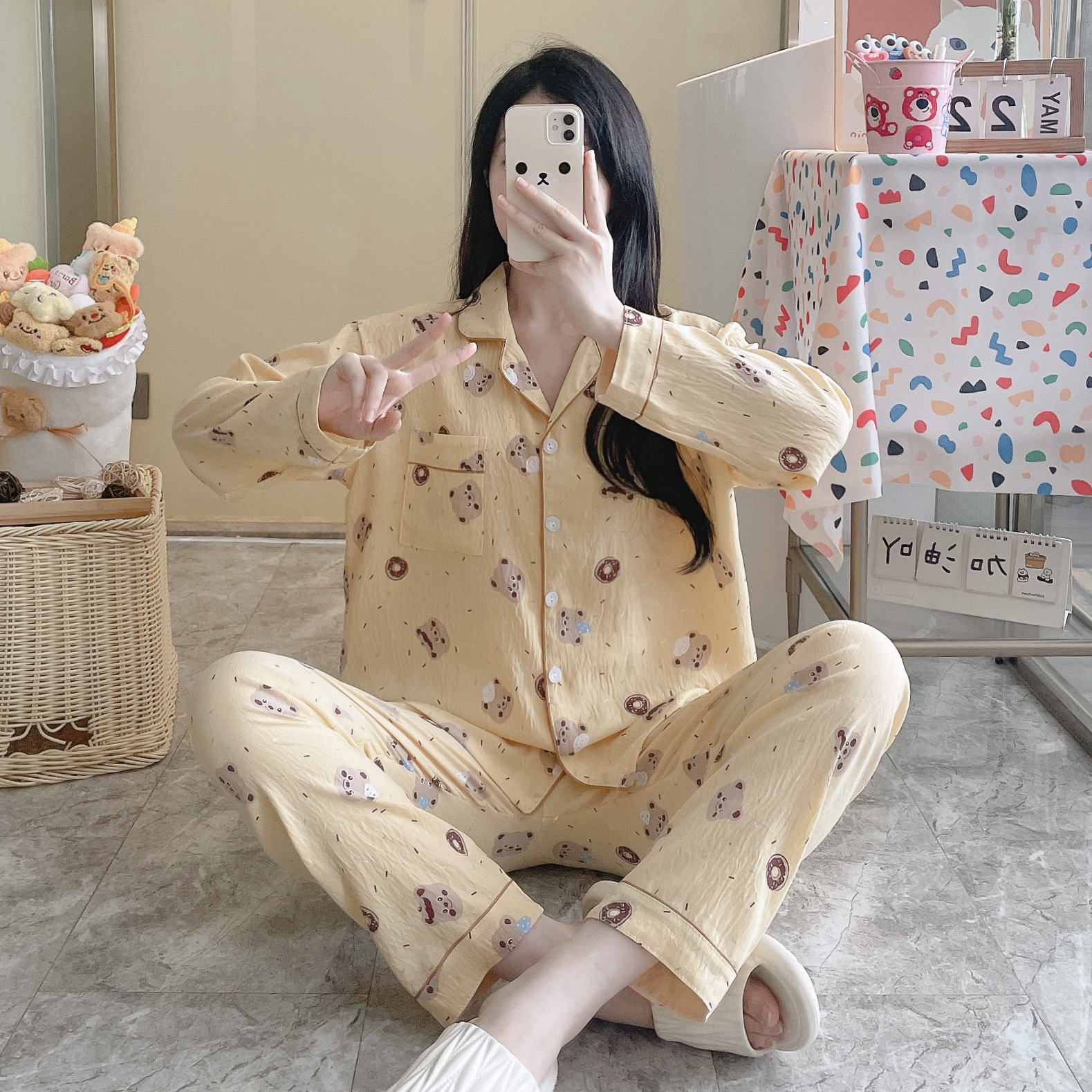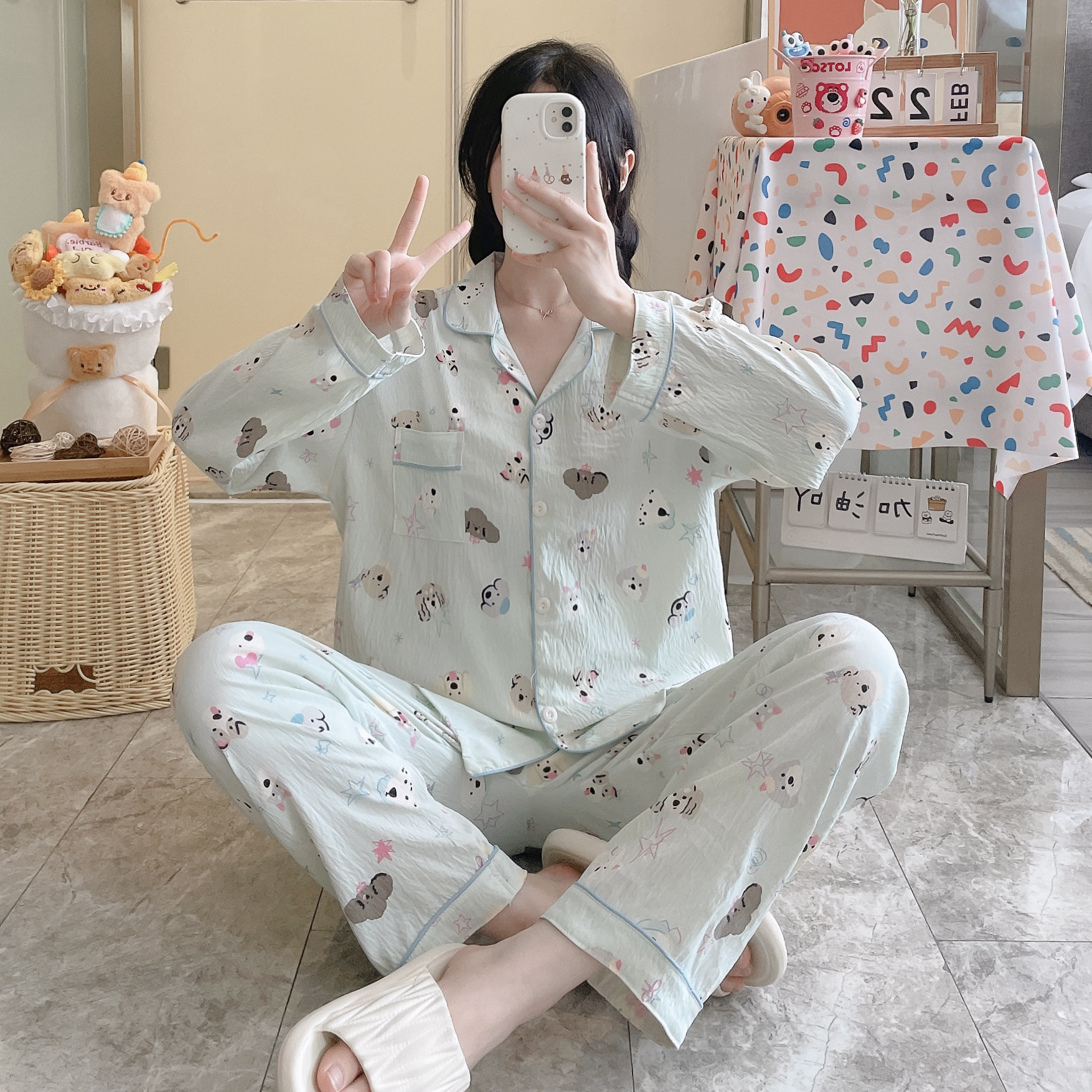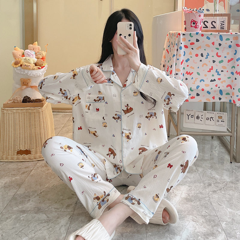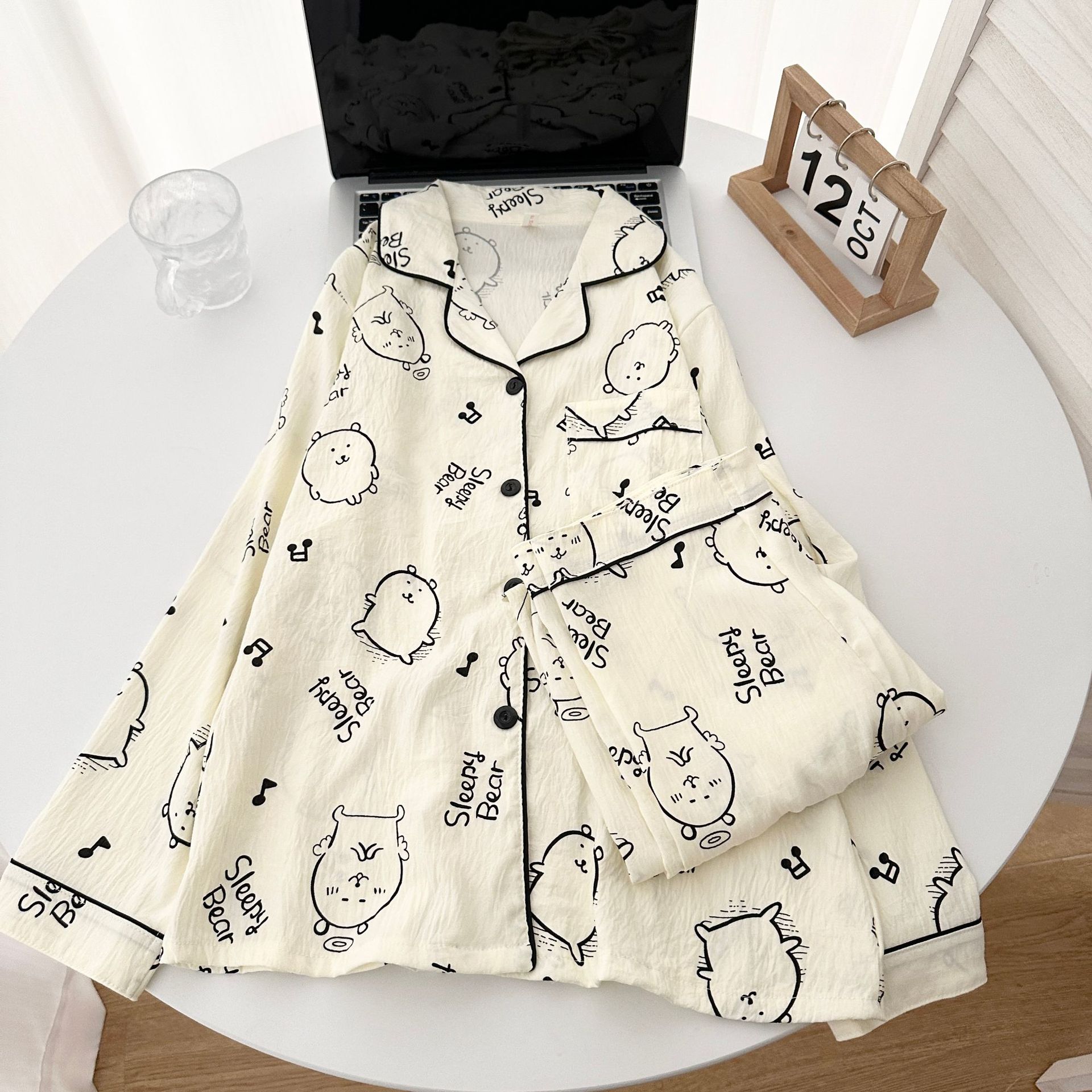여성용 가을 만화 캐릭터 귀여운 긴팔 긴바지 만화 카디건 라펠 홈웨어 세트, 크로스보더 도매 클라우드 코튼 파자마