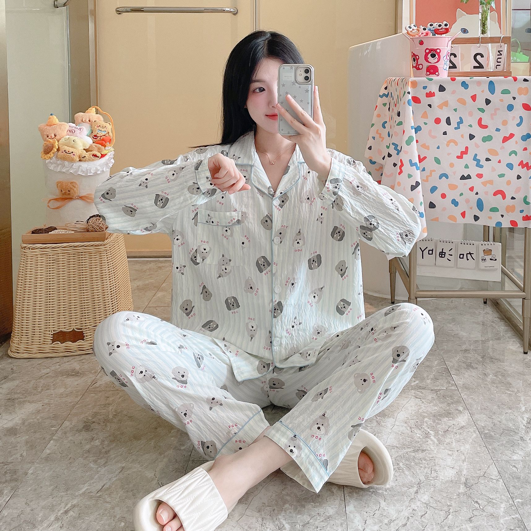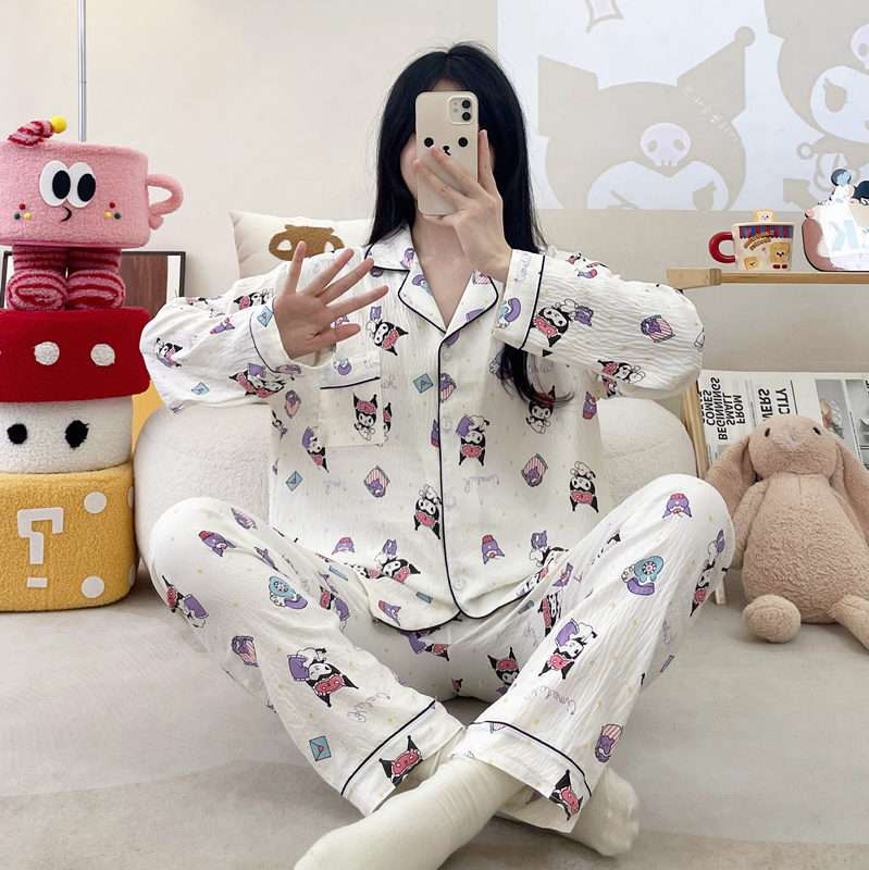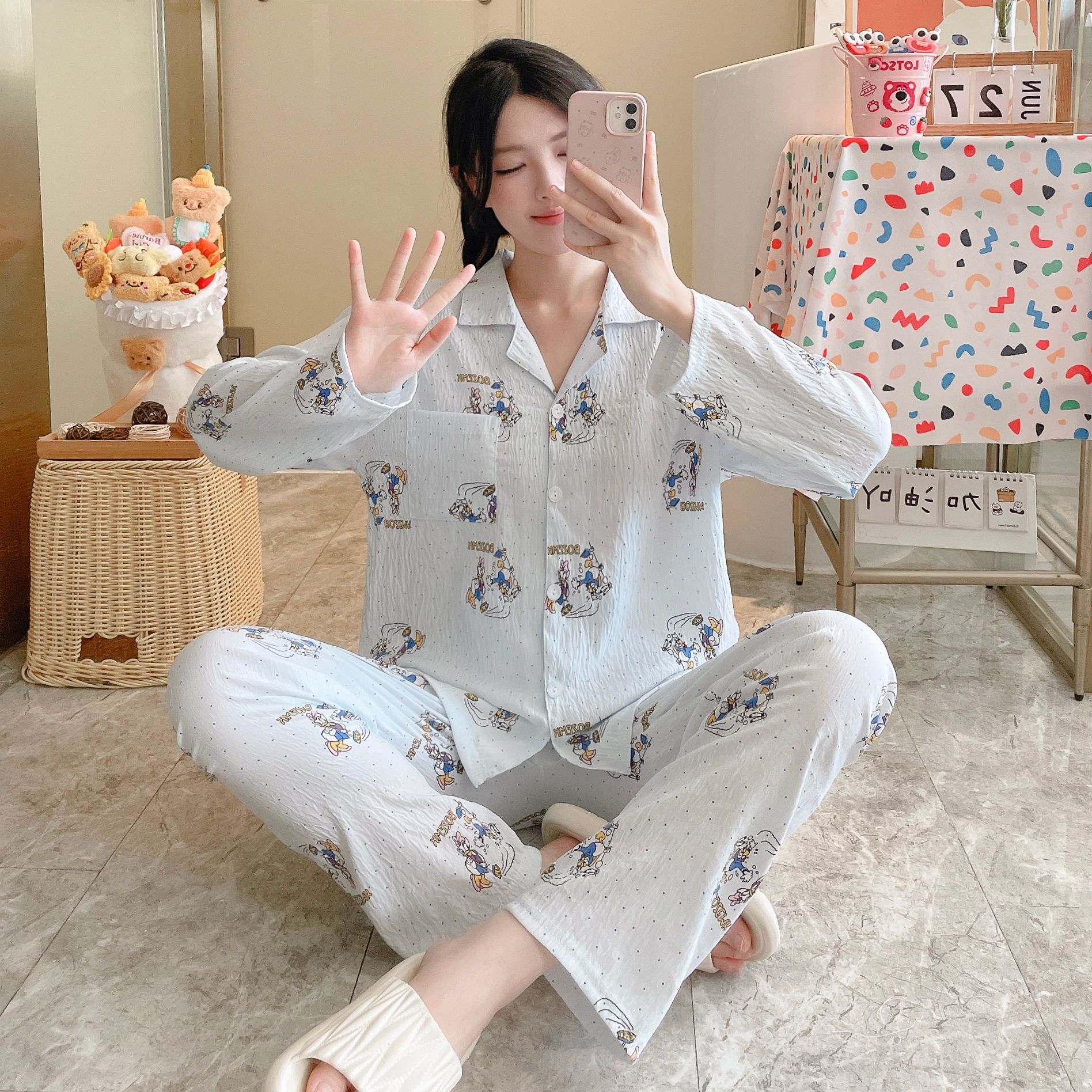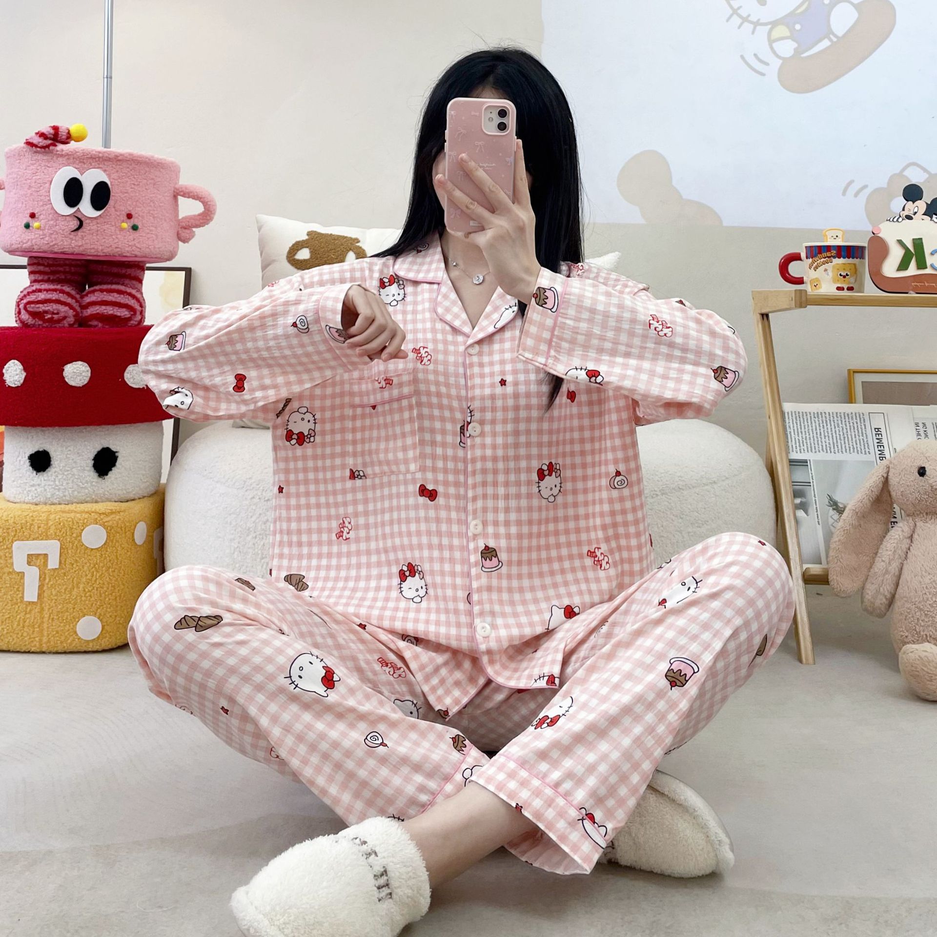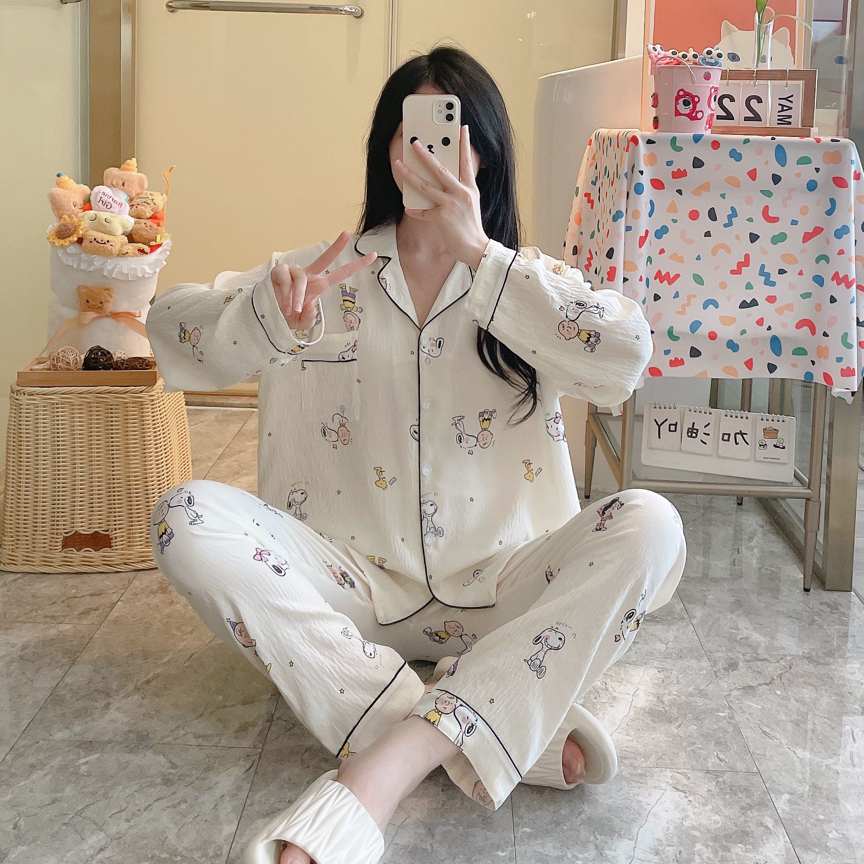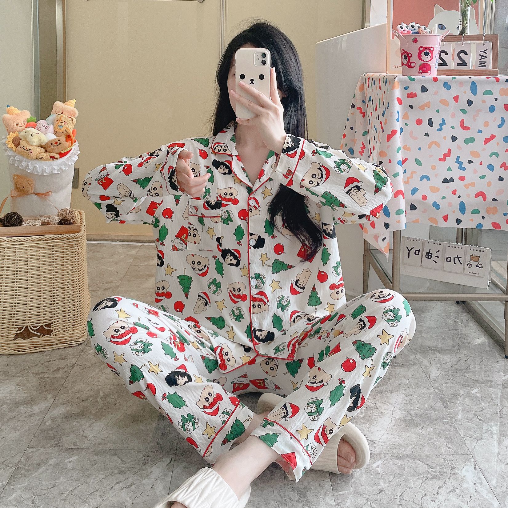여성용 가을 만화 캐릭터 귀여운 긴팔 긴바지 만화 카디건 라펠 홈웨어 세트, 크로스보더 도매 클라우드 코튼 파자마