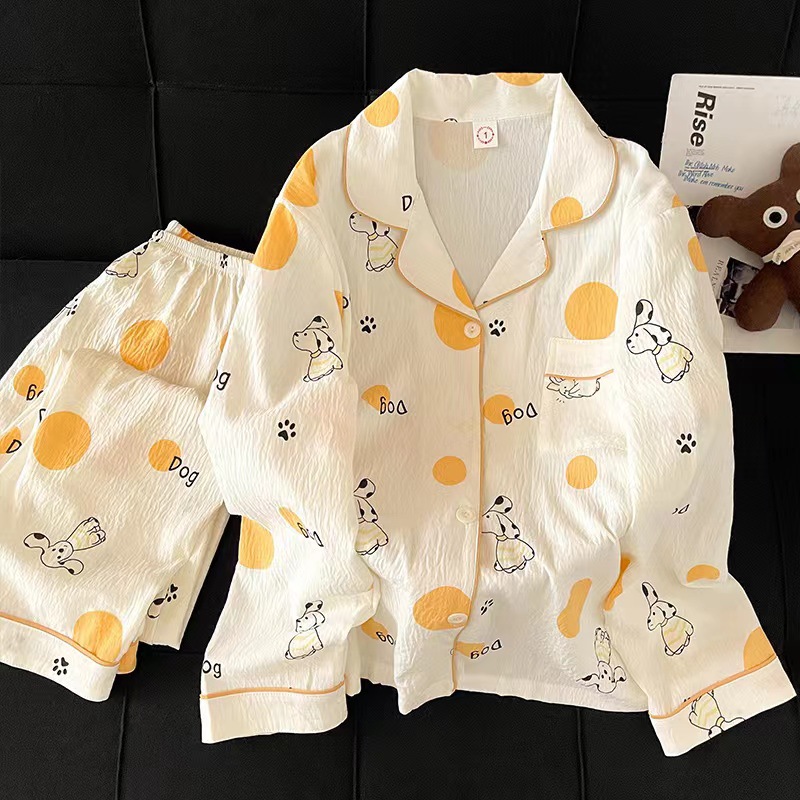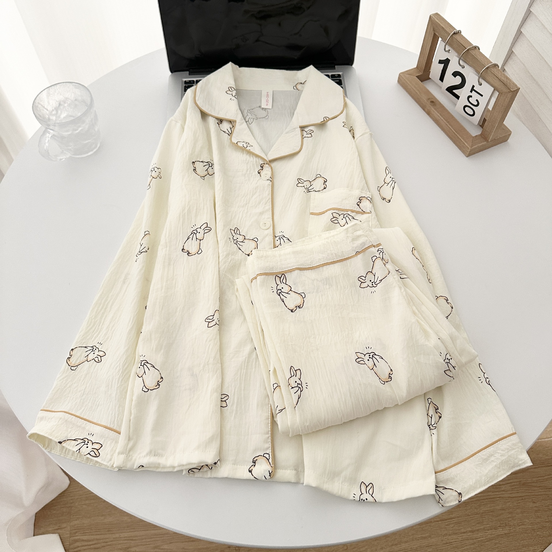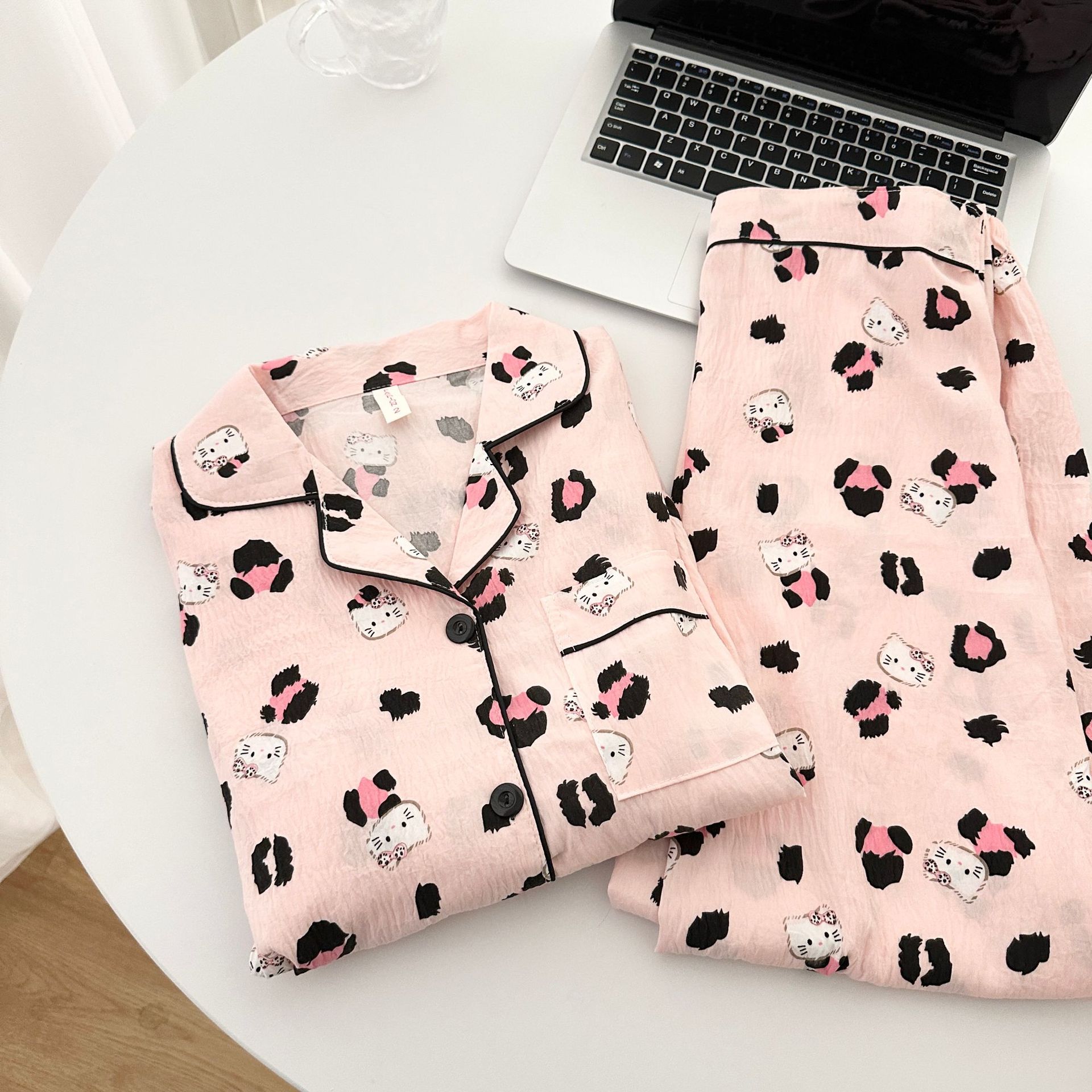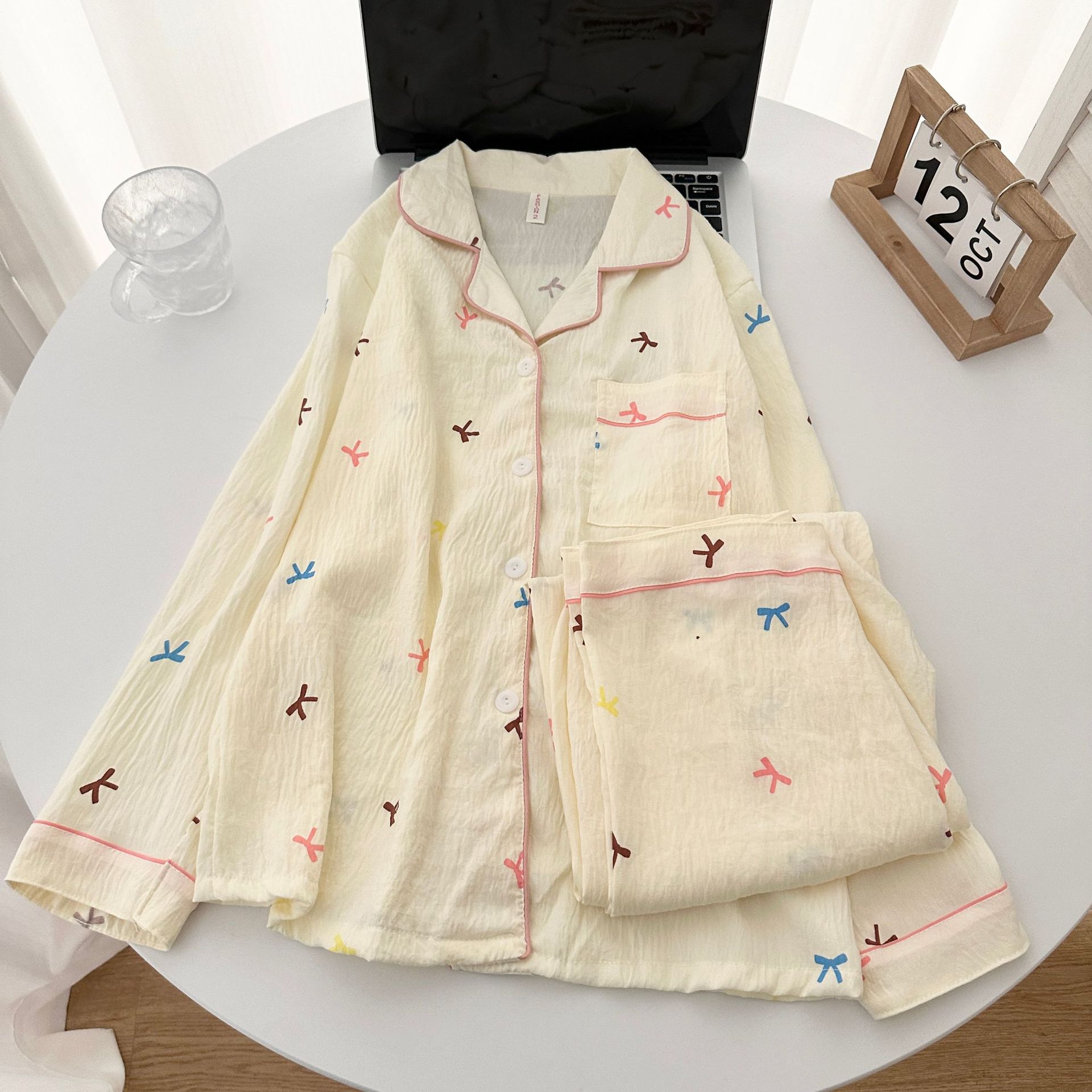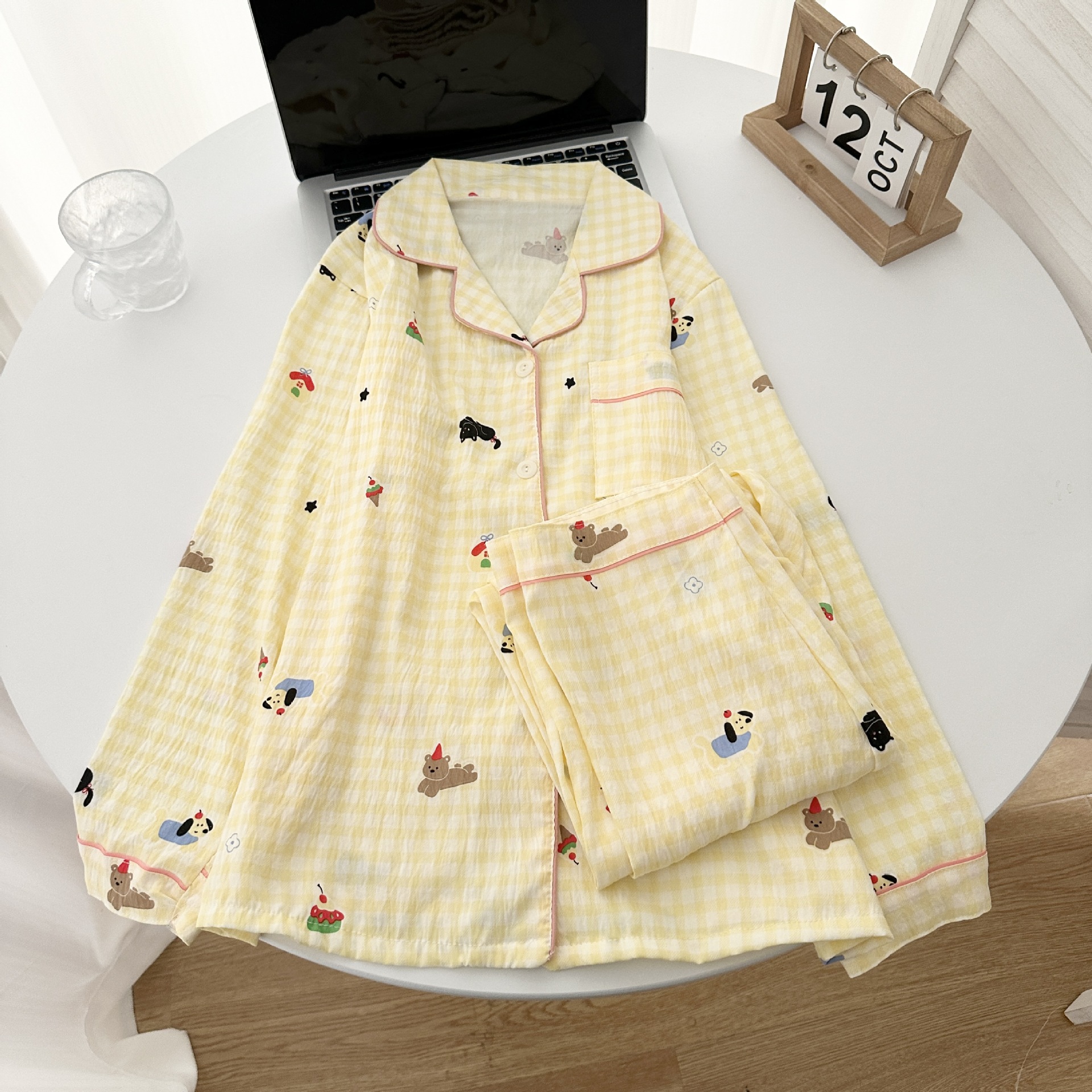 여성용 가을 만화 캐릭터 귀여운 긴팔 긴바지 만화 카디건 라펠 홈웨어 세트, 크로스보더 도매 클라우드 코튼 파자마