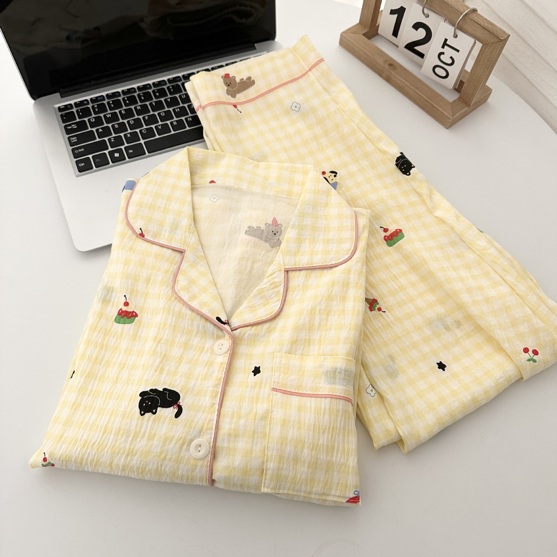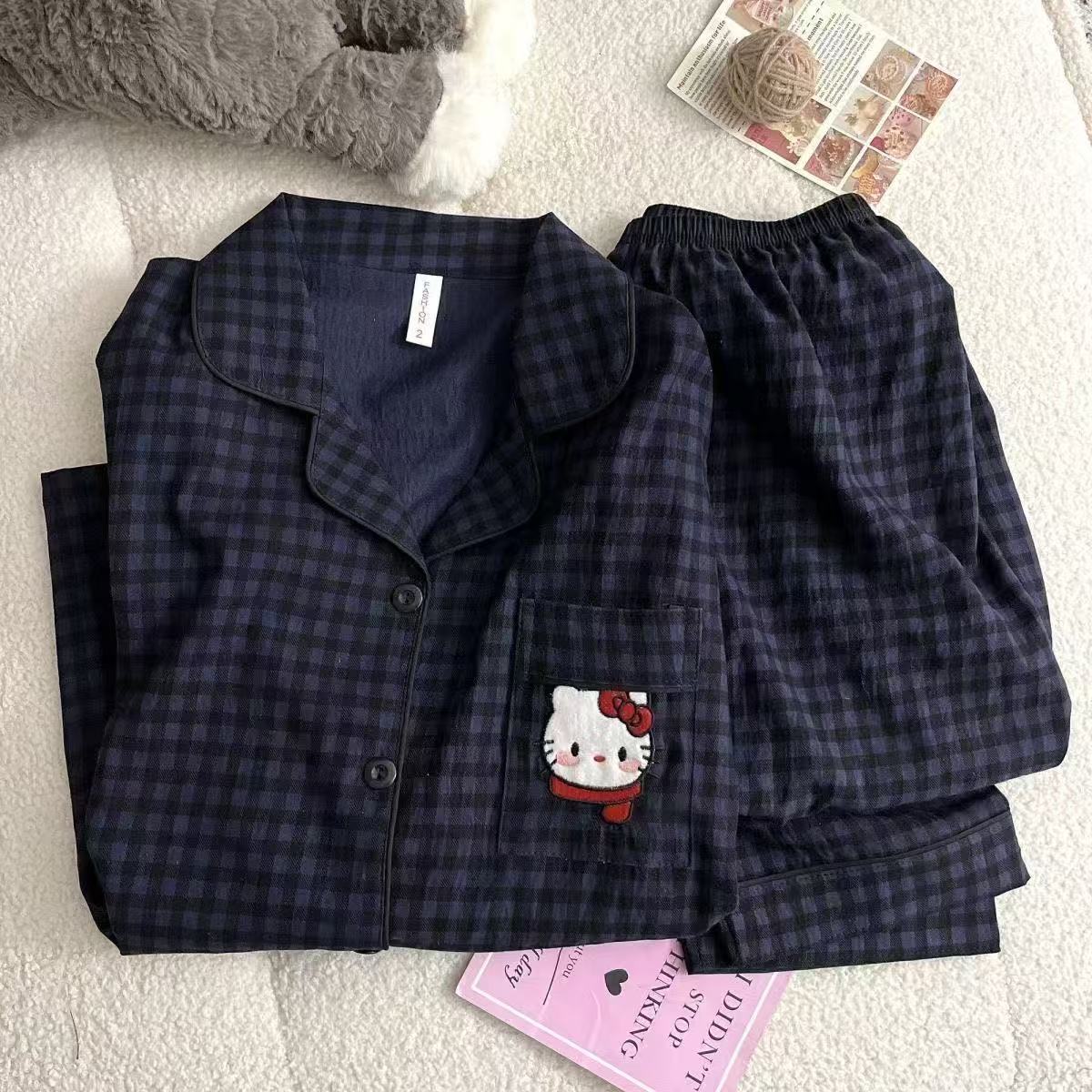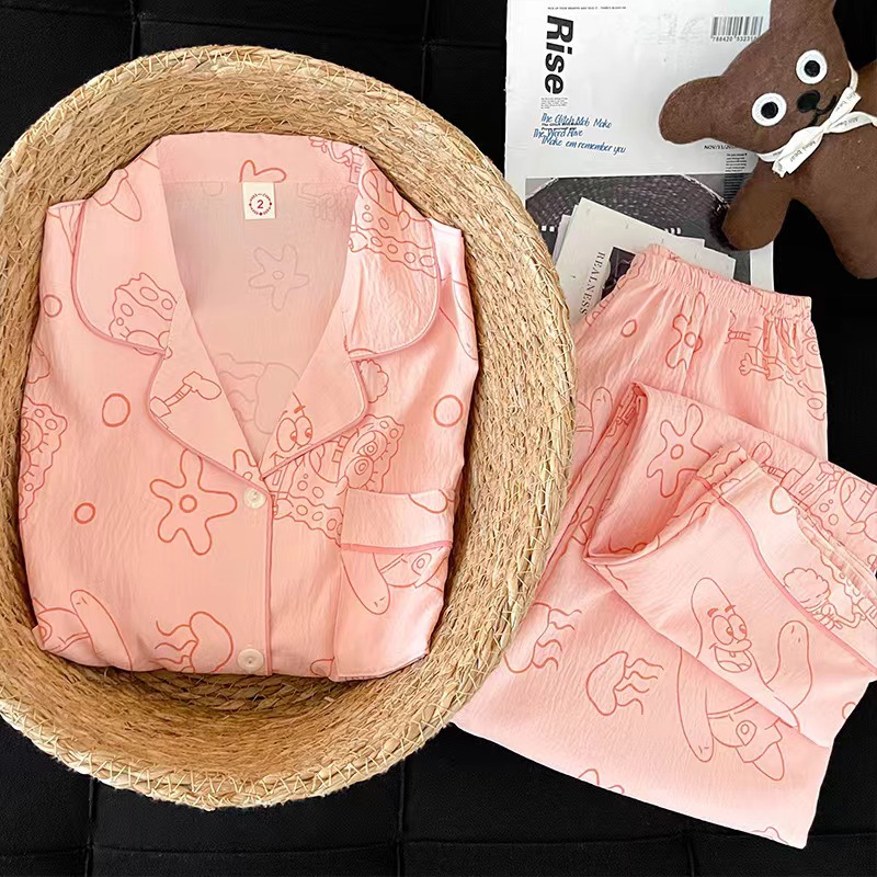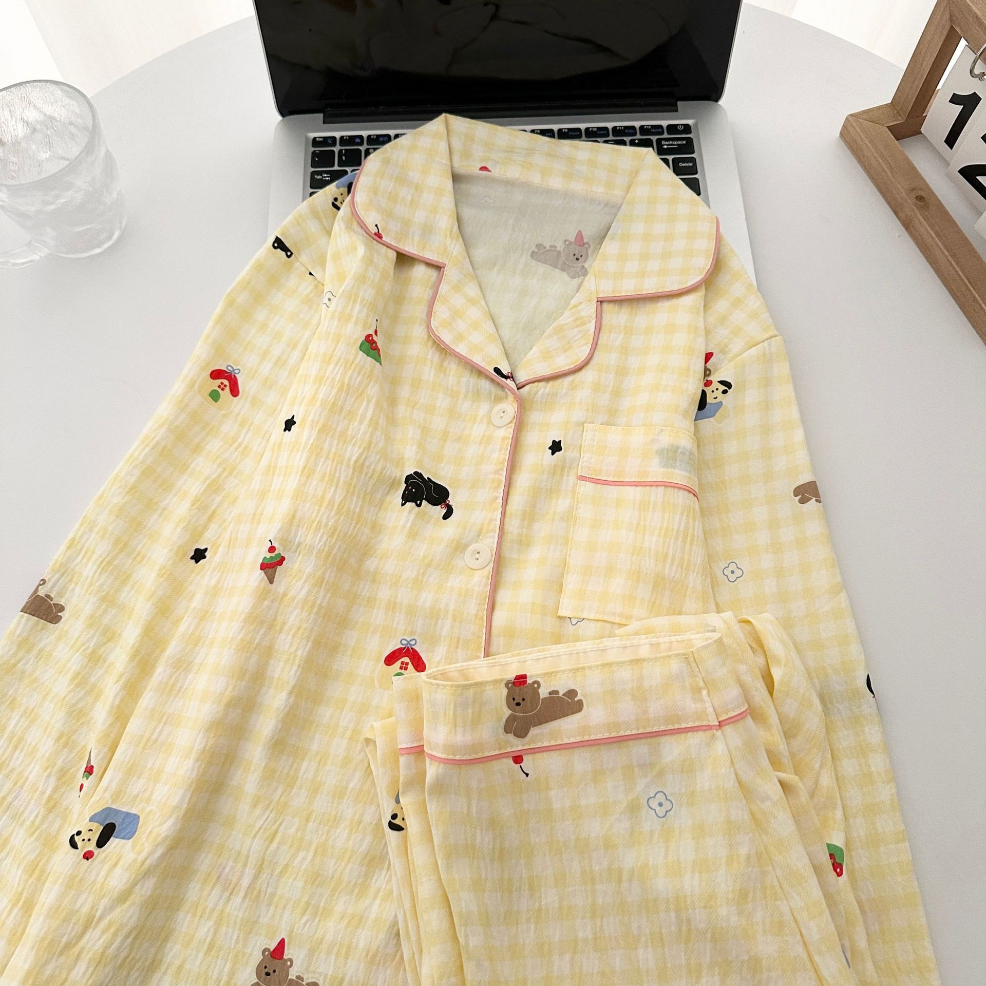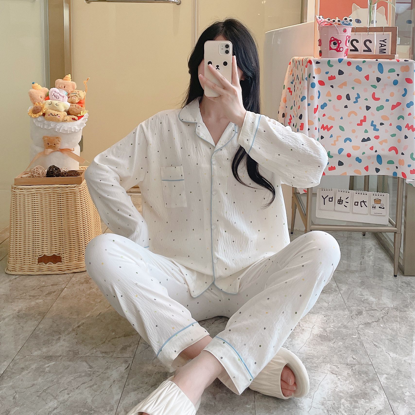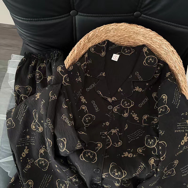 여성용 가을 만화 캐릭터 귀여운 긴팔 긴바지 만화 카디건 라펠 홈웨어 세트, 크로스보더 도매 클라우드 코튼 파자마