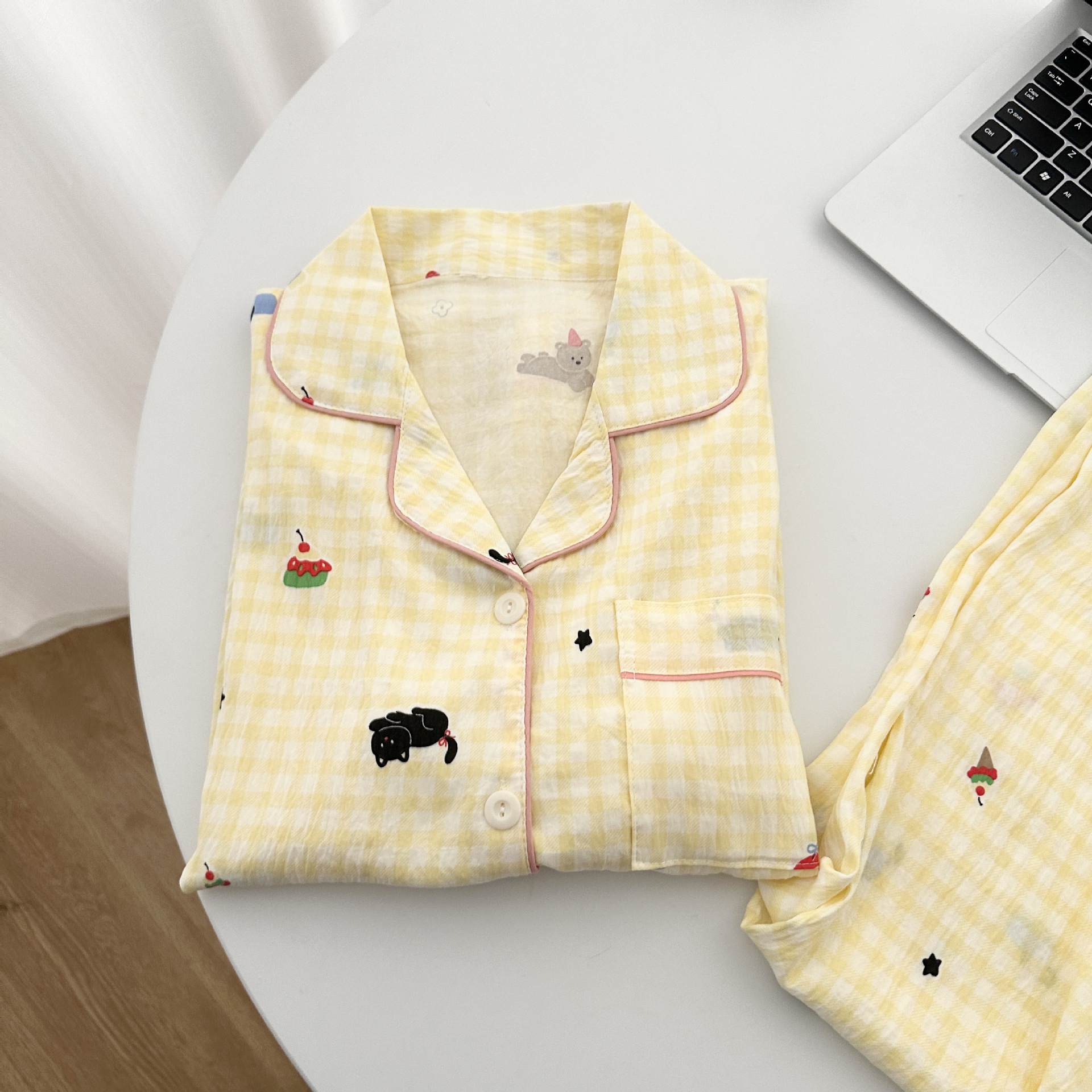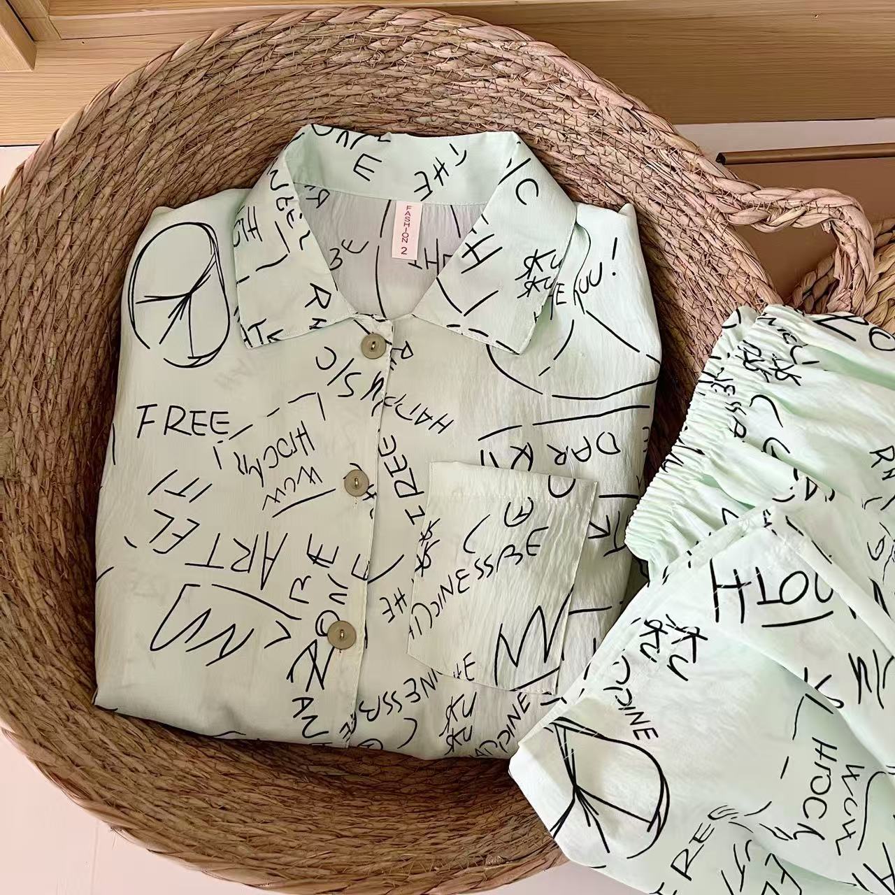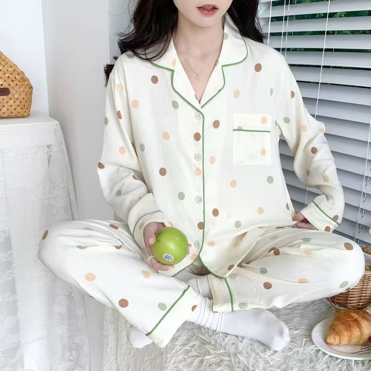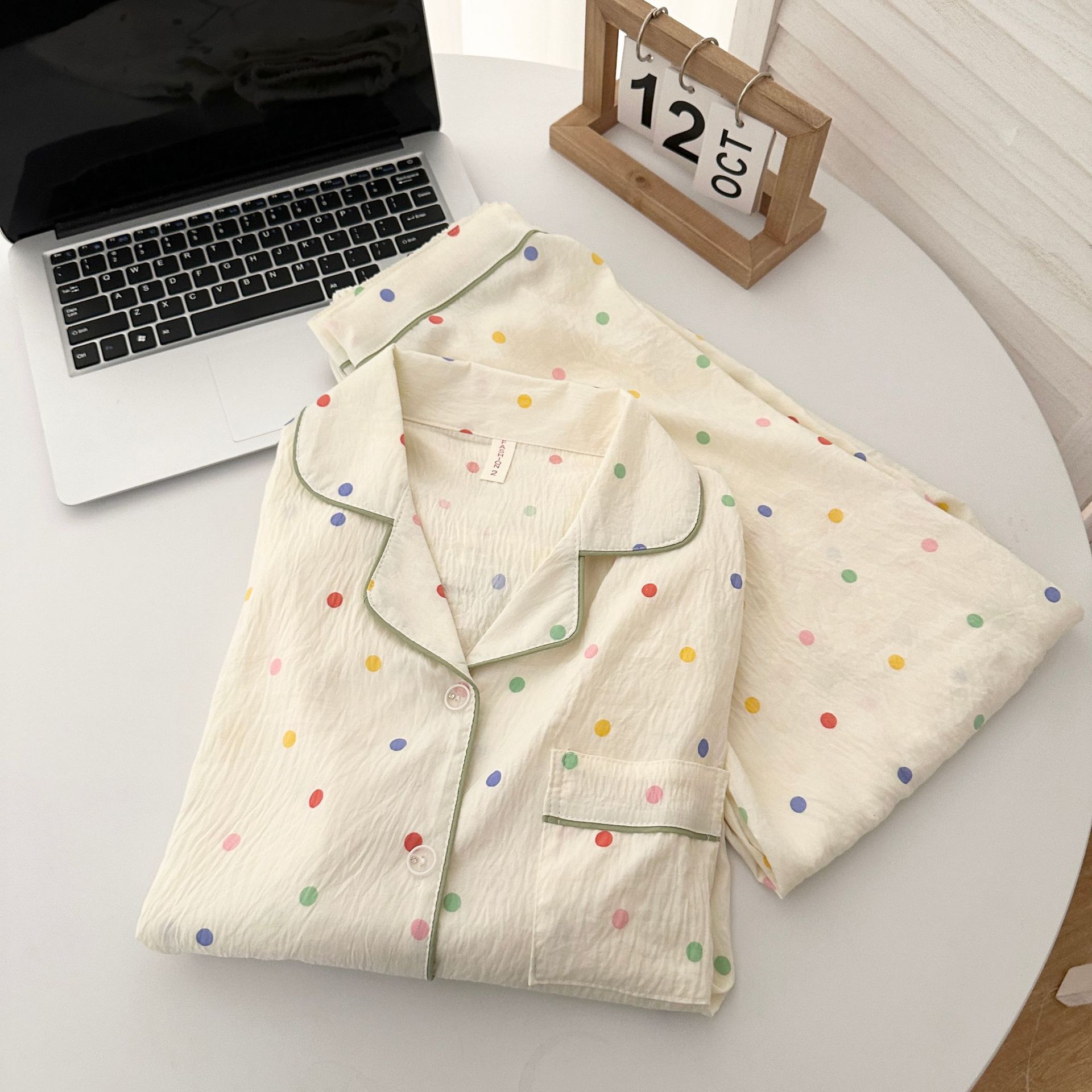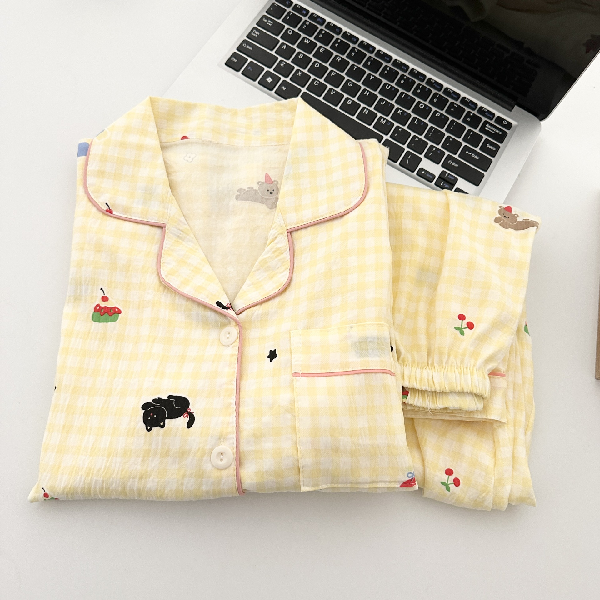 여성용 가을 만화 캐릭터 귀여운 긴팔 긴바지 만화 카디건 라펠 홈웨어 세트, 크로스보더 도매 클라우드 코튼 파자마