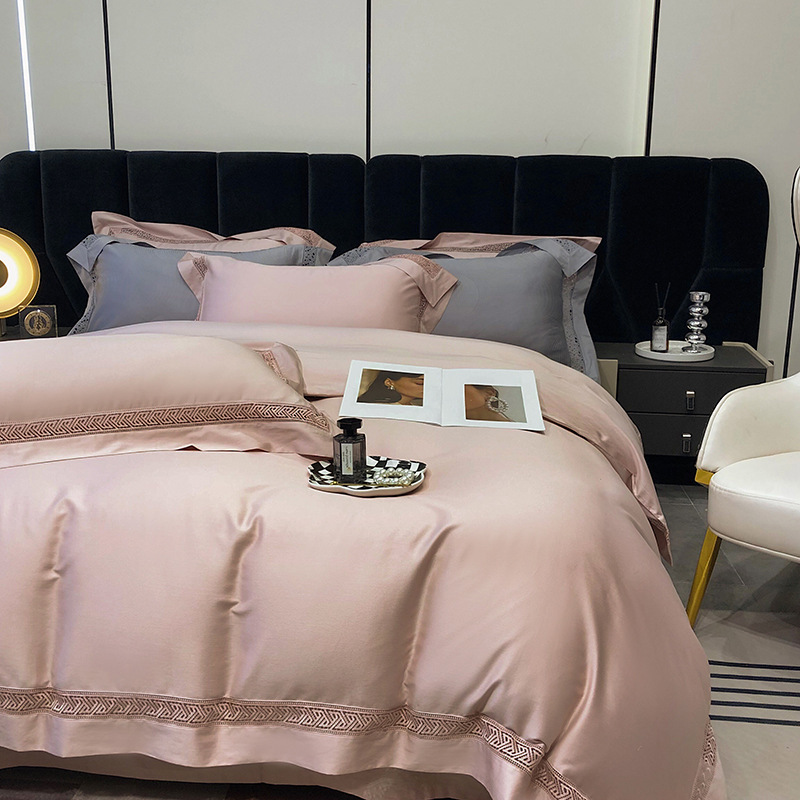 하이 엔드 140 자카드 할로우 크래프트 라이트 럭셔리 패션 긴 스테이플 코튼 4 피스 세트 부드러운 피부 친화적 인 수분 흡수 통기성