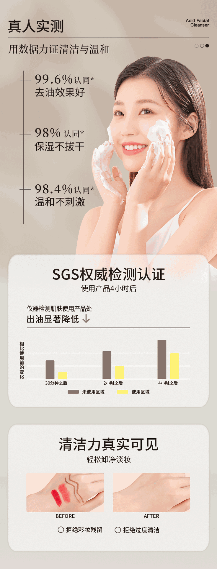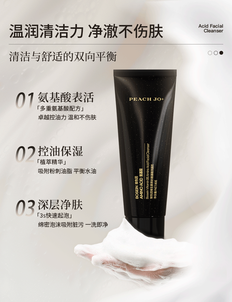 작은 검은 색 튜브 아미노산 페이셜 클렌저 메이크업 리무버 깊은 클렌징 부드러운 페이셜 클렌저 남성과 여성을위한 PEACH JO Bose스토어 가기