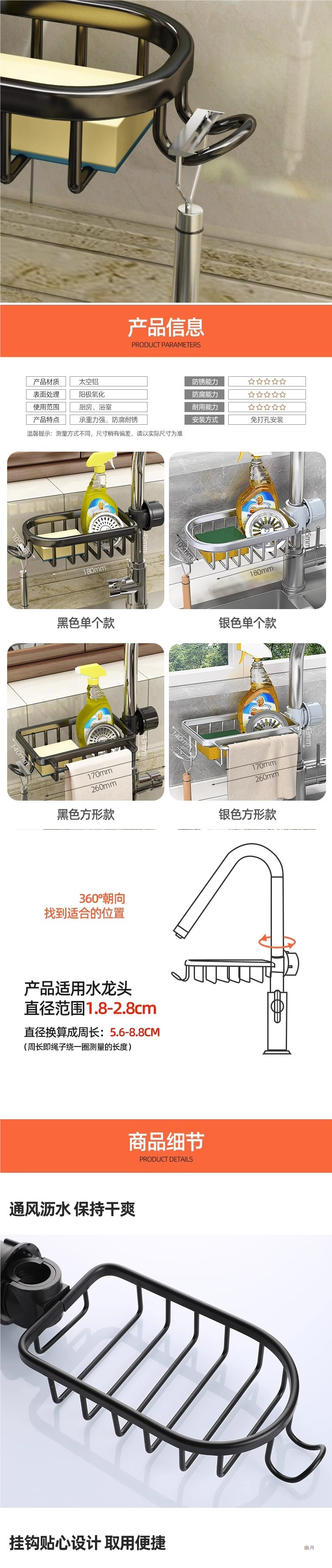 주방 보관 랙 그릇 세척 싱크 랙 배수 바구니 헝겊 저장 랙 욕실 가정용 펀치없는 하중 베어링