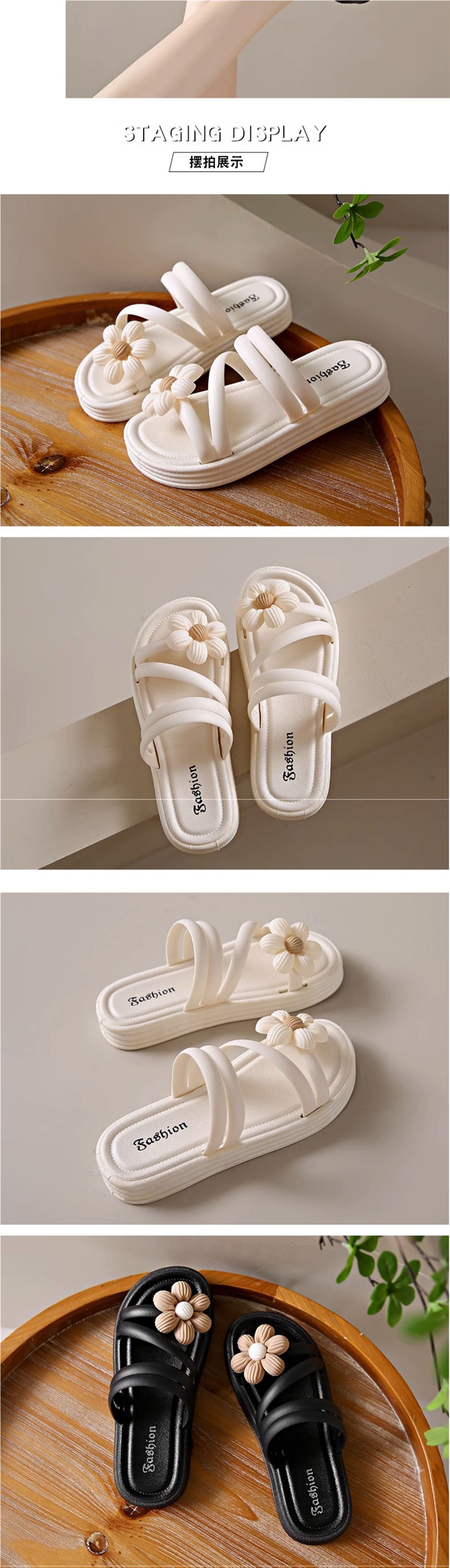 꽃 해변 슬리퍼 여성의 2024 년 이른 봄 새로운 슈퍼 소프트 페어리 스타일 두꺼운 밑바닥 미끄럼 캐주얼 슬리퍼