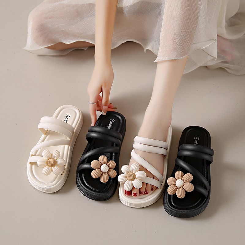 꽃 해변 슬리퍼 여성의 2024 년 이른 봄 새로운 슈퍼 소프트 페어리 스타일 두꺼운 밑바닥 미끄럼 캐주얼 슬리퍼스토어 가기