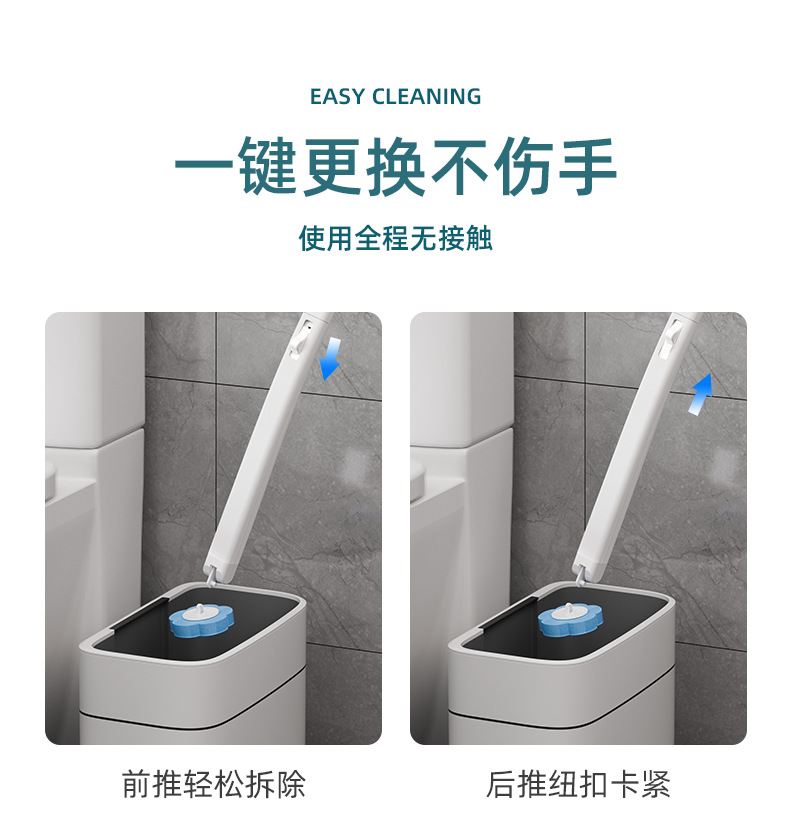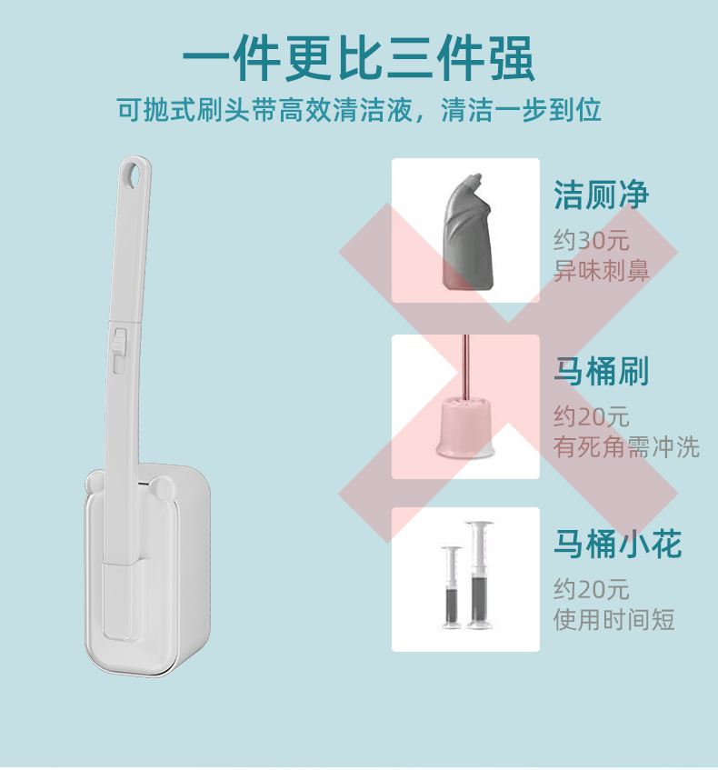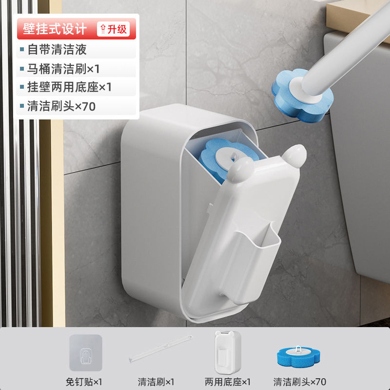 ∝사각지대 없는 일회용 변기솔, 청소액이 포함된 벽걸이형 욕실 변기솔, 일회용 교체용 솔