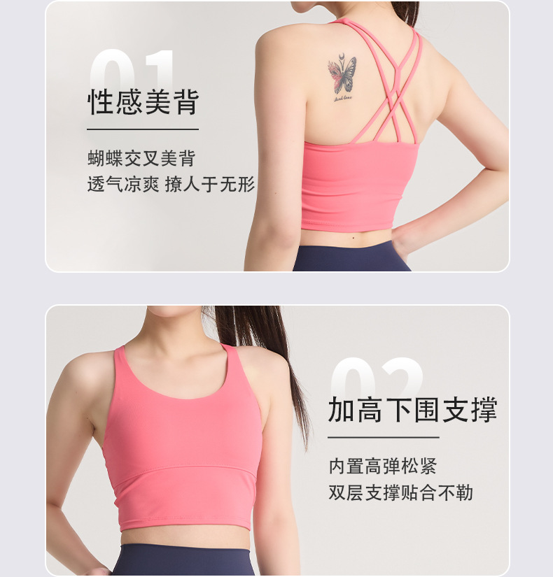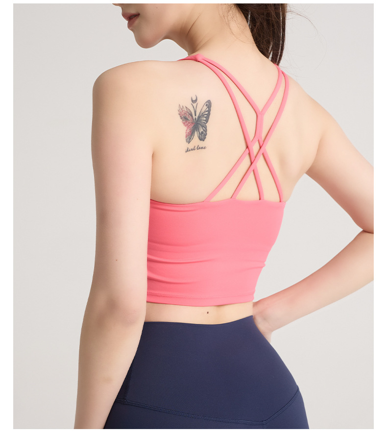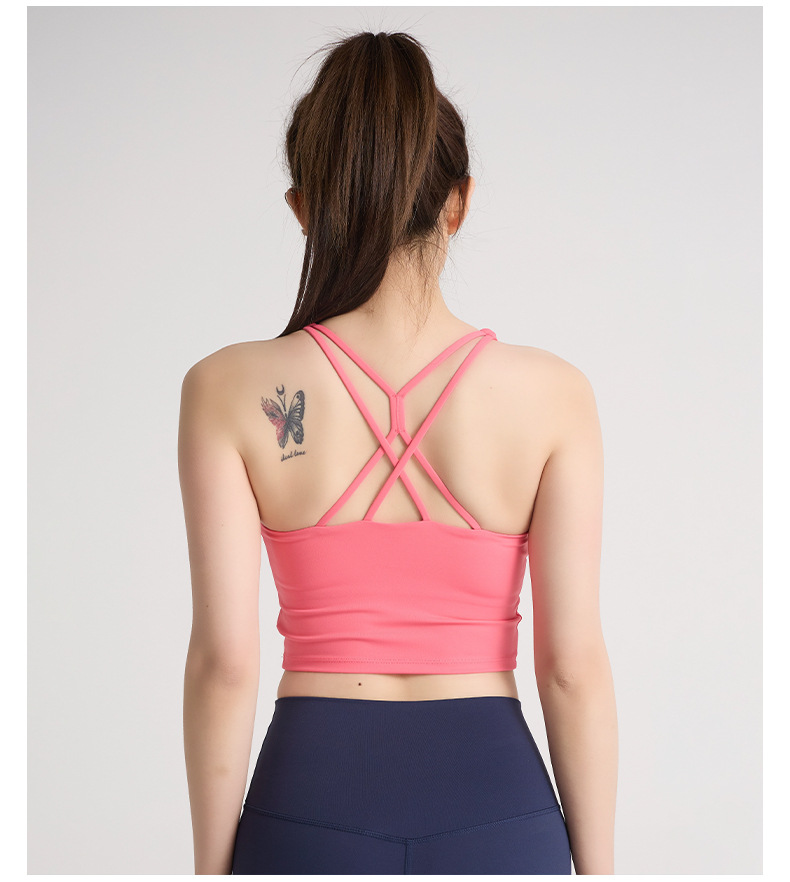 새로운 뷰티 백 크로스 얇은 어깨 스트랩 조끼 요가 탑 여성 러닝 피트니스 댄스 스포츠 브래지어 슬링