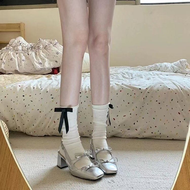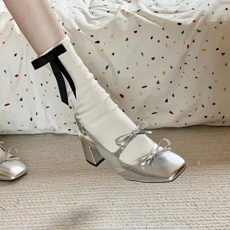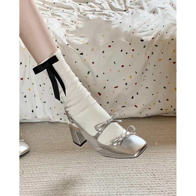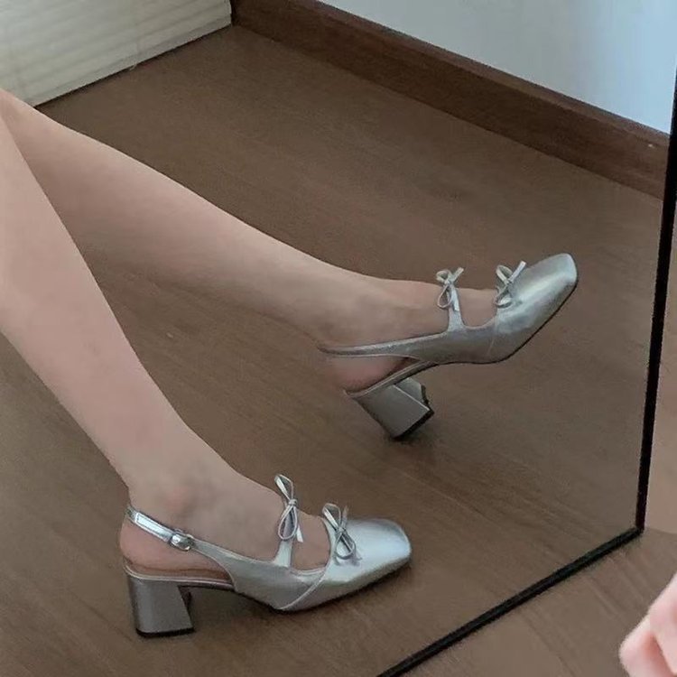 하이힐 신발 여성용 2025 년 새 봄과 여름 두꺼운 뒤꿈치 실버 Baotou 하이 엔드 센스 Mary Jane 작은 가죽 신발 스커트 샌들스토어 가기