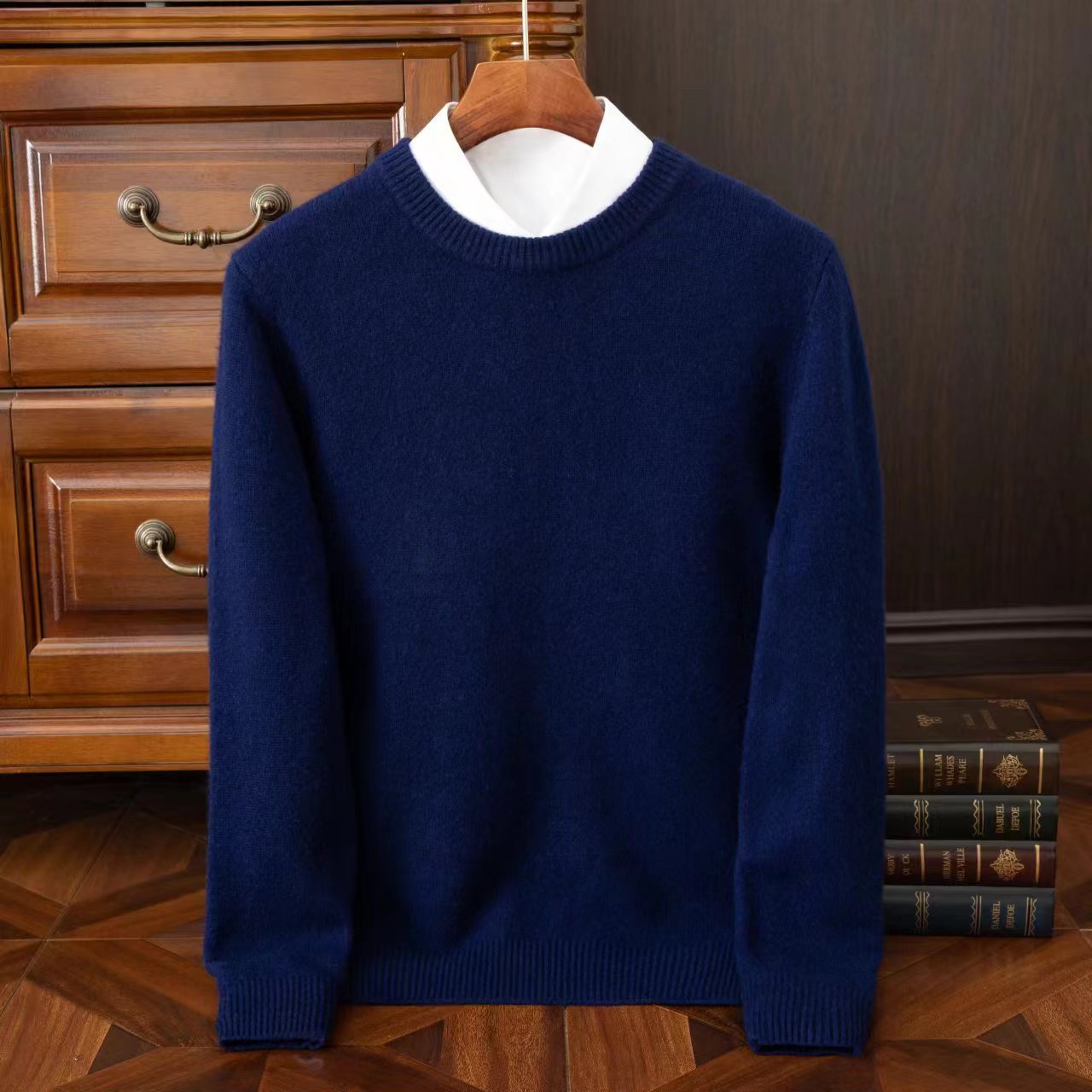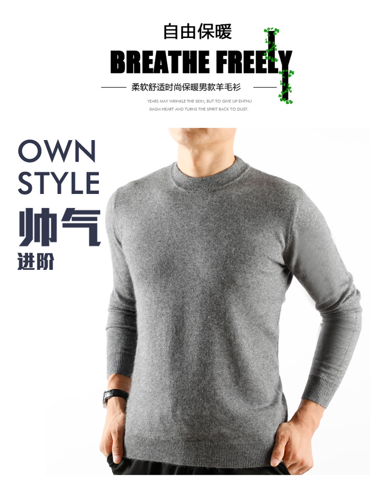공장 도매 남성 스웨터 100 순수 울 라운드 넥 남성 풀오버 단색 그물 니트 베이스 스웨터스토어 가기