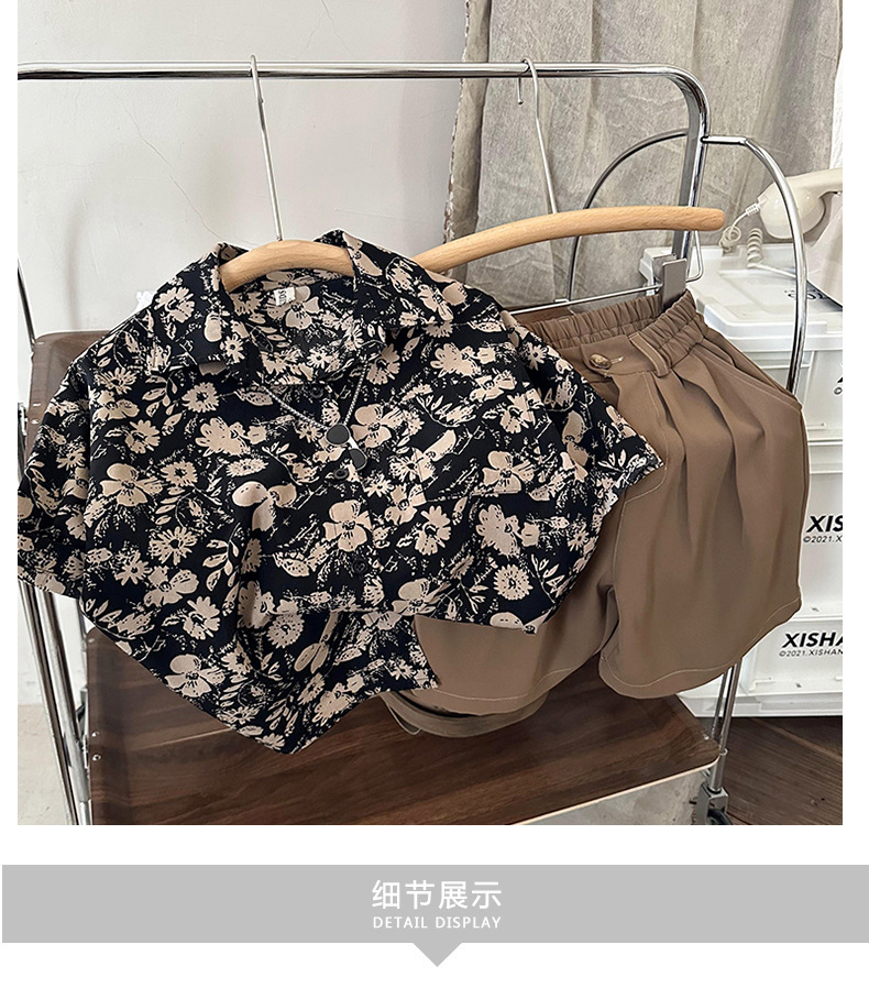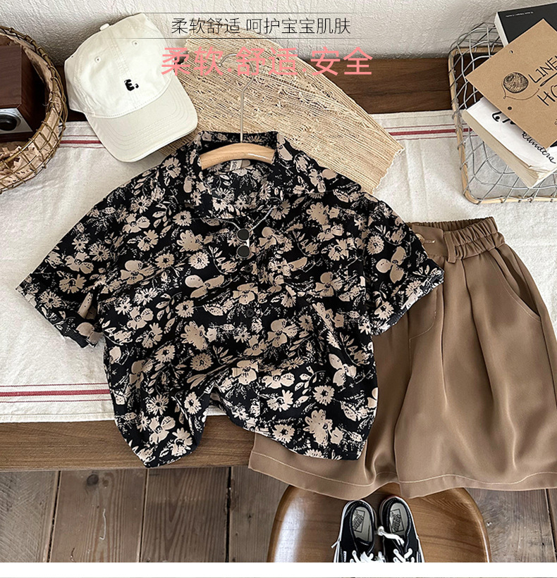 홍콩의 어린이 셔츠 소년 한국 스타일 탑 여름 얇은 유행 짧은 소매 옷깃 소녀 꽃 셔츠 휴일 패션스토어 가기