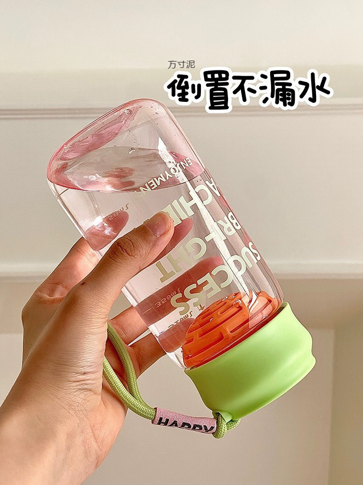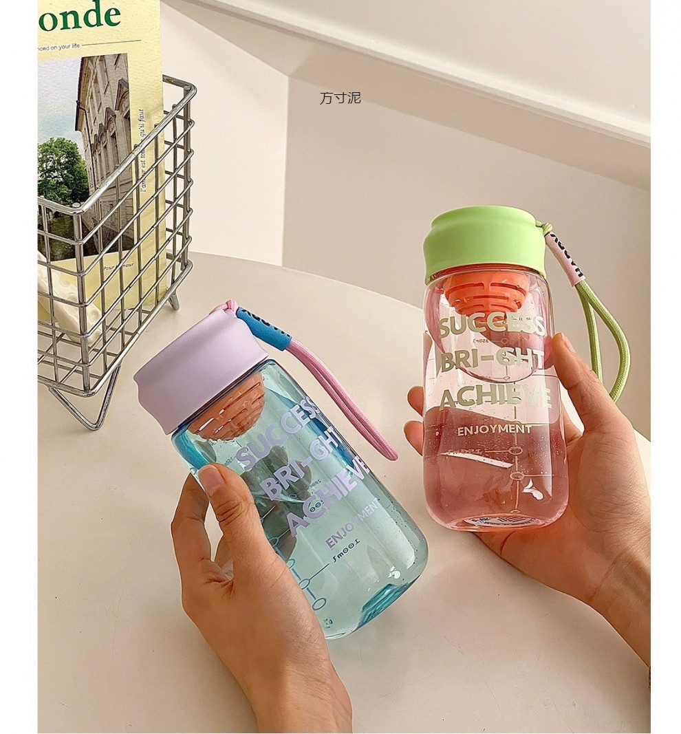 학생을 위한 끈으로 공간 컵을 가진 여자를위한 차 구획을 가진 간단한 플라스틱 컵 작고 높은 가치의 낙하 저항하는 휴대용 물 컵스토어 가기
