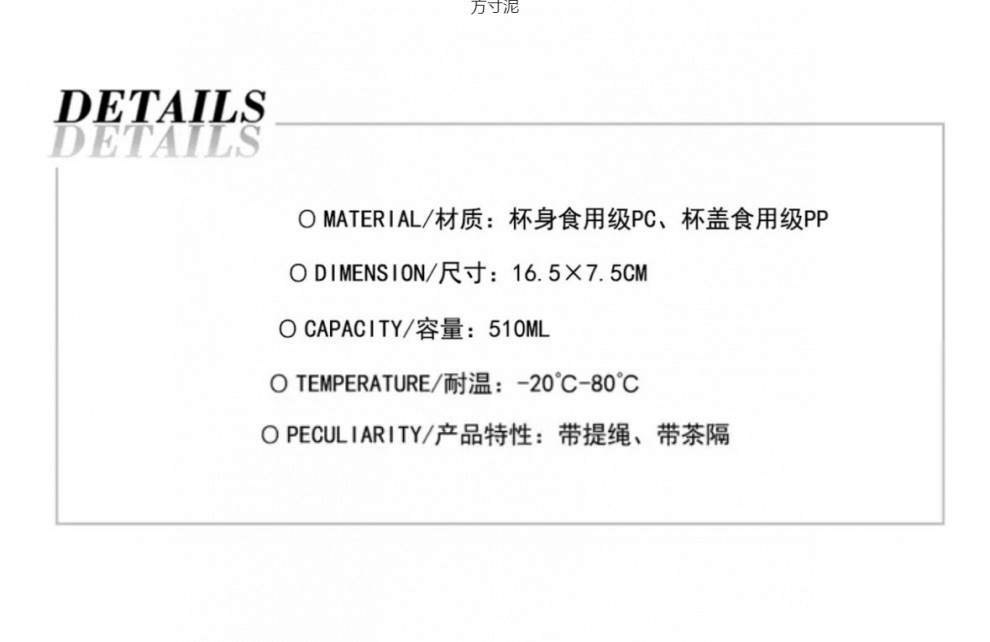 학생을 위한 끈으로 공간 컵을 가진 여자를위한 차 구획을 가진 간단한 플라스틱 컵 작고 높은 가치의 낙하 저항하는 휴대용 물 컵