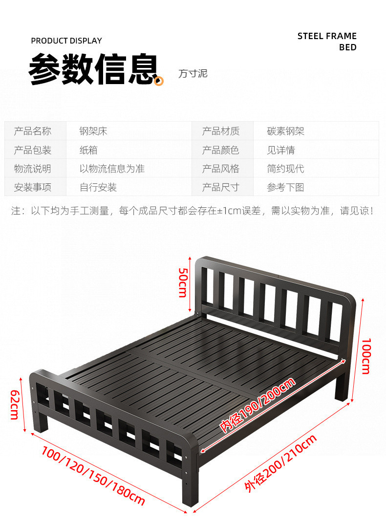 아이언 침대 더블 침대 아이언 침대 1.8 미터 싱글 가구 침대 1.5 미터 두께 강화 간단한 임대 룸 아이언 프레임 침대스토어 가기