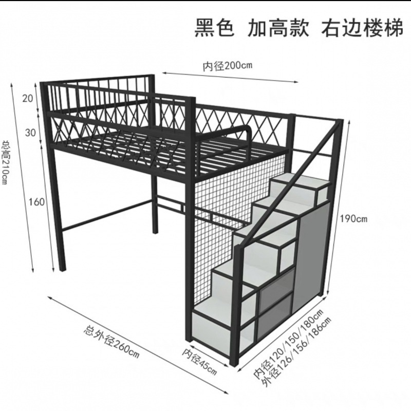 북유럽 다기능 지방 공간 고가 침대 아파트 듀플렉스 싱글 어퍼 소형 아파트 철 고저 침대 파빌리온 침대 침대스토어 가기
