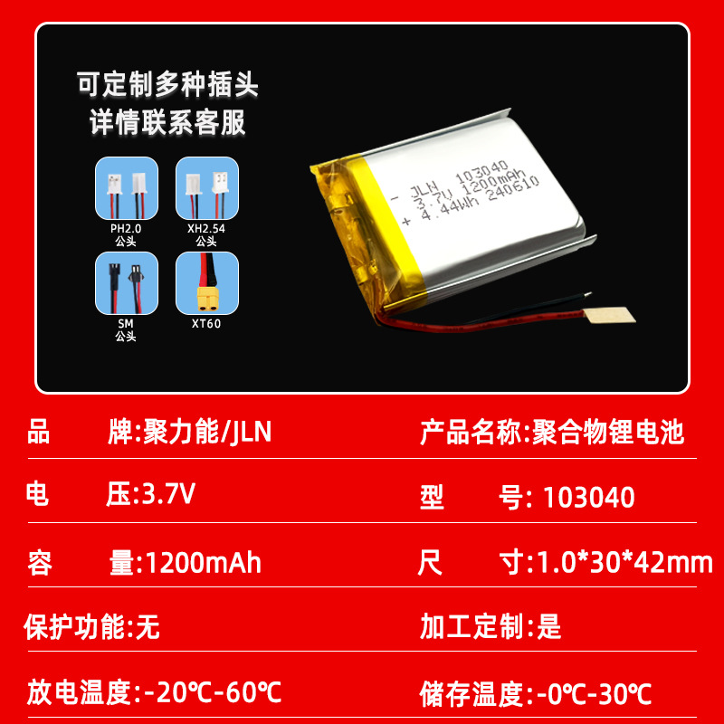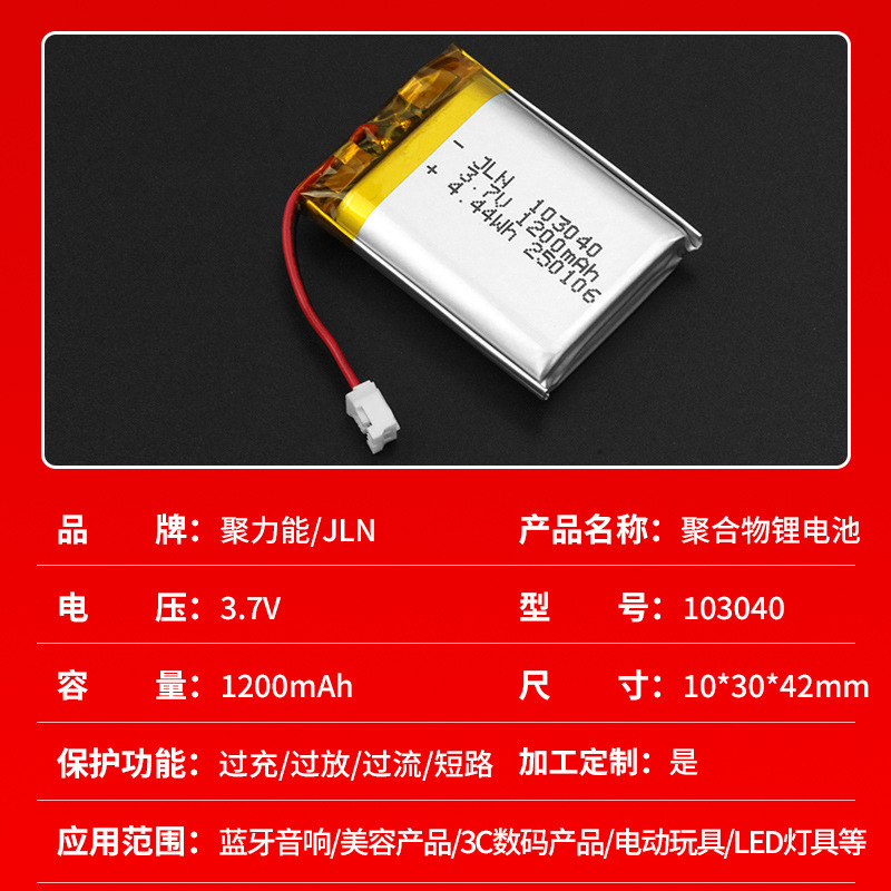 103040 폴리머 리튬 배터리 전기 장난감 아름다움 계기 LED 램프 블루투스 스피커 3.7V1200mAh 배터리
