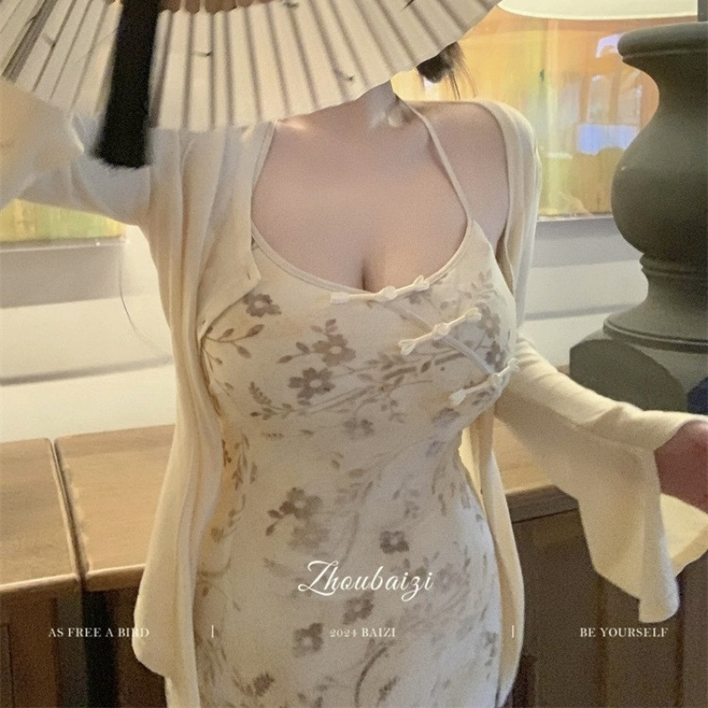 300kg 플러스 사이즈 약간 뚱뚱한 새로운 중국 아름다운 cheongsam 서스펜더 슬림 엉덩이 밑단 슬릿 원피스