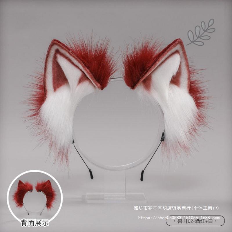 머리 손으로 만든 늑대 귀 남성 고양이 야수 헤어 클램프 헤어 밴드 여성 가을 및 겨울 코스 귀 여우 개 봉제 액세서리
