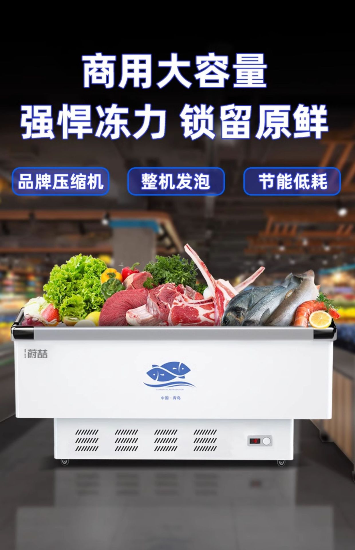 냉동고 상업용 디스플레이 캐비닛 냉장 신선한 냉장고 냉동고 수평 슈퍼마켓 아이스크림 빠른 냉동 투명 유리 섬 캐비닛