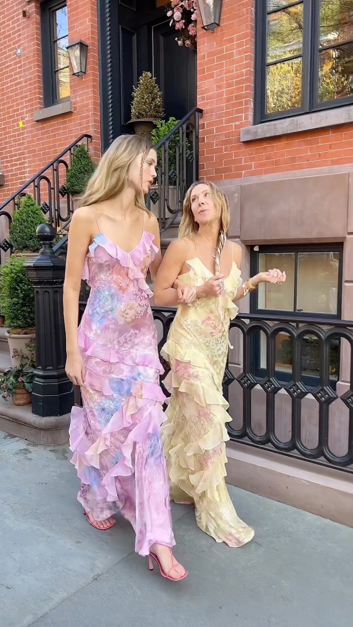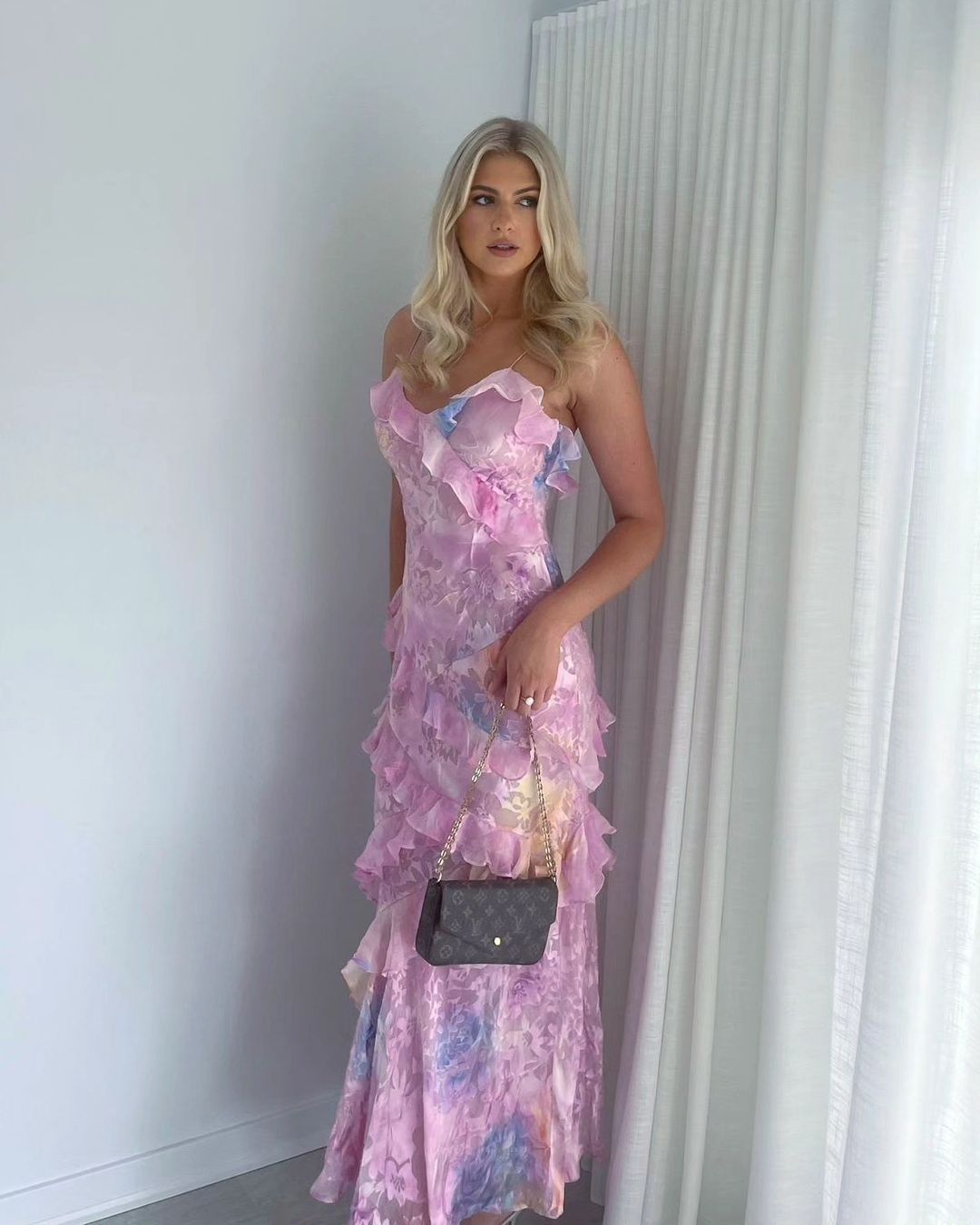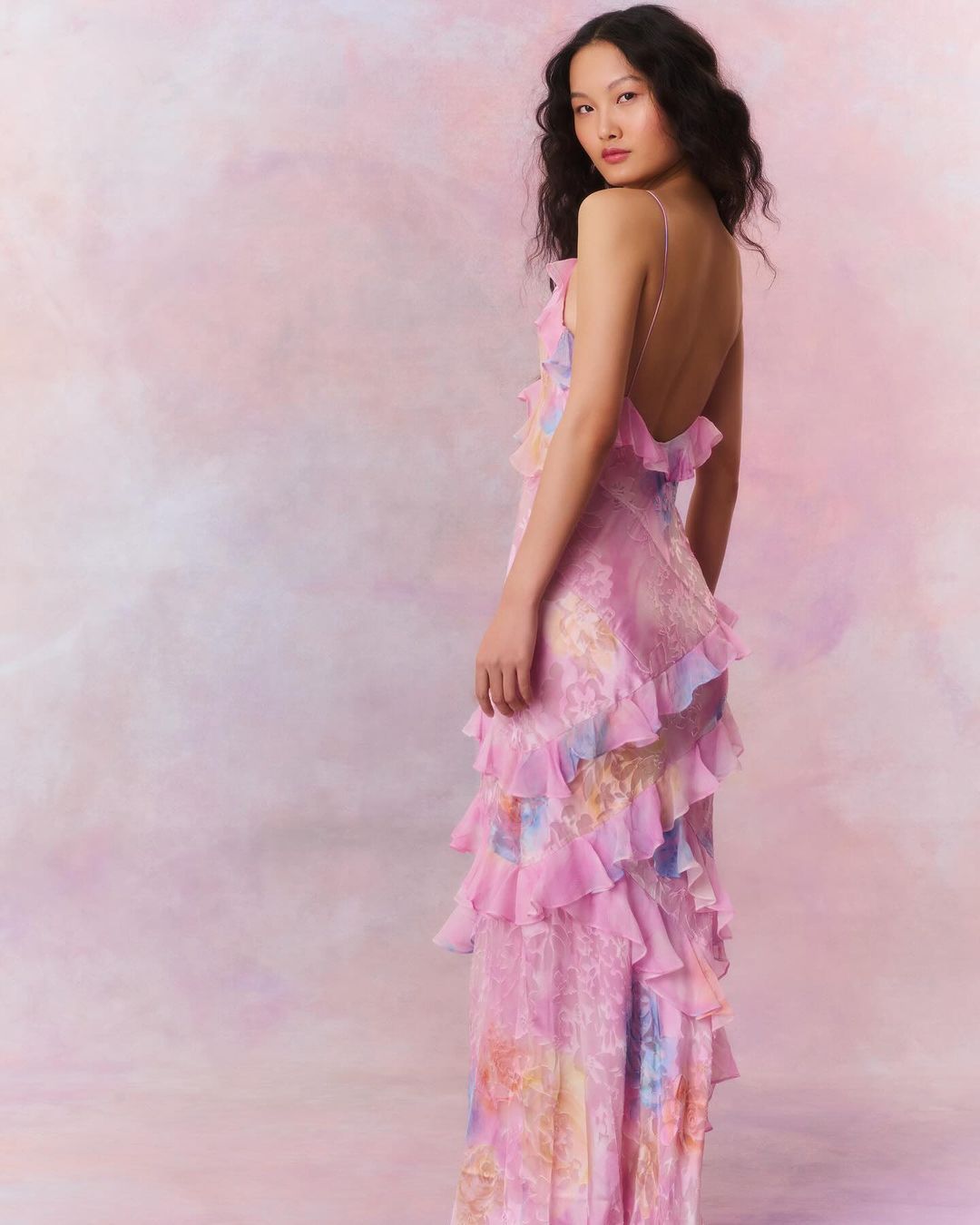 국경 간 독립 역 AliExpress 뜨거운 판매 유럽 및 미국 섹시한 인쇄 슬링 러플 스티칭 슬림 핏 긴 원피스스토어 가기