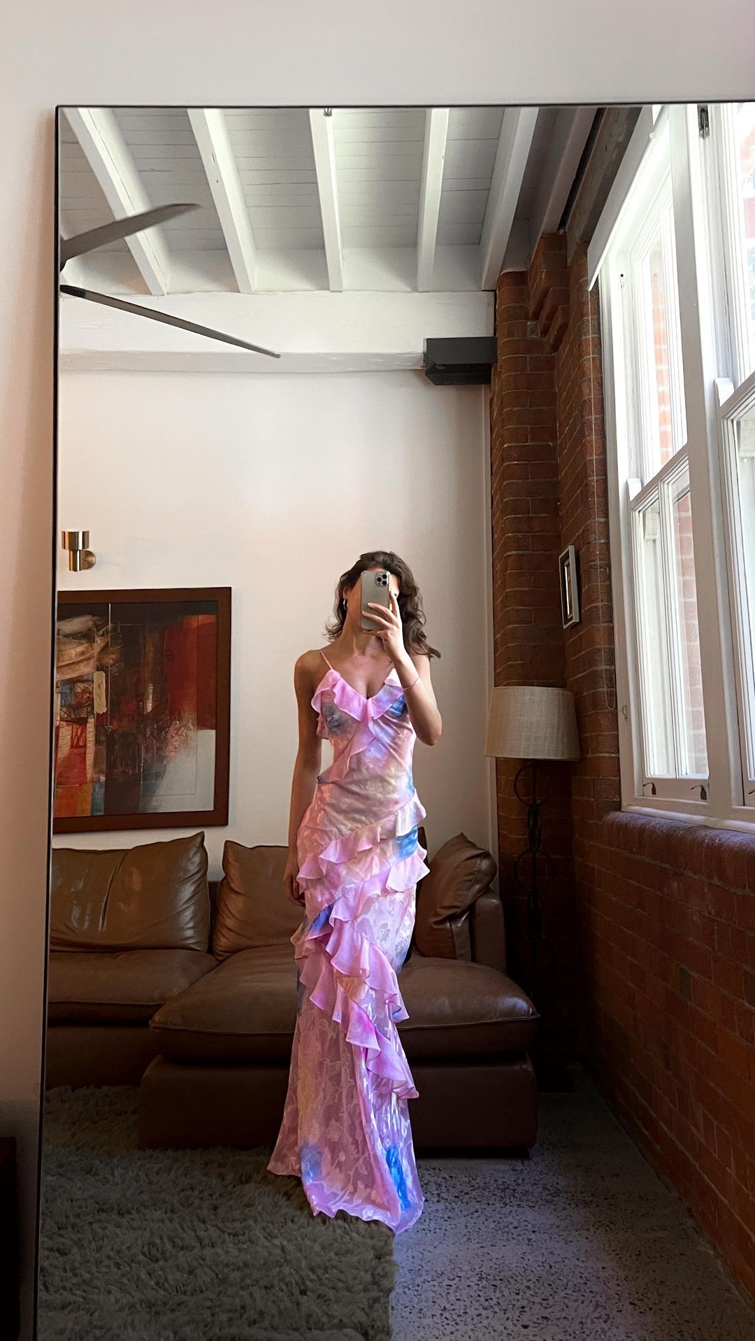 국경 간 독립 역 AliExpress 뜨거운 판매 유럽 및 미국 섹시한 인쇄 슬링 러플 스티칭 슬림 핏 긴 원피스