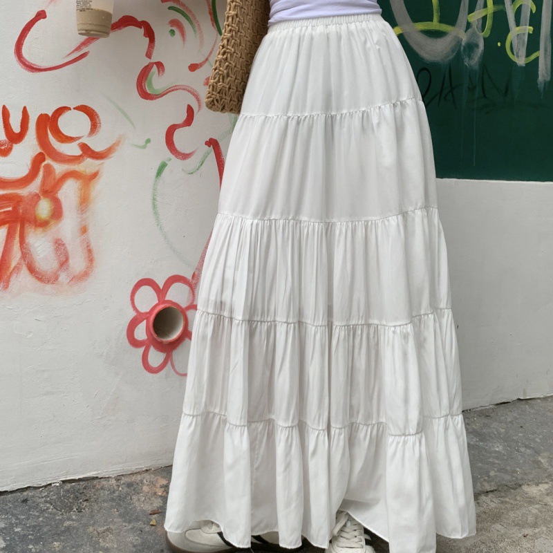 높은 허리 슬리밍 케이크 스커트 여성의 봄 2024 새로운 스타일 부드러운 우아한 올 매치 대형 우산 스커트 롱 스커트스토어 가기