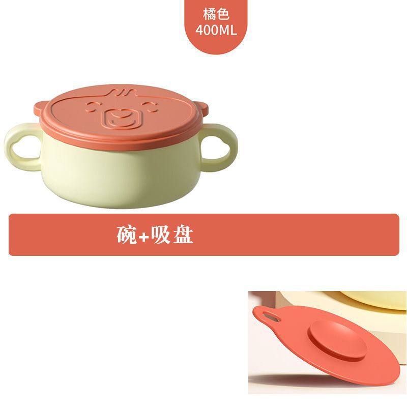 • ♥▲∮⚑분리 그릇(주황색) + 흡입 컵 - 노란색 곡선 스푼 및 포크:;✭✫⚑∮▲♥